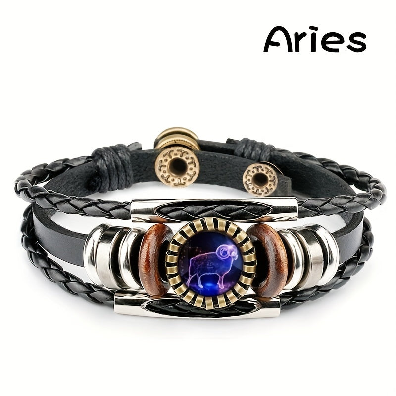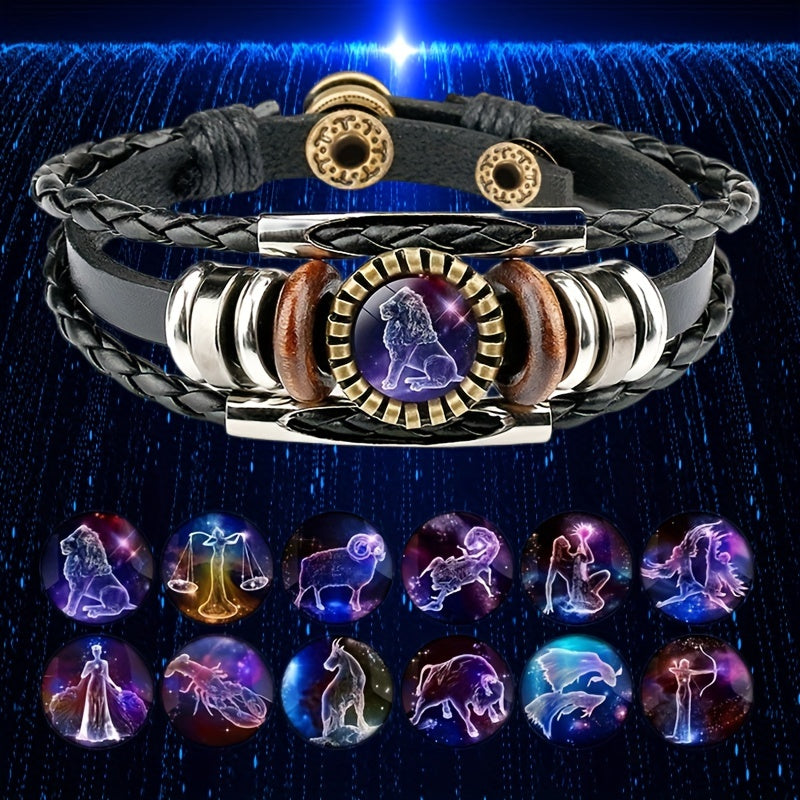 Explore these stylish leather bracelets featuring the 12 zodiac constellations. Perfect for men's fashion.