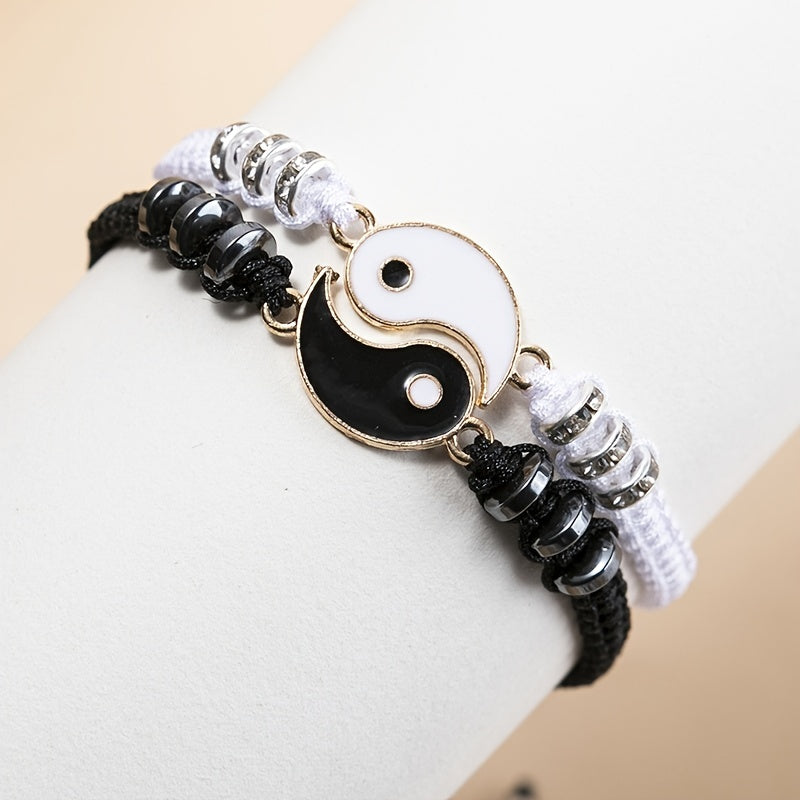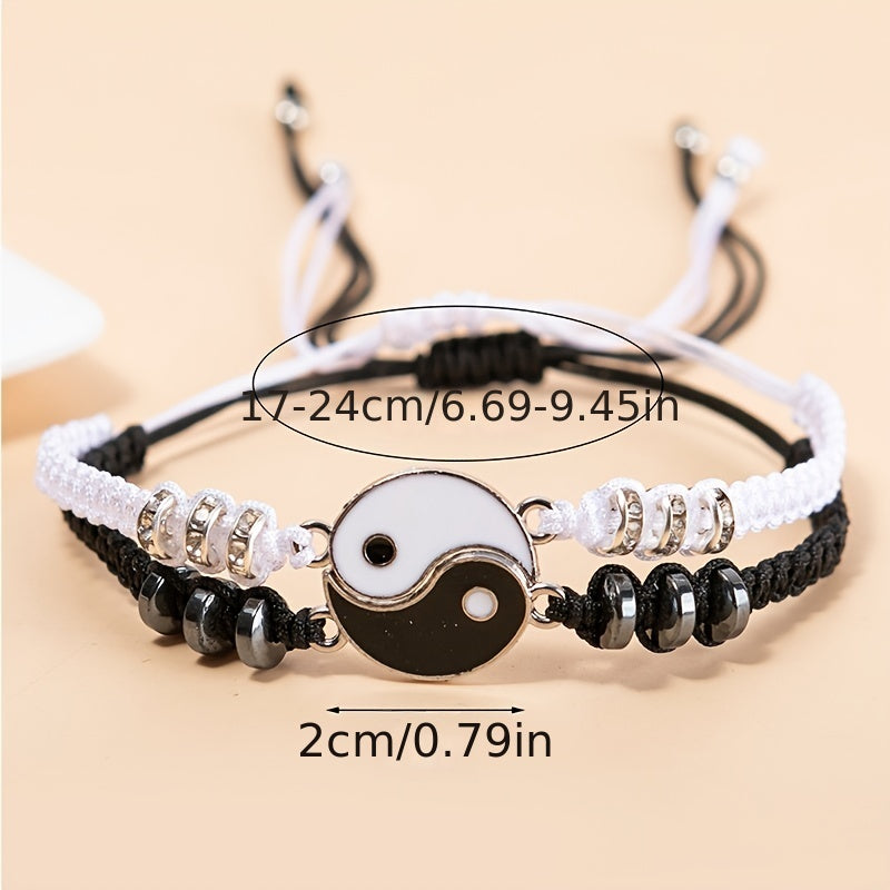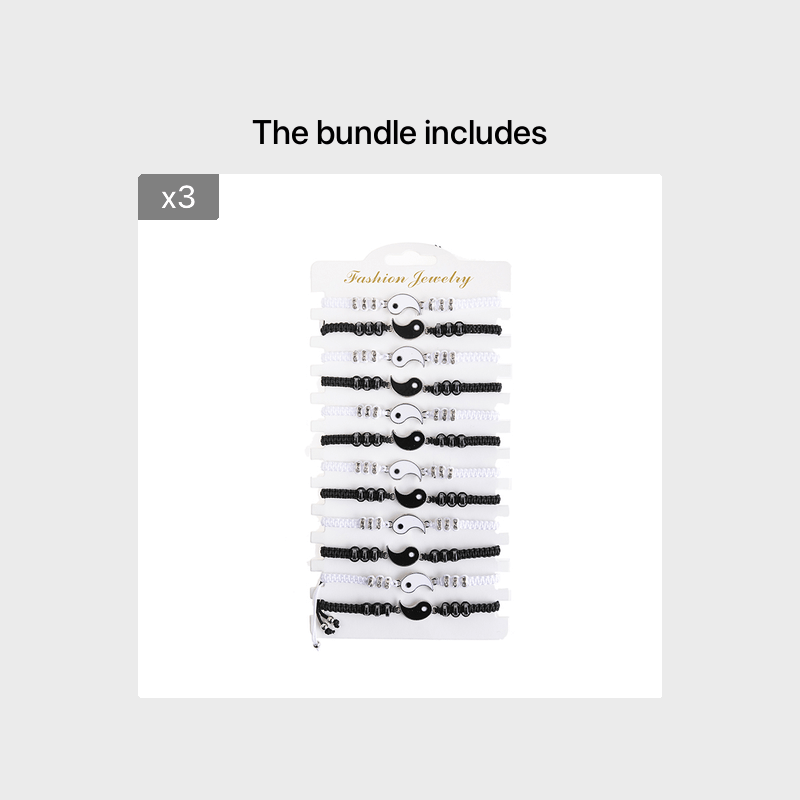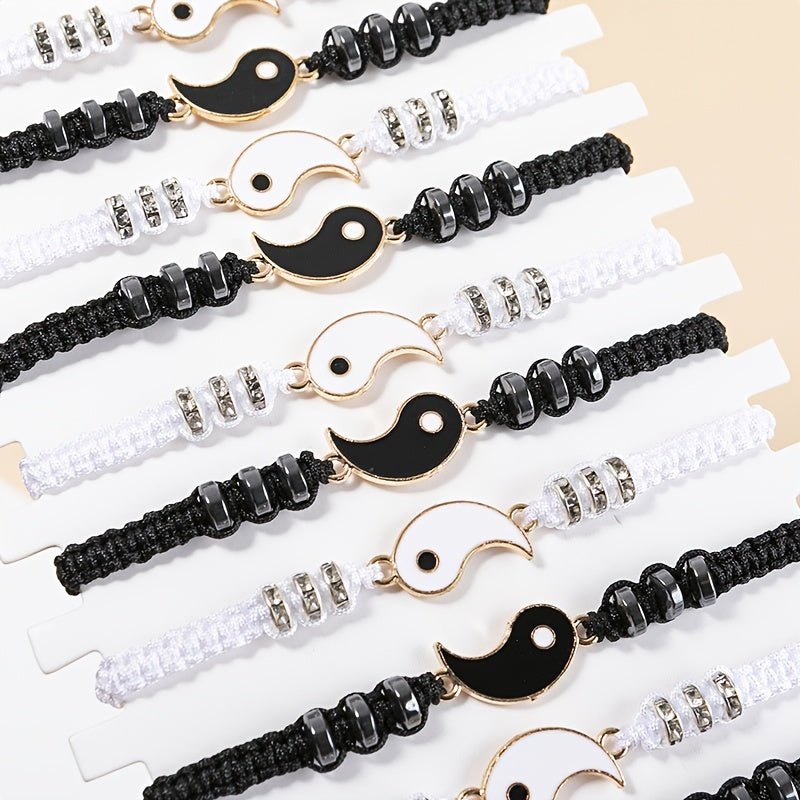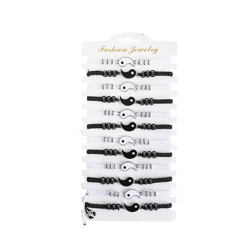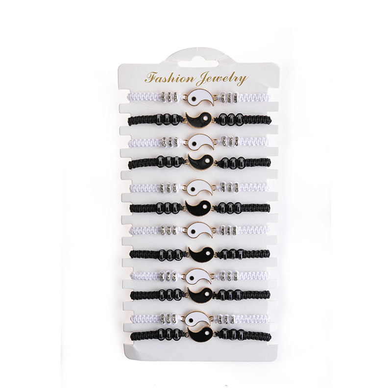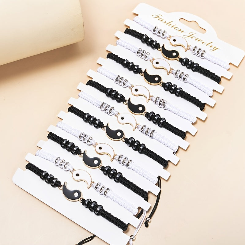 This set includes 12 adjustable cord bracelets with matching Yin Yang design. Perfect for showing friendship and connection. Ideal gift for boyfriend or loved one.