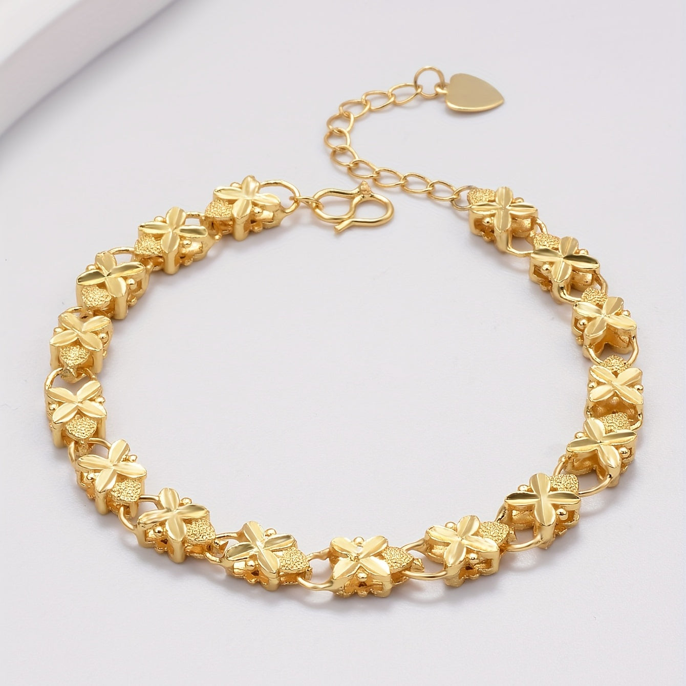 18K Plated Clover Heart Flower Bracelet Birthday Gift