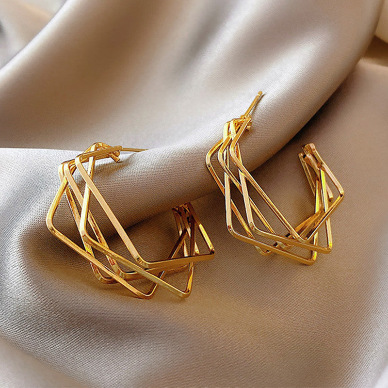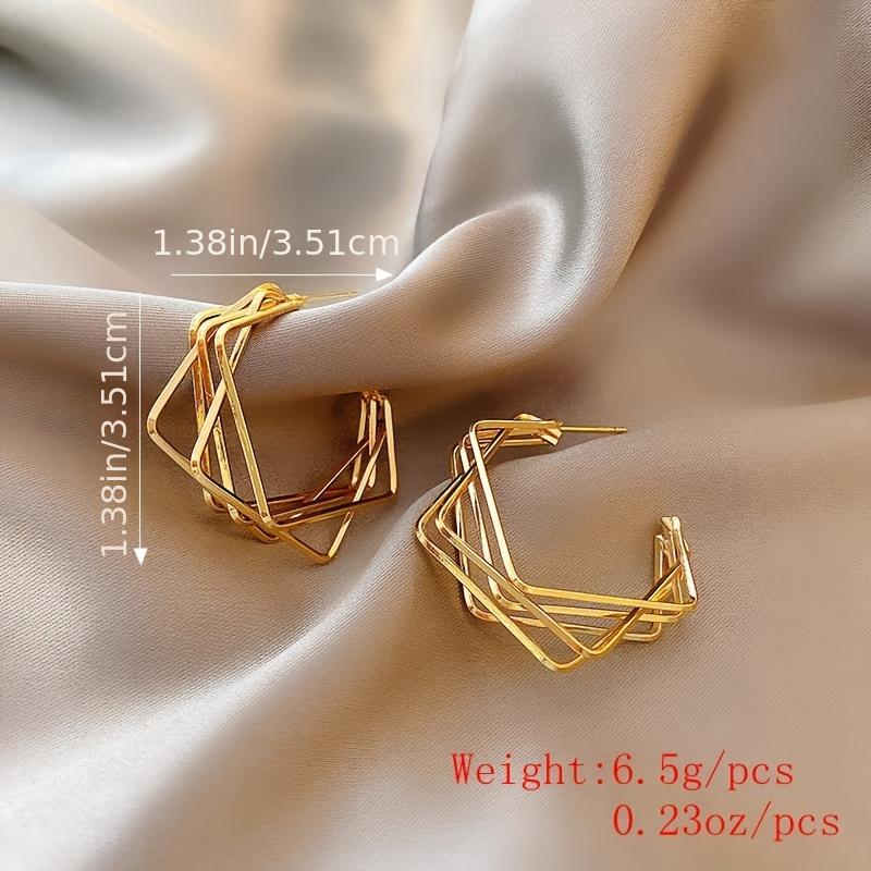 18K Plated Multilayer Geometric Hoop Earrings For Women Girls Gift