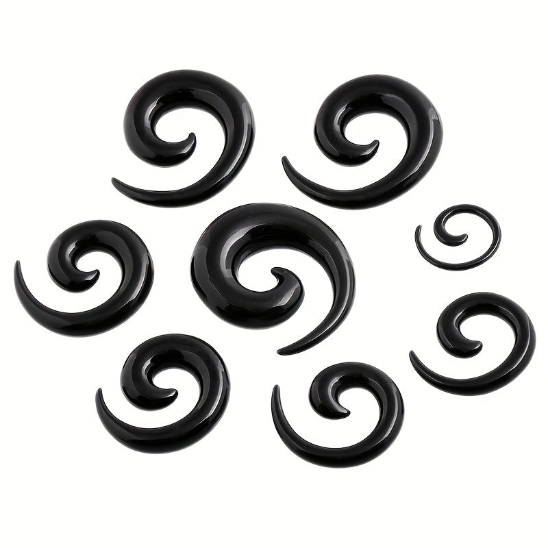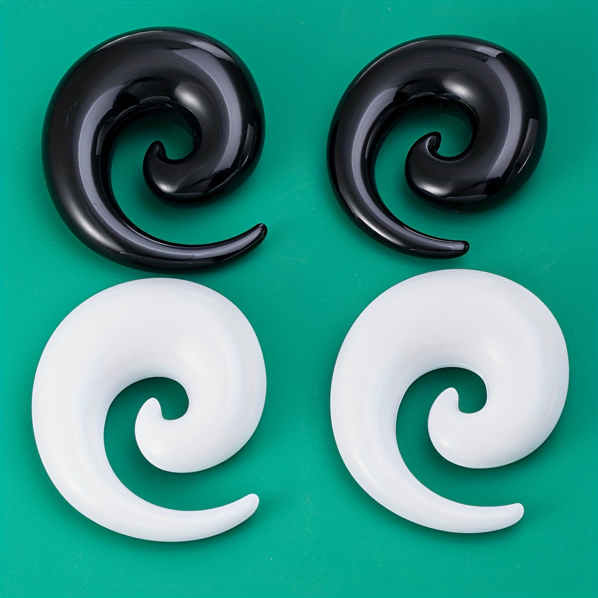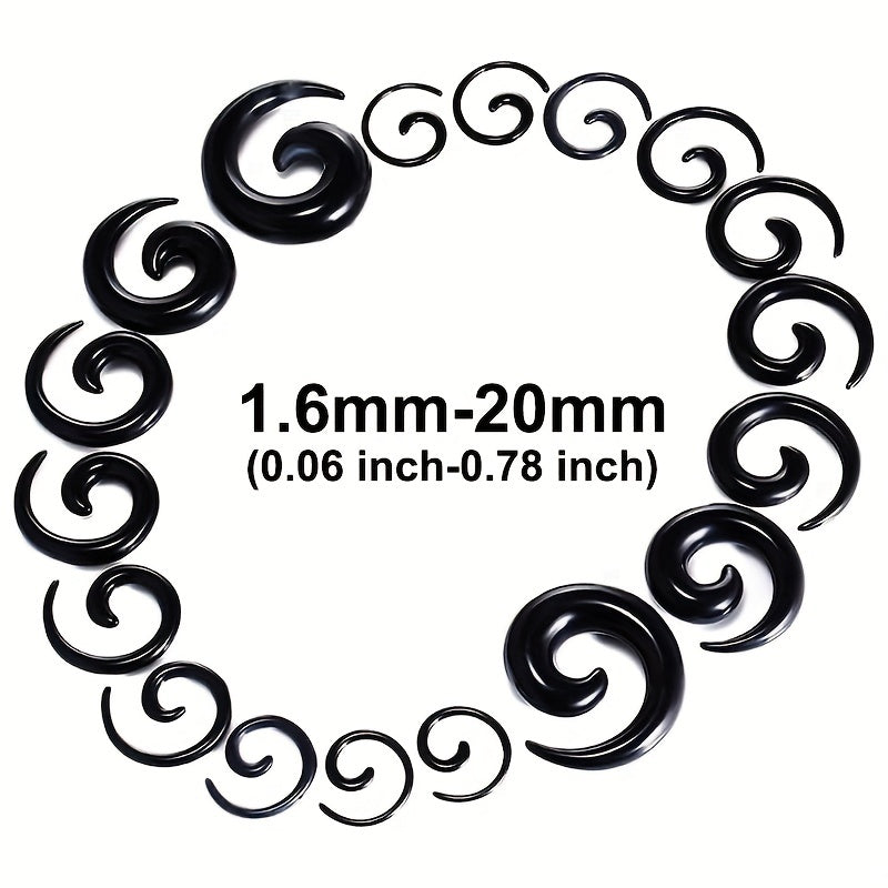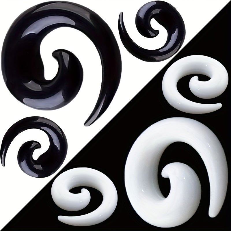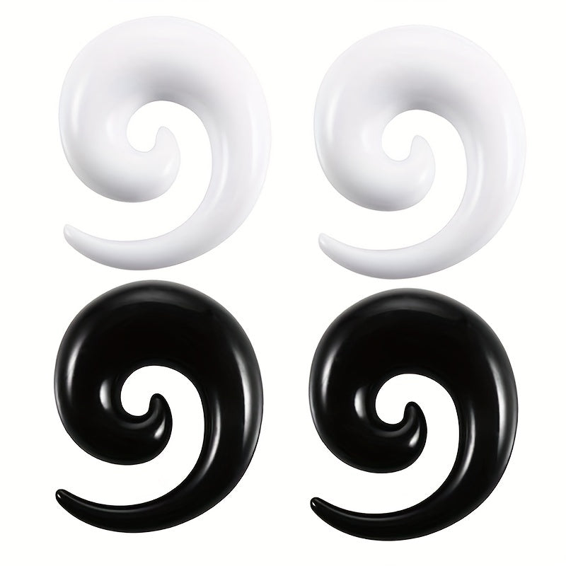 This set includes 2 pairs of acrylic spiral snail ear plugs in sizes 1 6mm and 20mm, perfect for stretching body piercings.