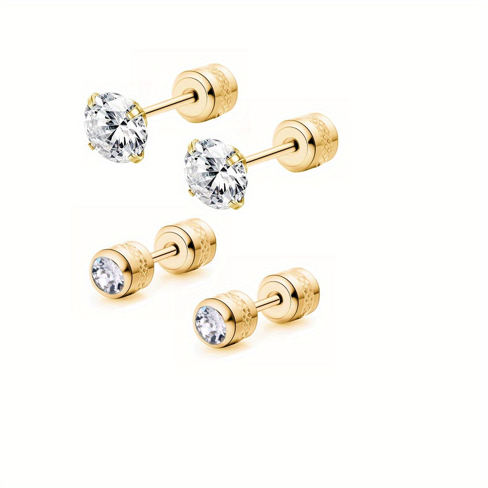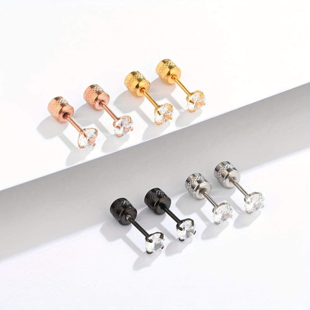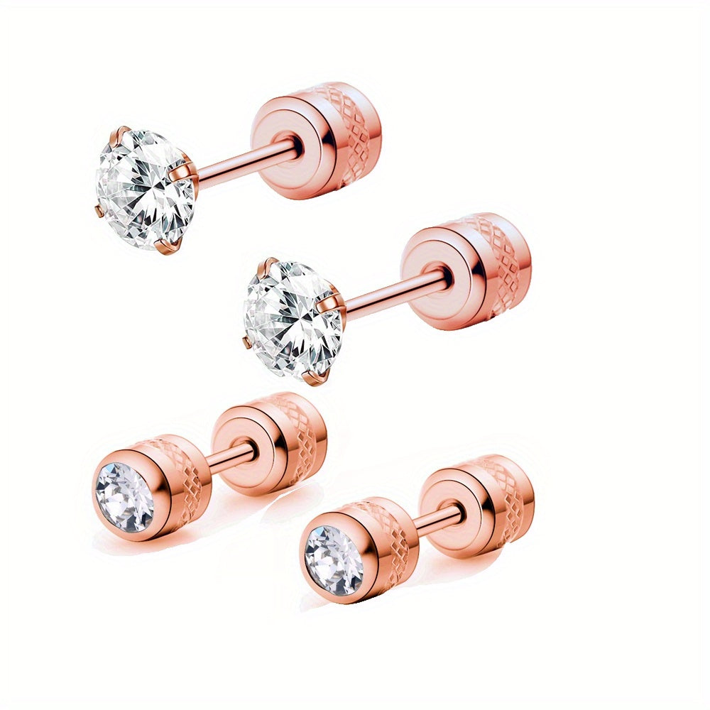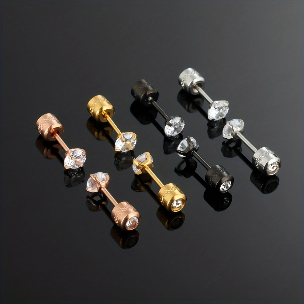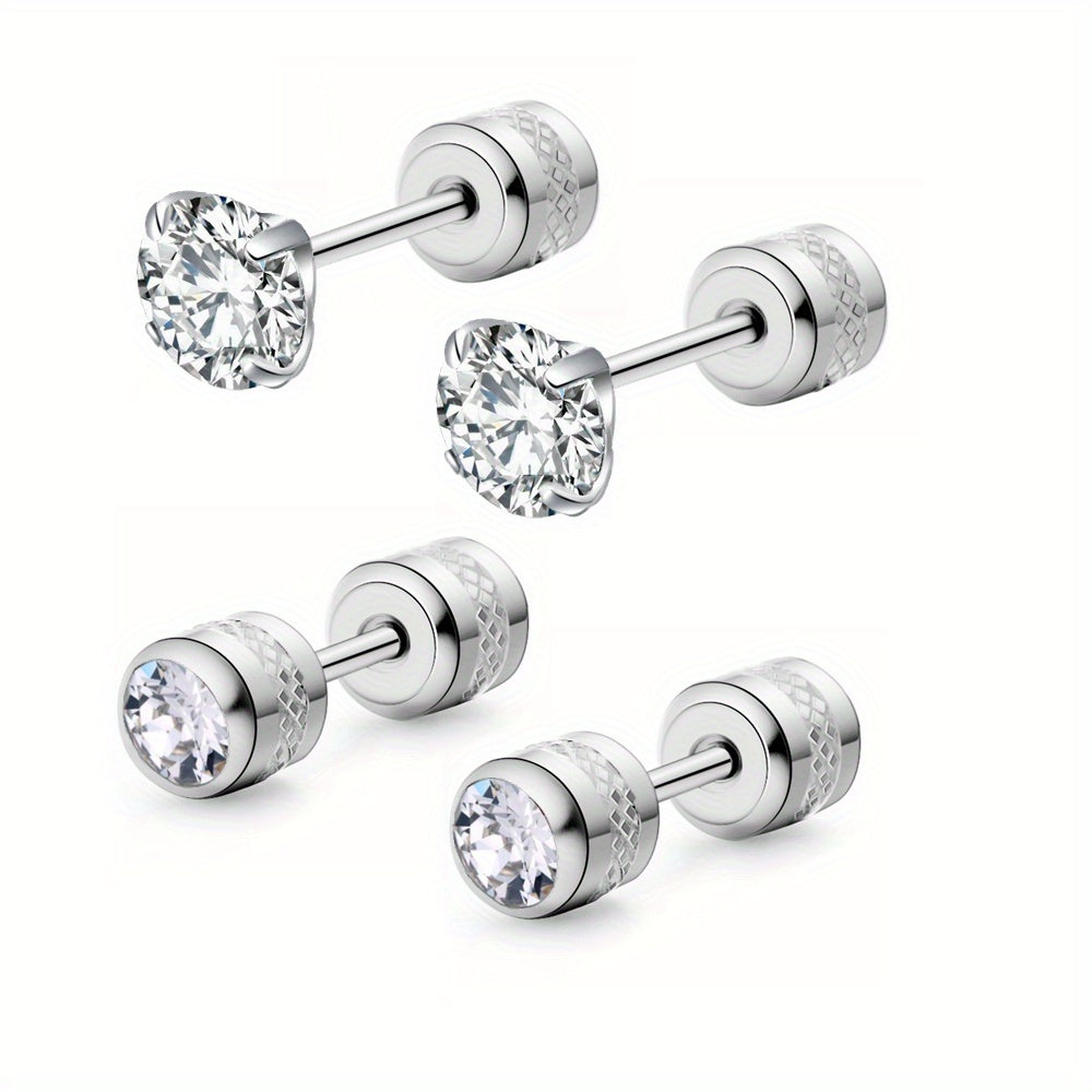 These CZ stud earrings feature a double-sided design with faux diamonds. They are perfect for cartilage piercings and come with screw backs for secure wear.