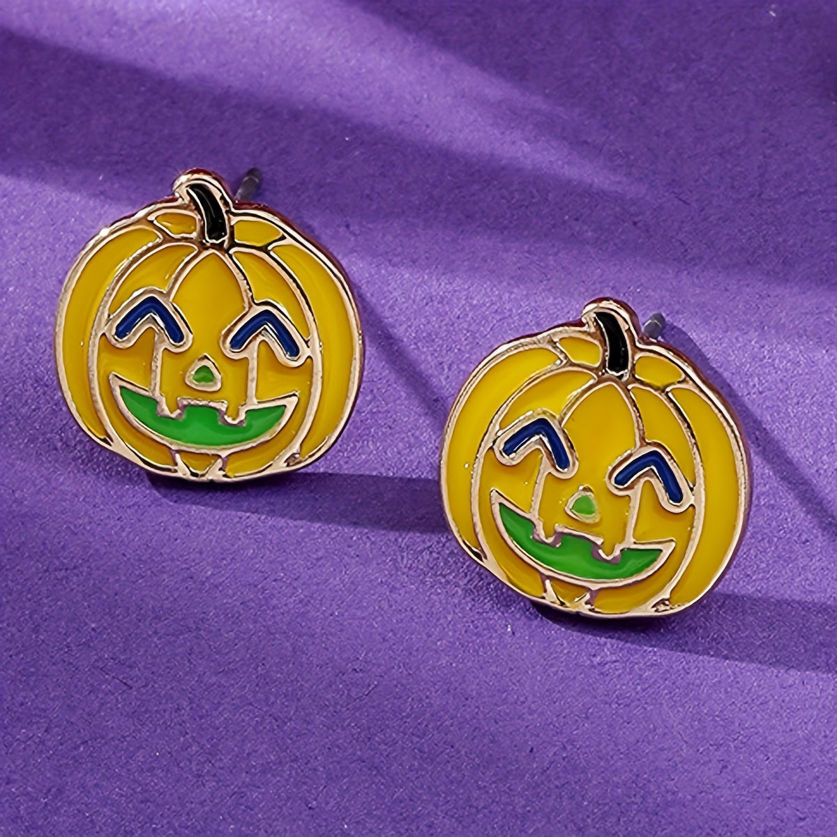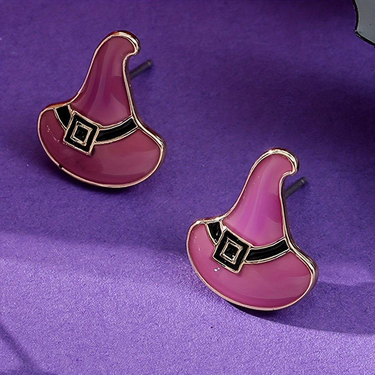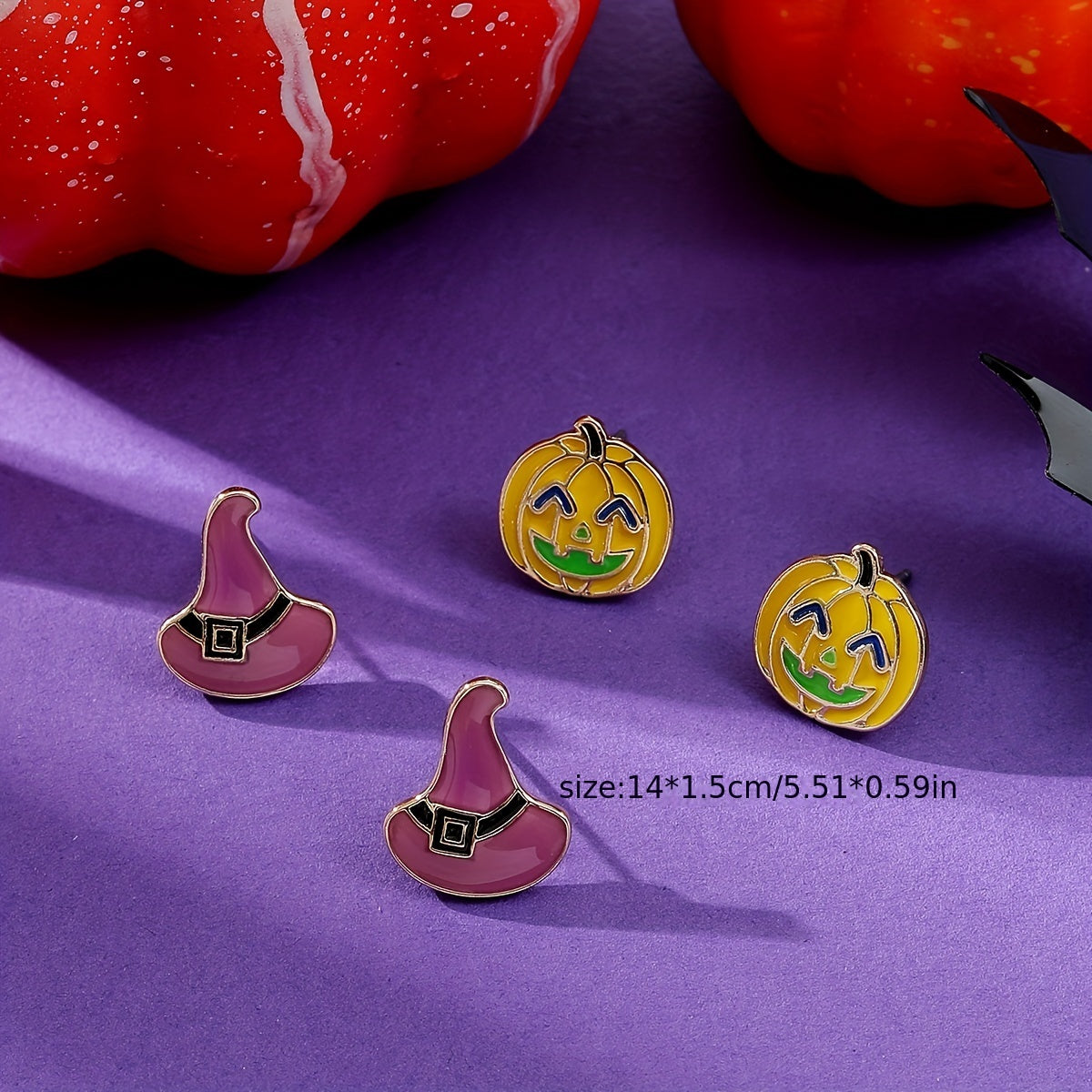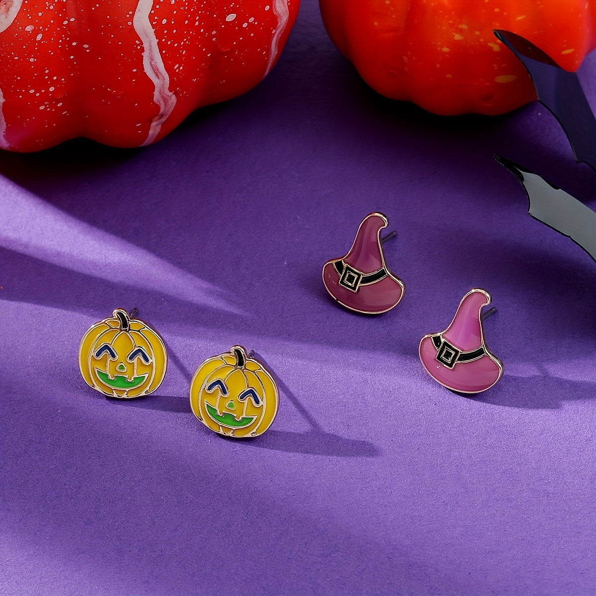 Get into the Halloween spirit with this 2 pairs enamel stud earrings set featuring pumpkin and witch's hat designs. Made of zinc alloy, these earrings are perfect for female gift.