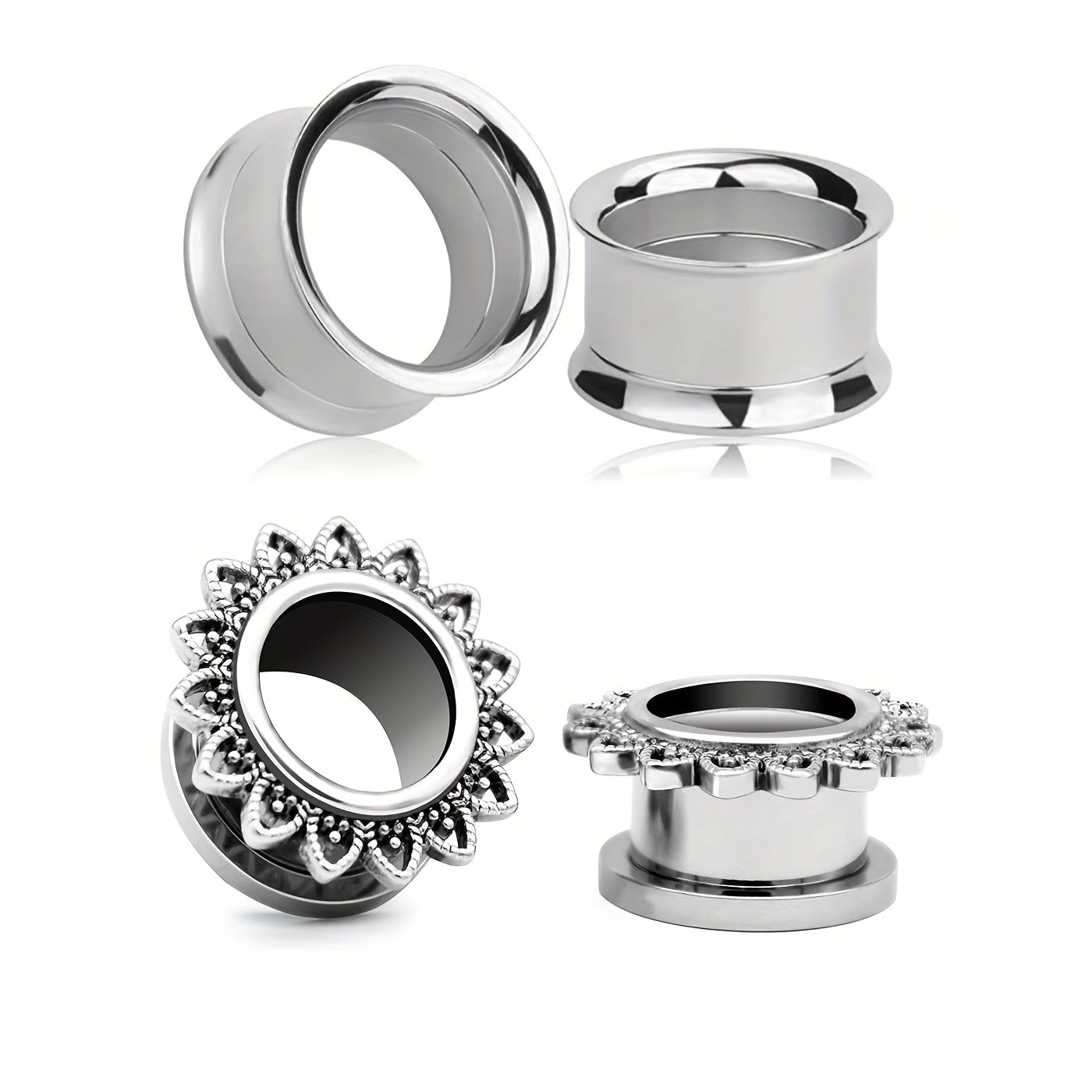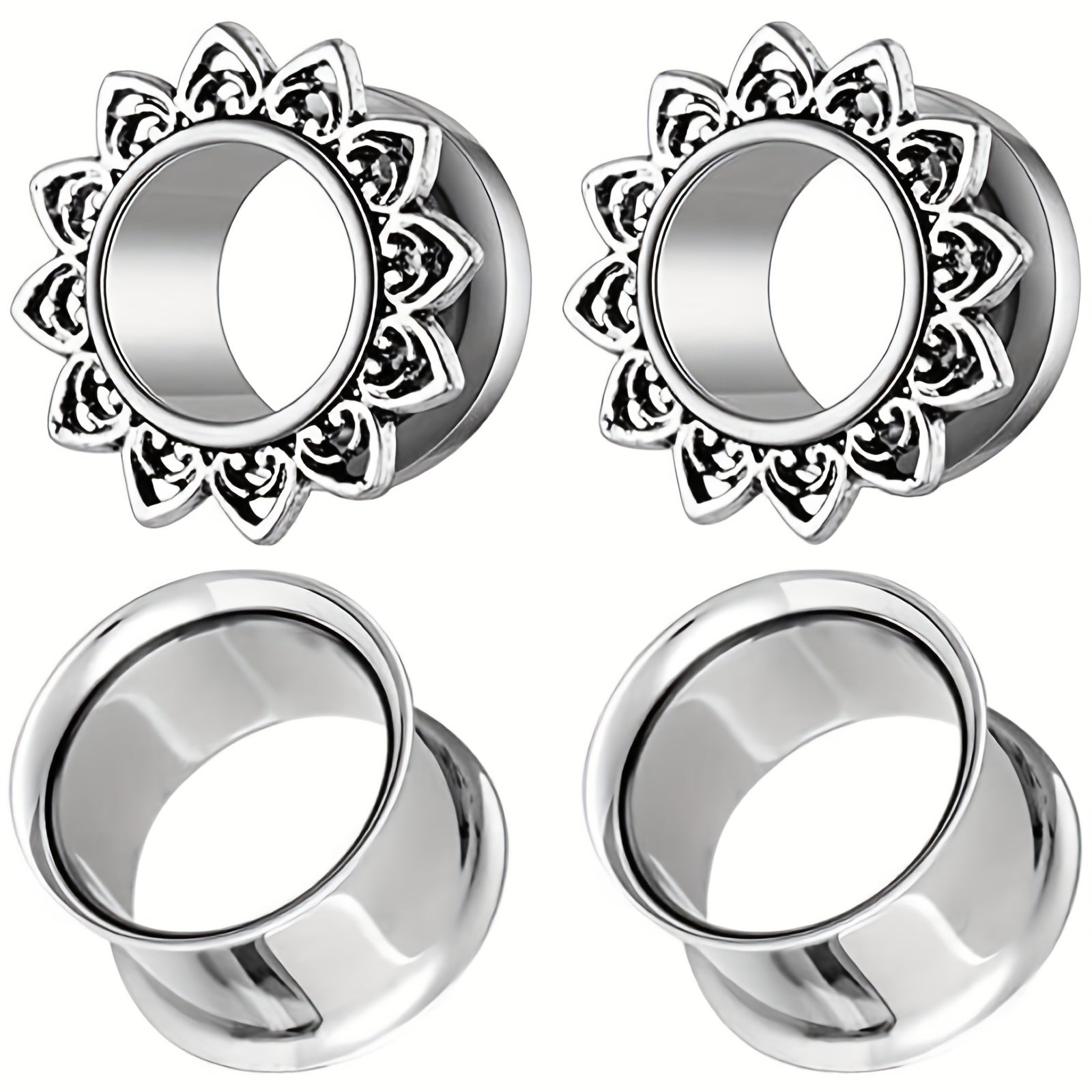 This ear stretching kit includes 2 pairs of silver stainless steel hollow ear expanders. Perfect for a punk look and suitable for both men and women.