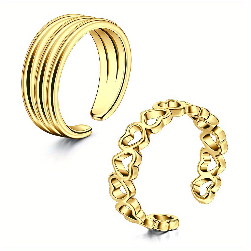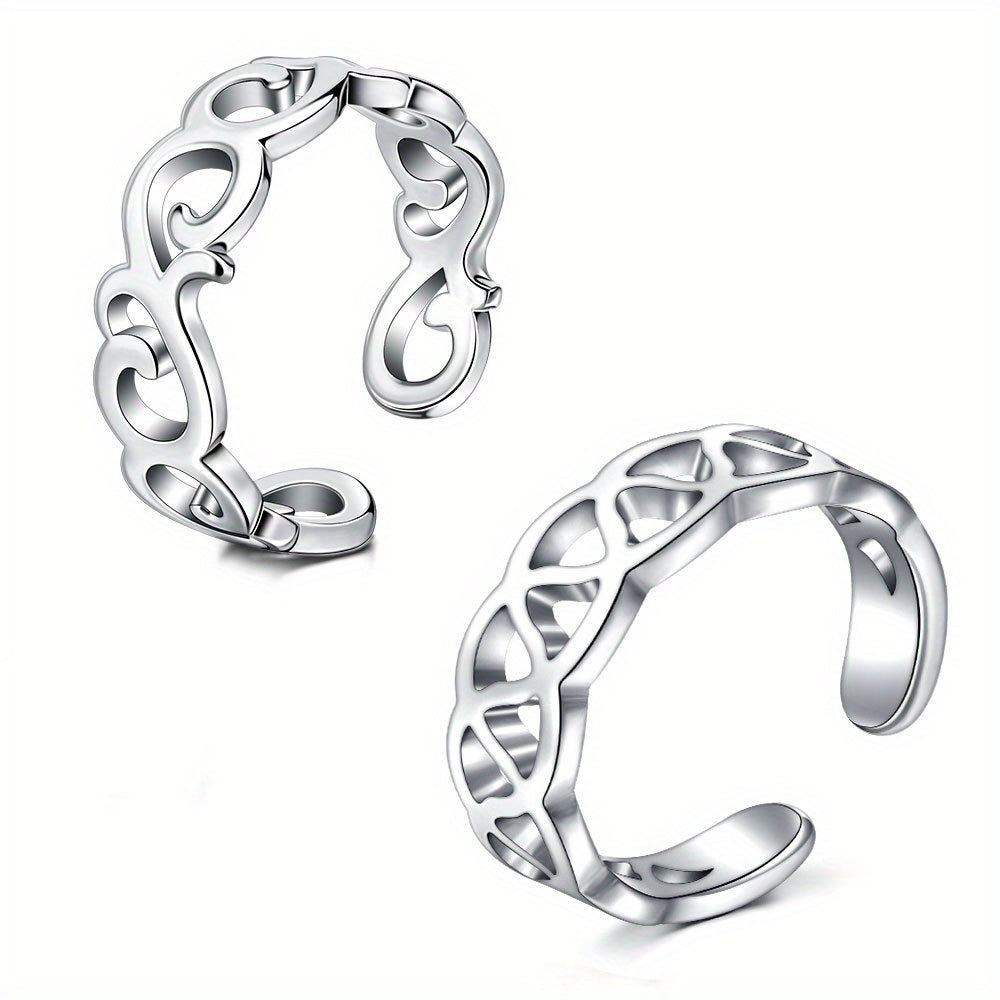 2 Pcs Adjustable Toe Rings Stainless Steel Foot Jewelry