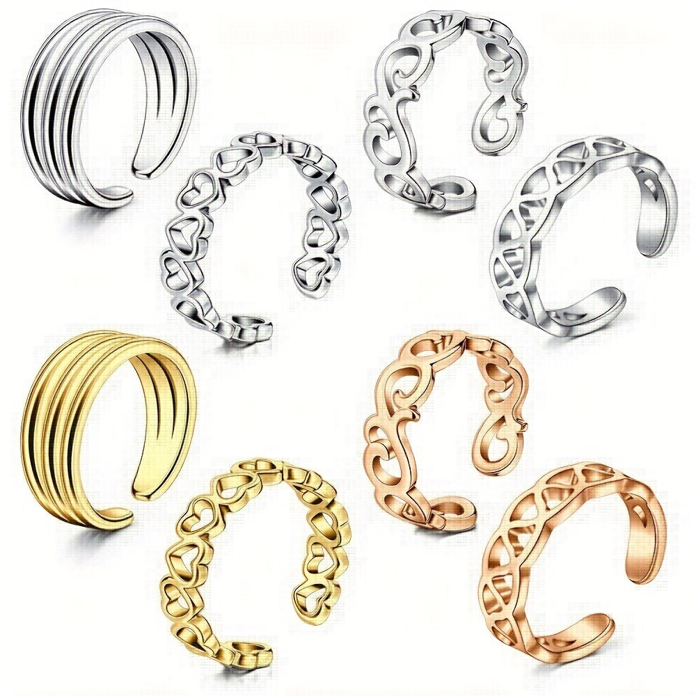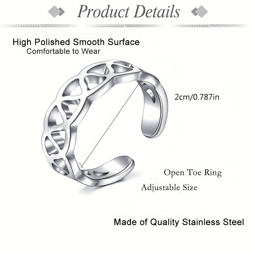 Enhance your look with these stylish open toe rings made of durable stainless steel. Perfect for any occasion, these adjustable rings can be worn on your toes or knuckles, adding a touch of elegance to your outfit.