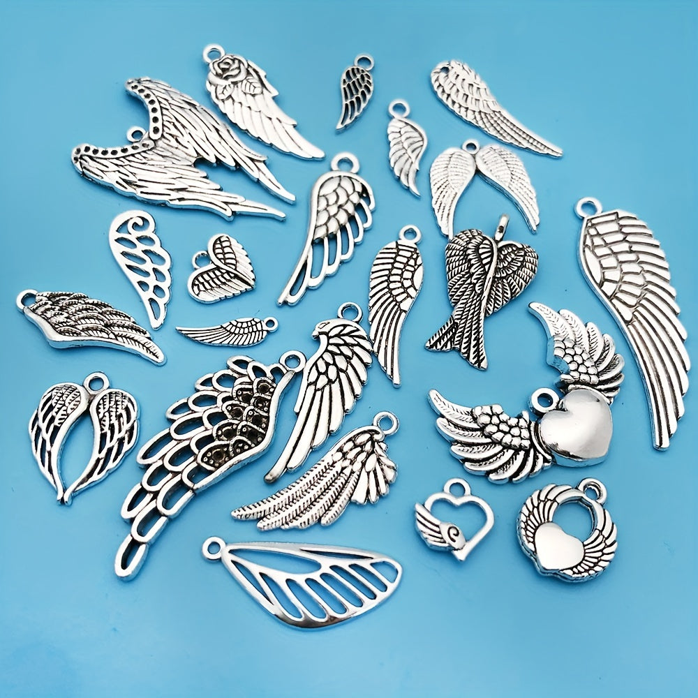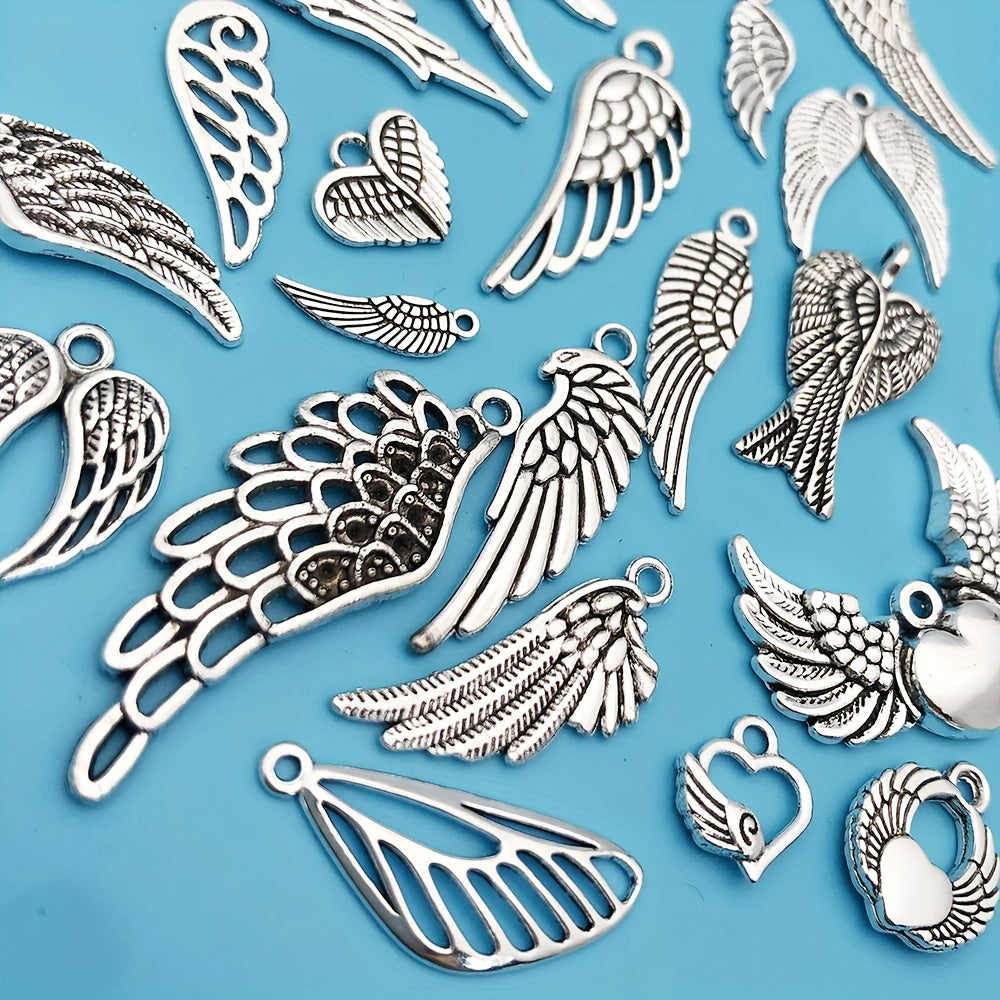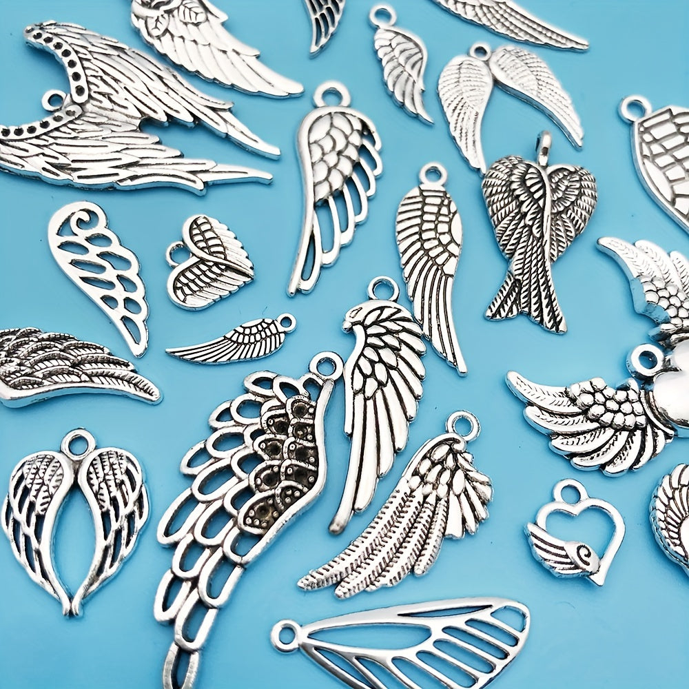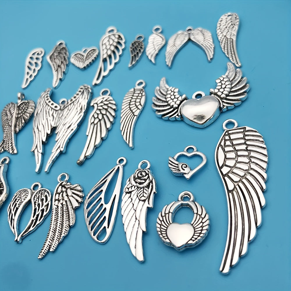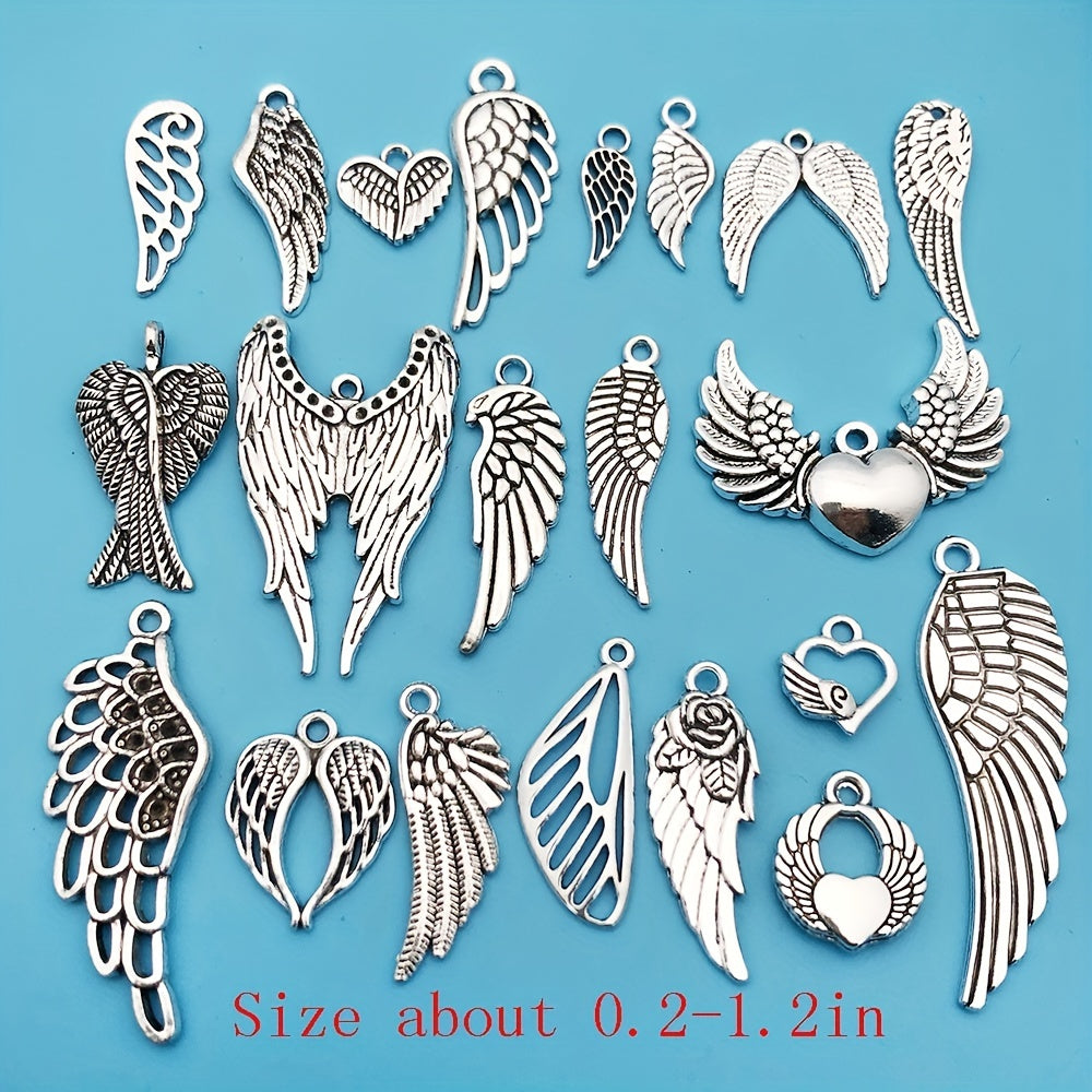 Create stunning jewelry with this set of 20 antique silver feather angel wing charms. Perfect for necklaces, bracelets, and crafting projects.
