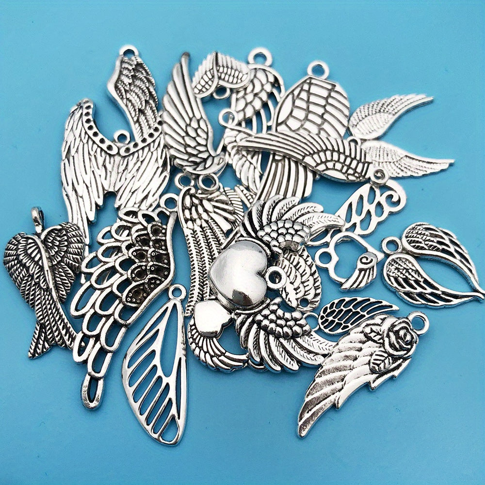 20 Antique Silver Feather Angel Wing Charms for DIY Jewelry Making