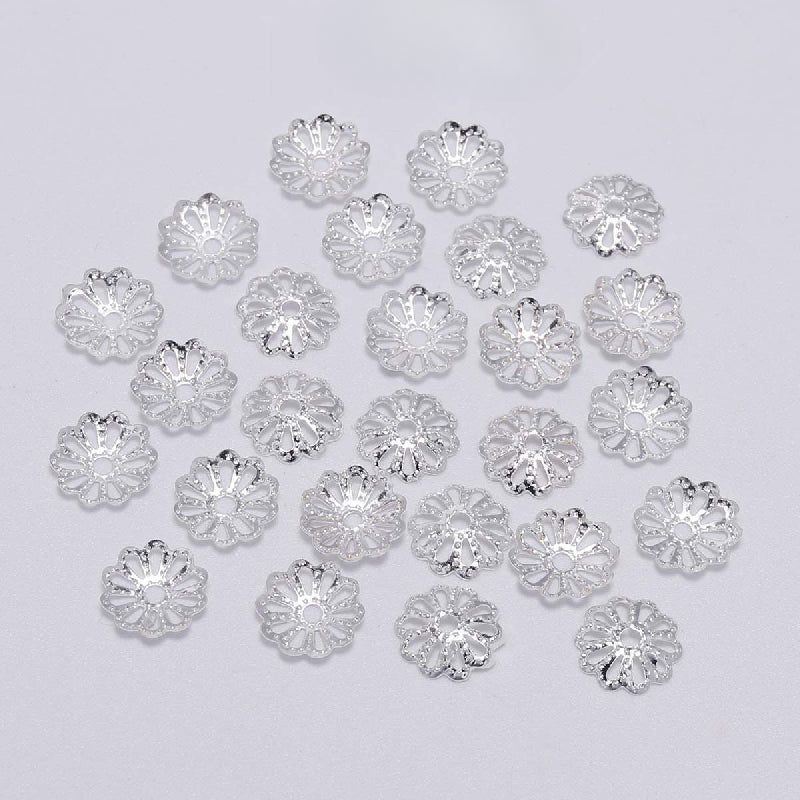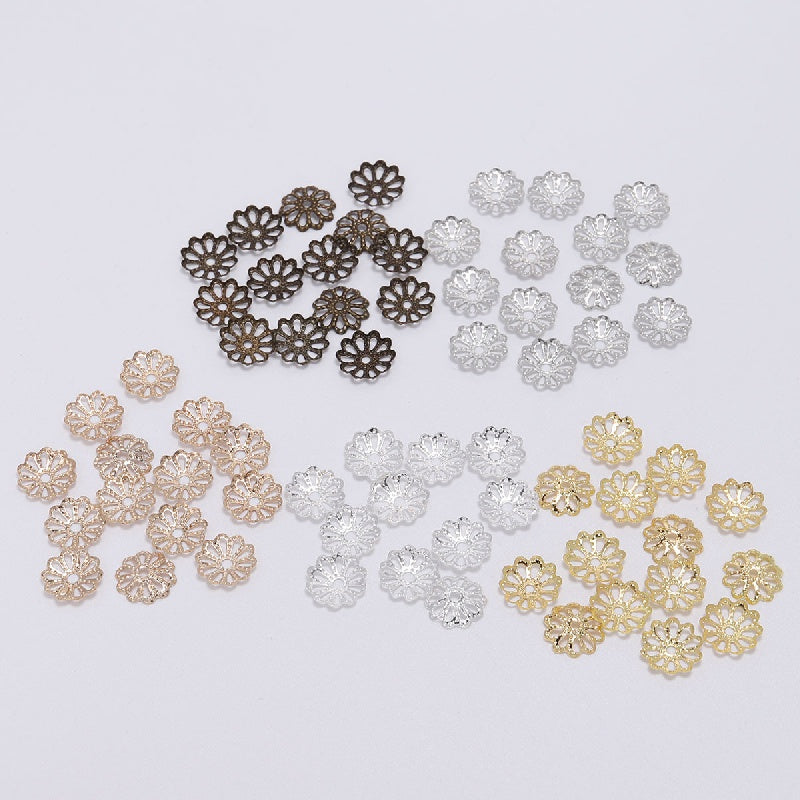200pcs 7-9mm Metal Hollow Flower Holder DIY Jewelry Natural Stone Beads Cap