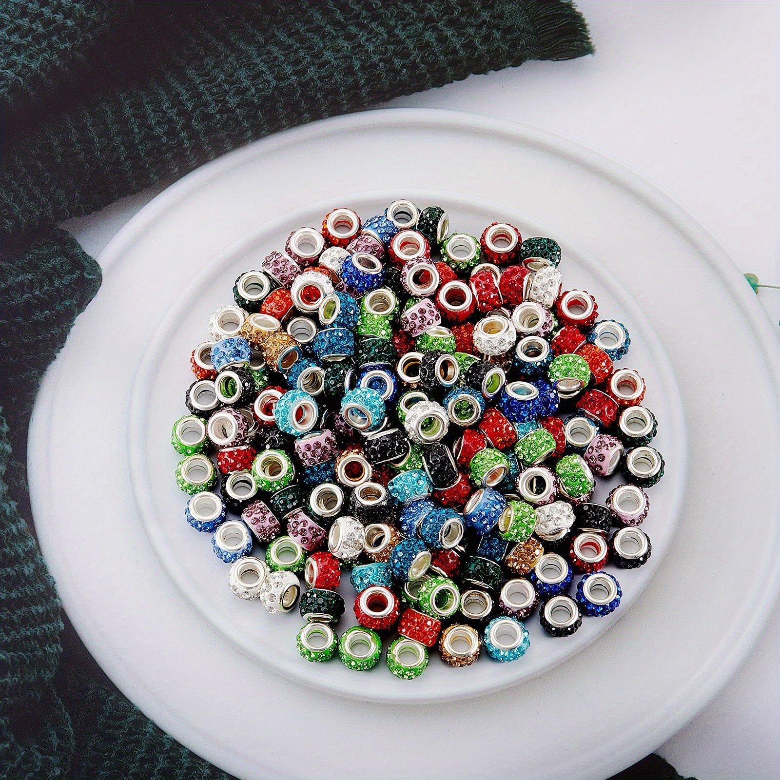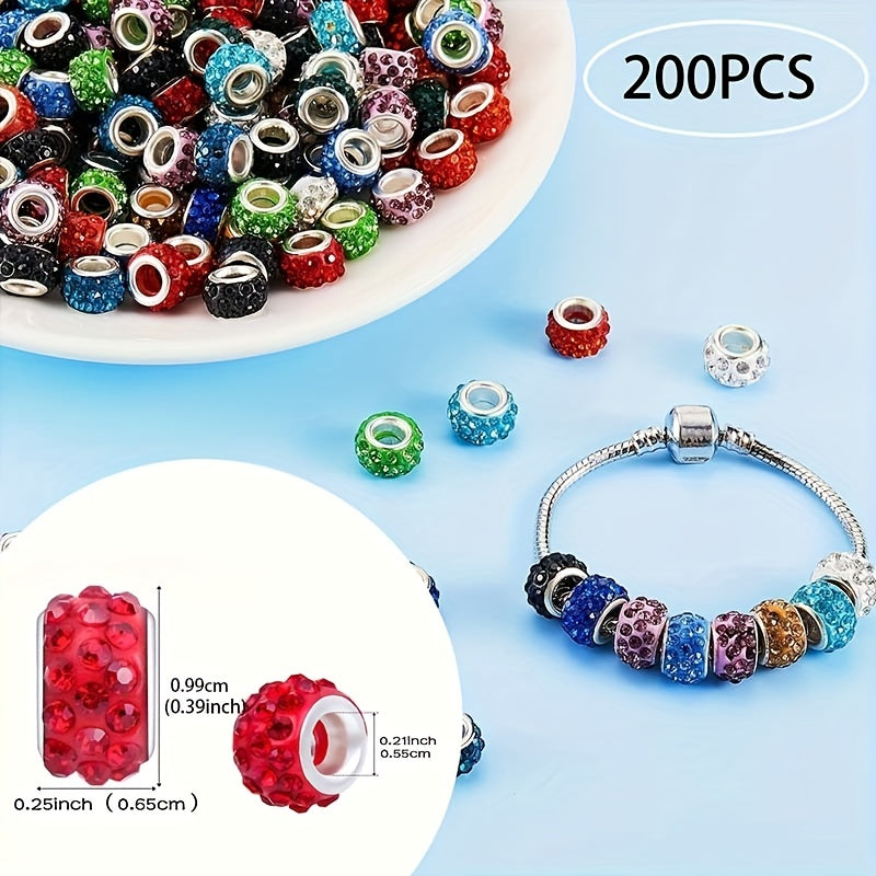 Get this set of 200 large hole beads with mixed rhinestone charms for your DIY jewelry making projects. Perfect for bracelets, necklaces, and earrings.
