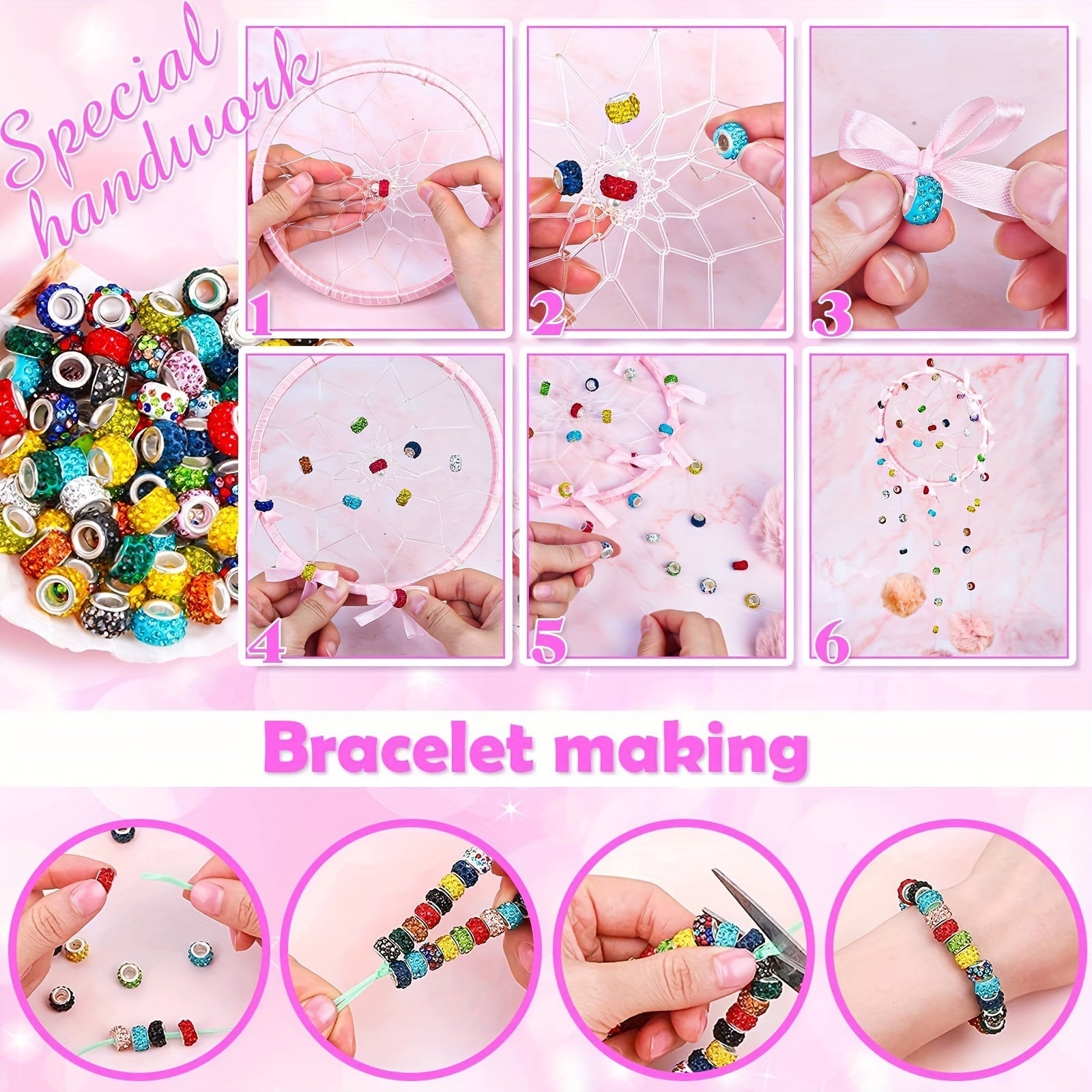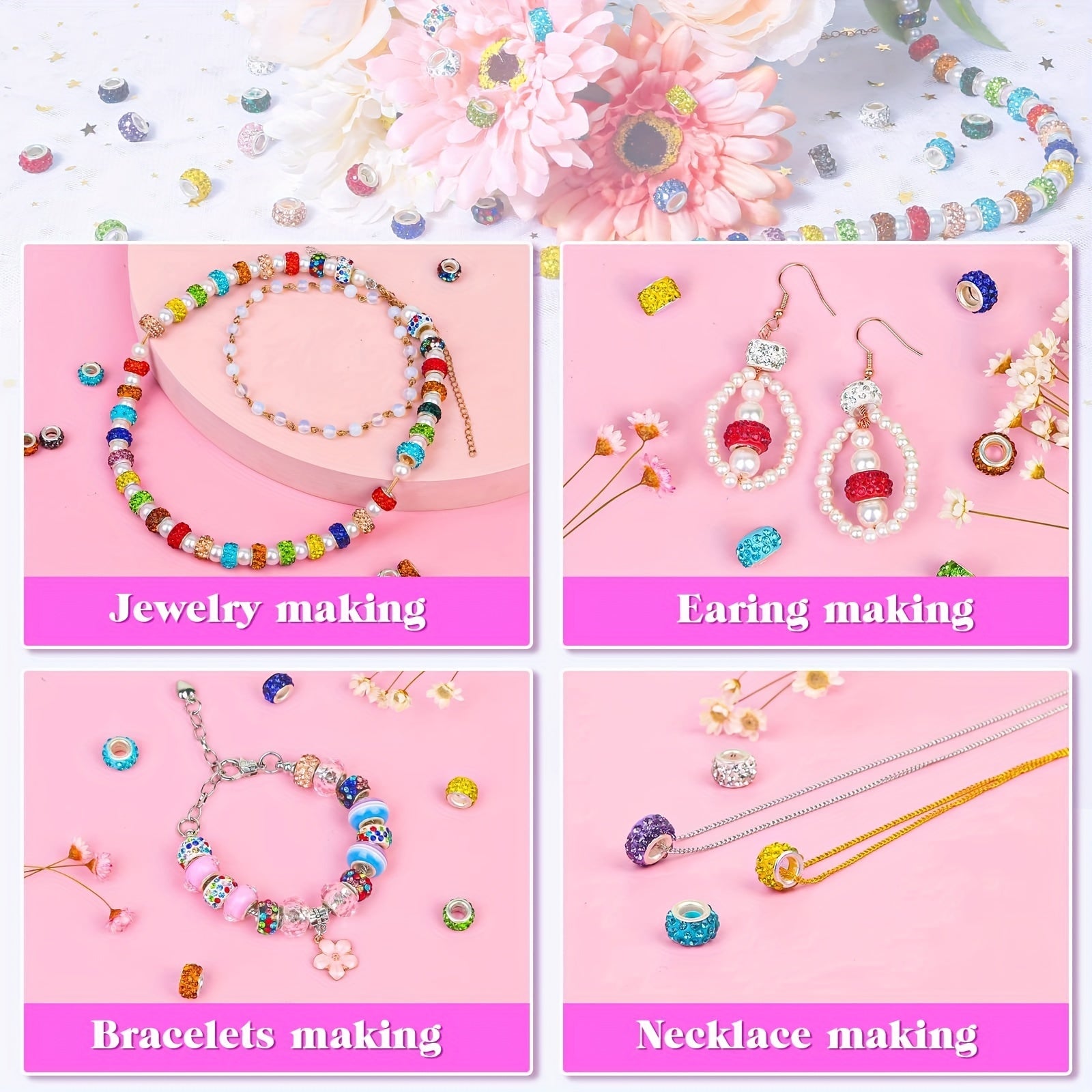 • 200pcs of large hole beads with mixed rhinestone charms