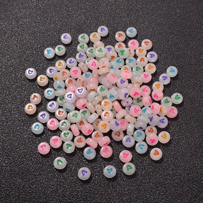 Create stunning jewelry with these luminous flat heart beads that glow in the dark. Perfect for making bracelets, necklaces, and DIY accessories.