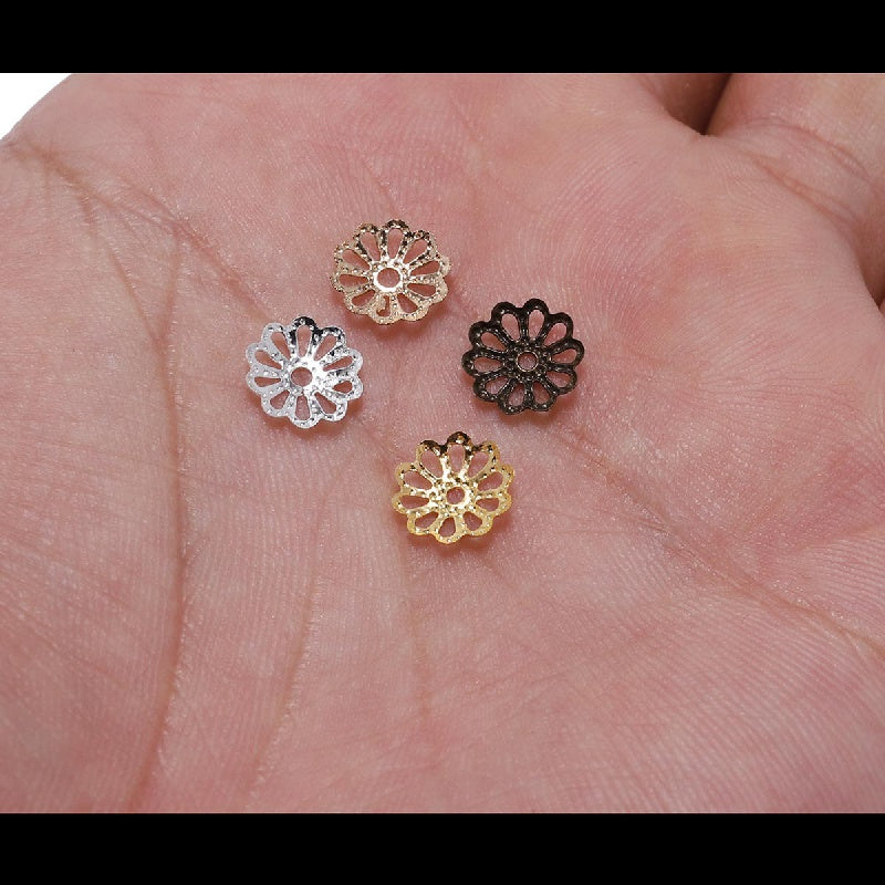 Get creative with these 200 metal hollow flower holders for your DIY jewelry projects. Each holder is perfect for creating unique and stylish pieces.
