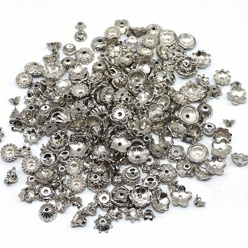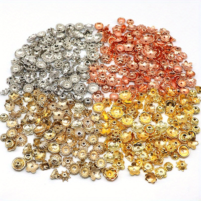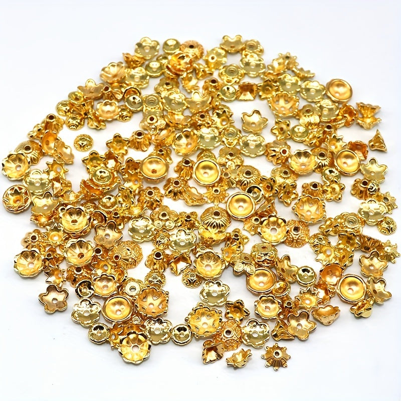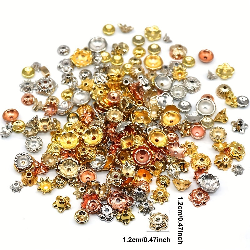 Enhance your jewelry creations with these 200 plastic bead caps in golden and silver colors. Perfect for adding a decorative touch to your designs.