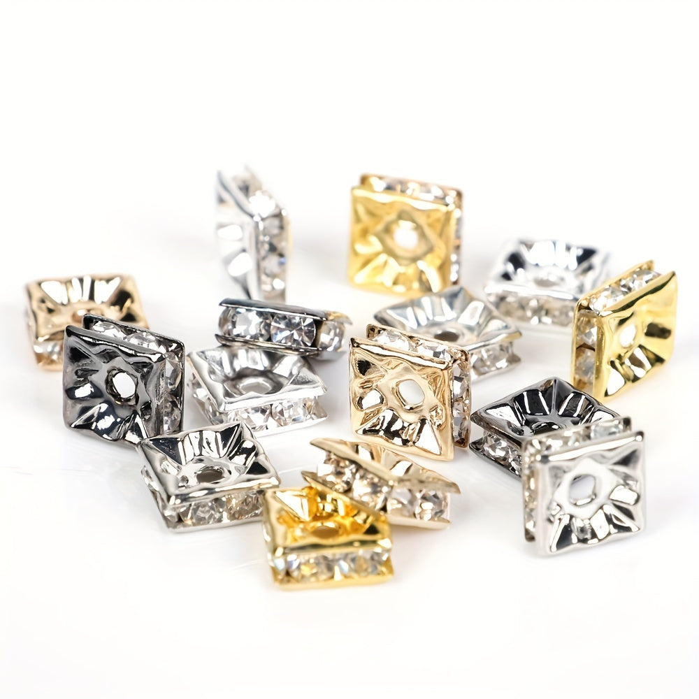 Add some sparkle to your DIY jewelry projects with this set of 200 square faux diamond ring bead spacers. These 6-8mm spacers are perfect for adding a touch of glam to your creations.