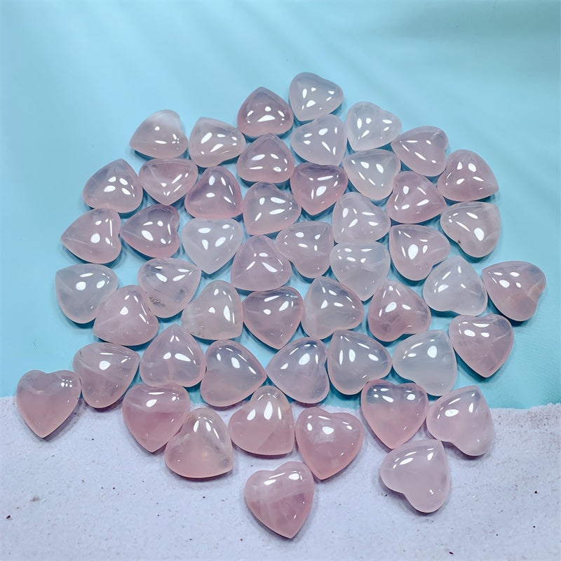 Bring positive energy into your space with these natural rose quartz hearts. They are perfect for home decoration and healing purposes.