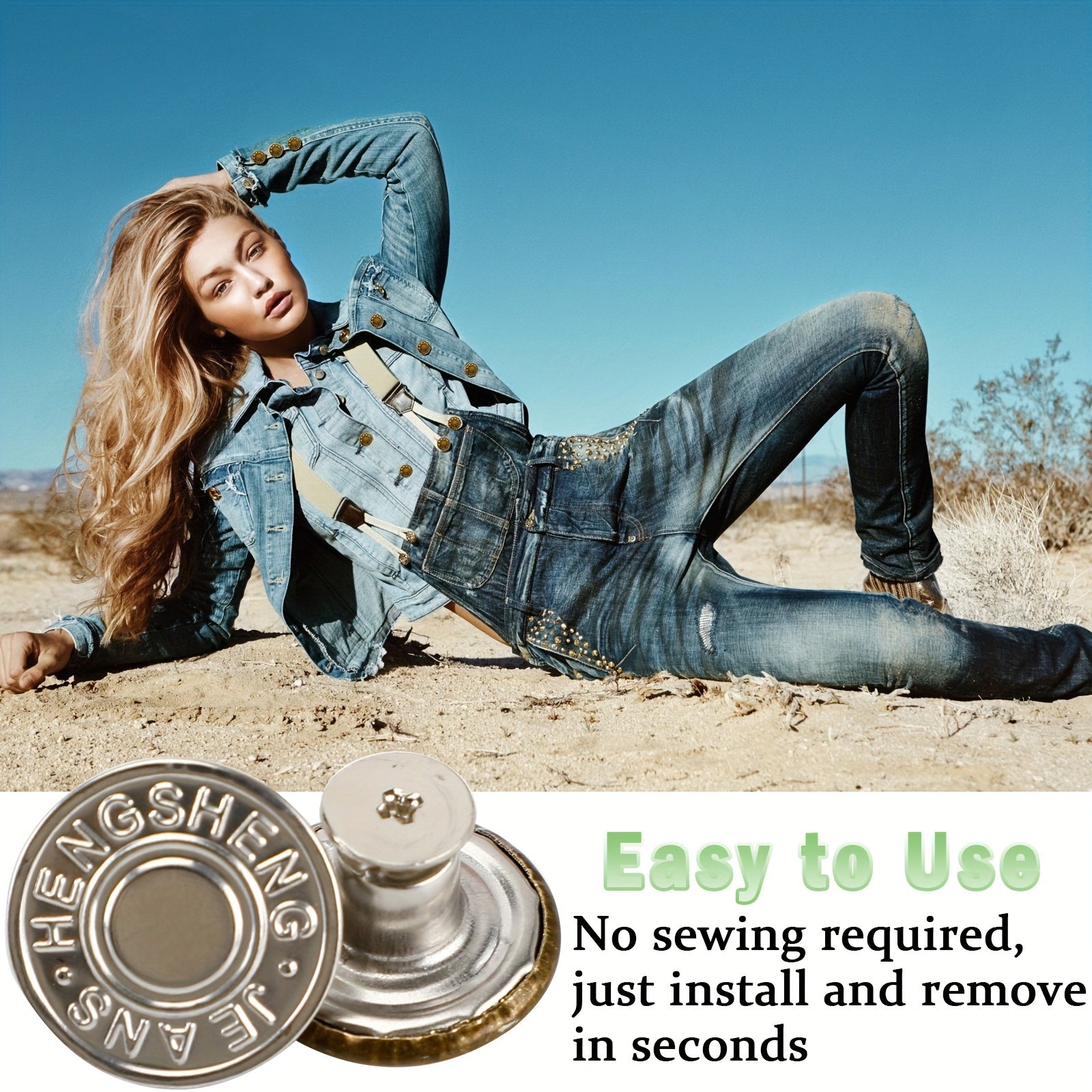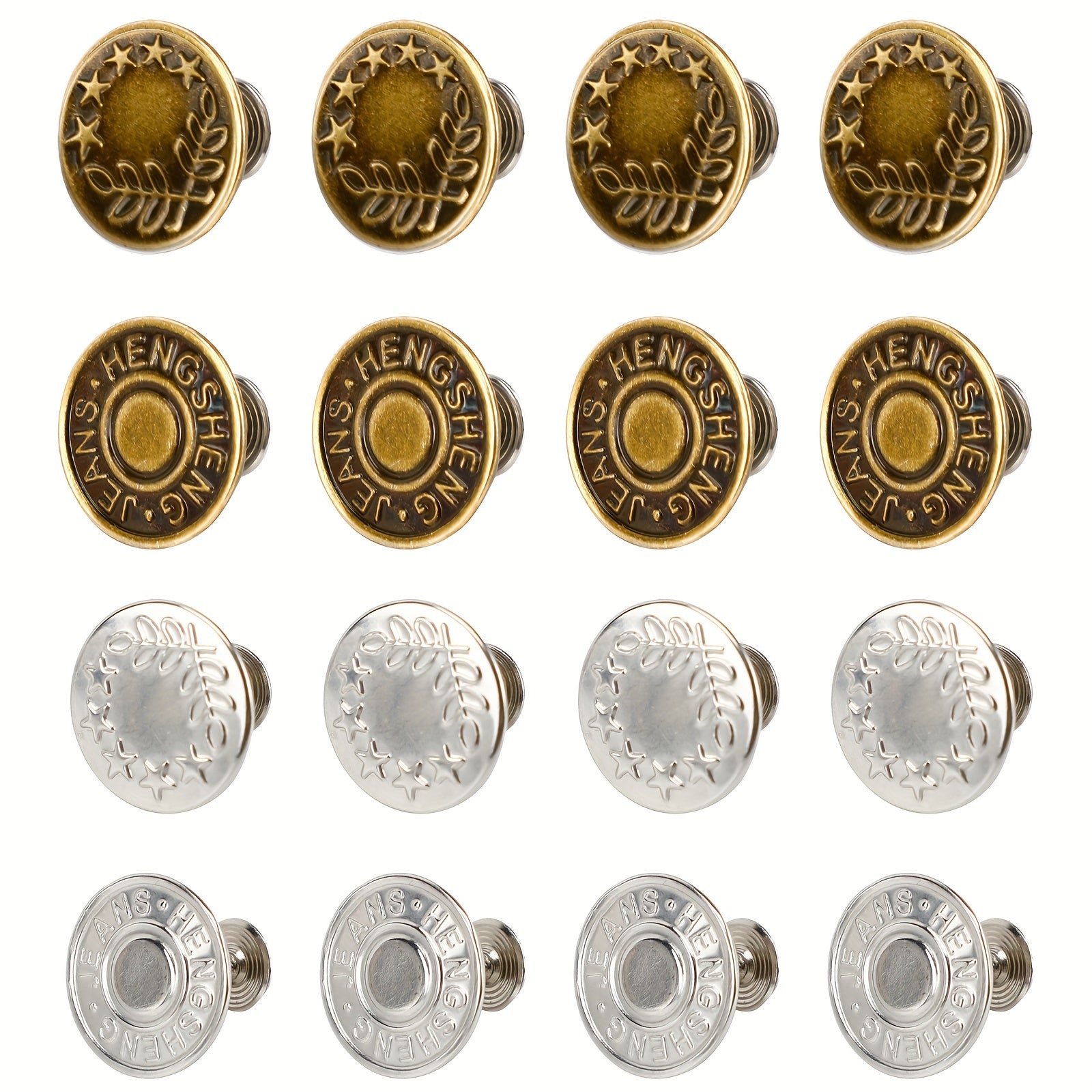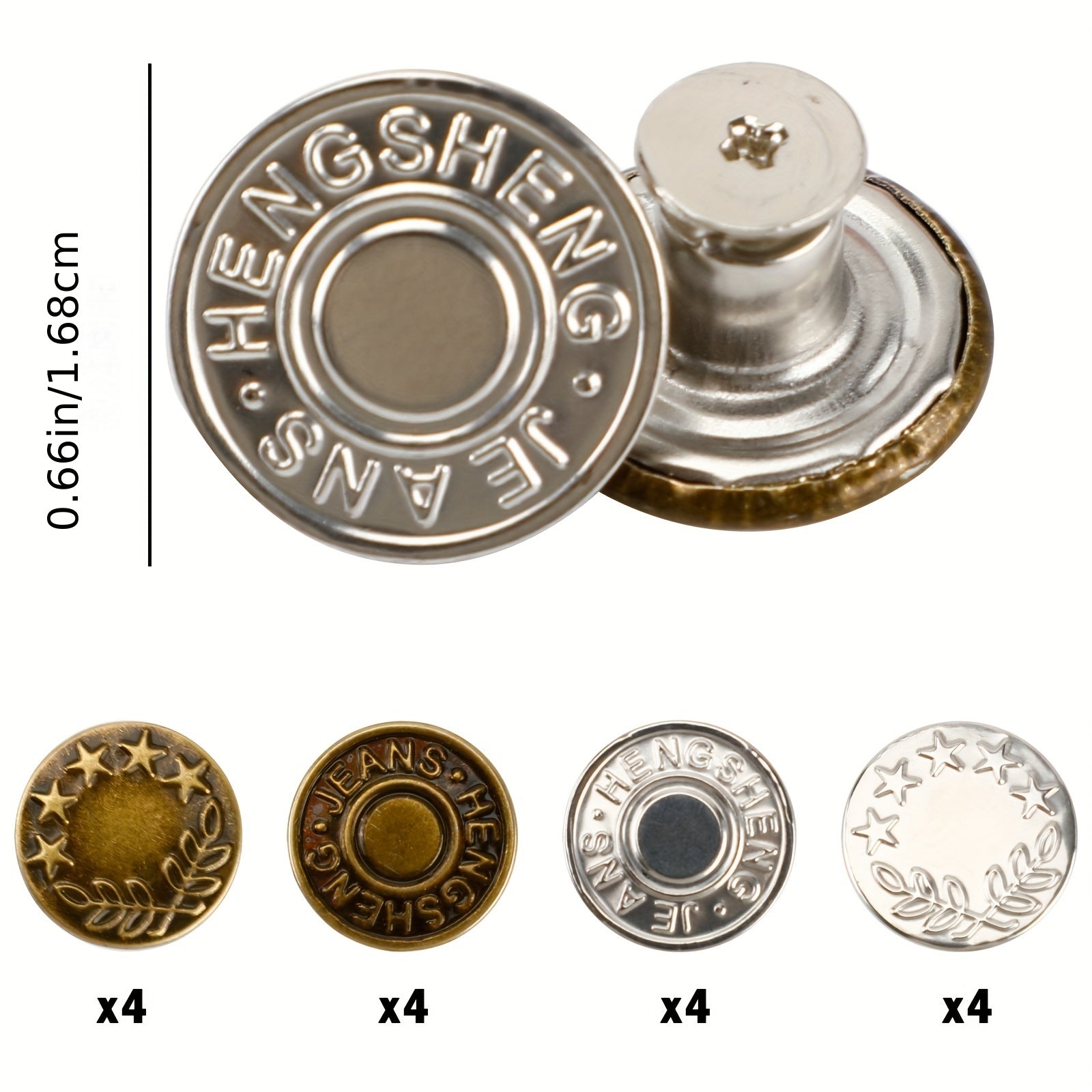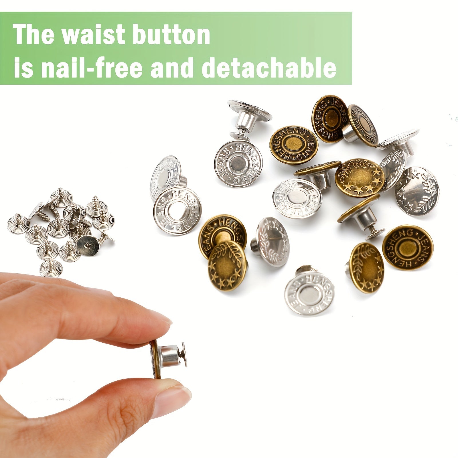 This set includes 20pcs of 17mm jean buttons that are easy to attach for extending or reducing waist size without sewing. Made of metal, these button pins are durable and reliable.