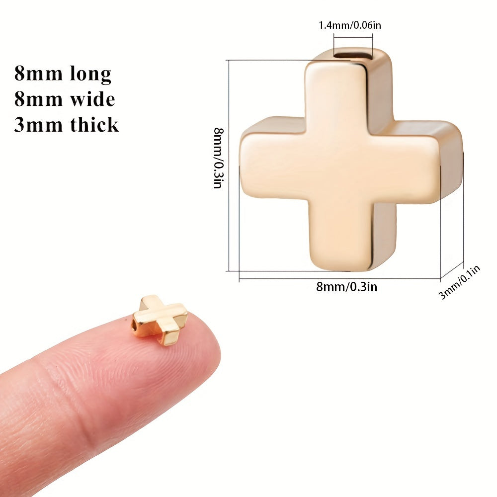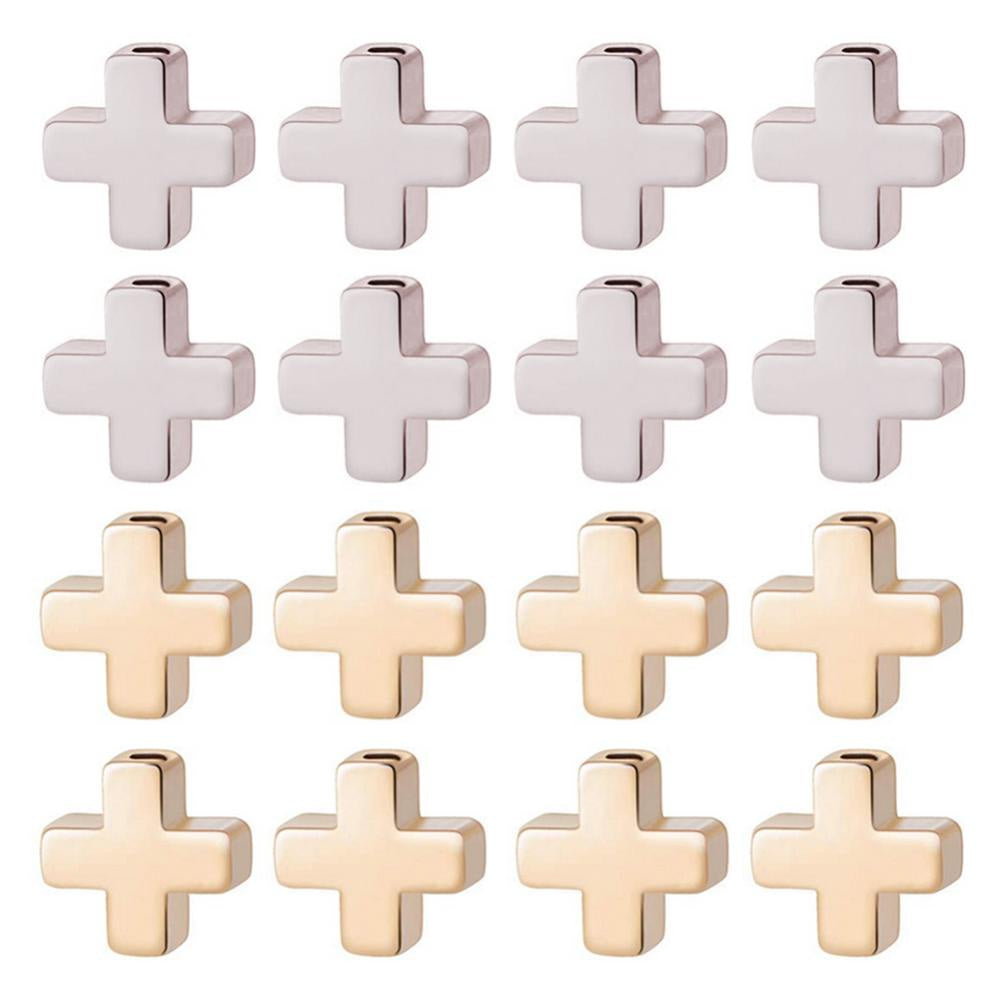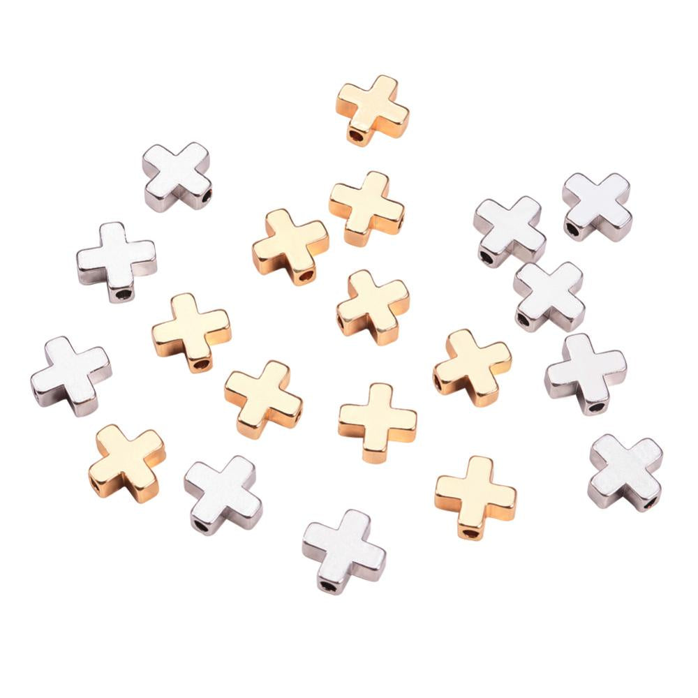 Enhance your jewelry-making projects with this set of 20 cross spacer beads. These metal beads are crafted in 18K platinum and golden tones, adding a touch of elegance to your creations. Each bead measures 8x8x3mm.
