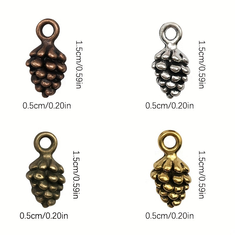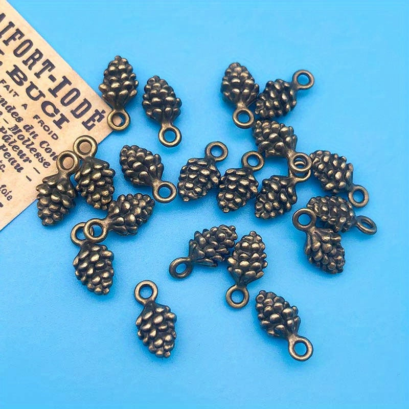 Enhance your jewelry-making projects with this set of 20 3D pine cone alloy charms. Perfect for creating unique bracelets and necklaces.