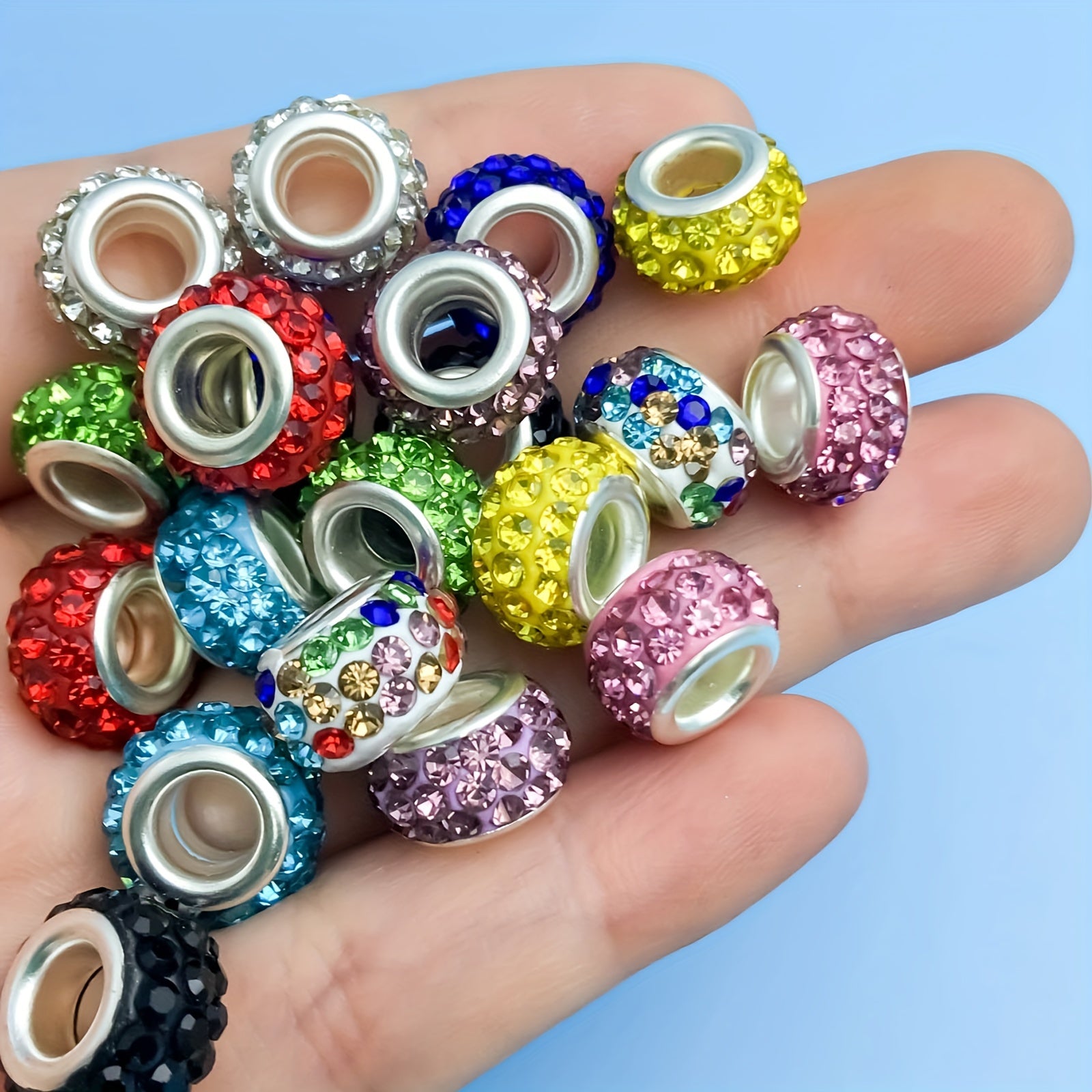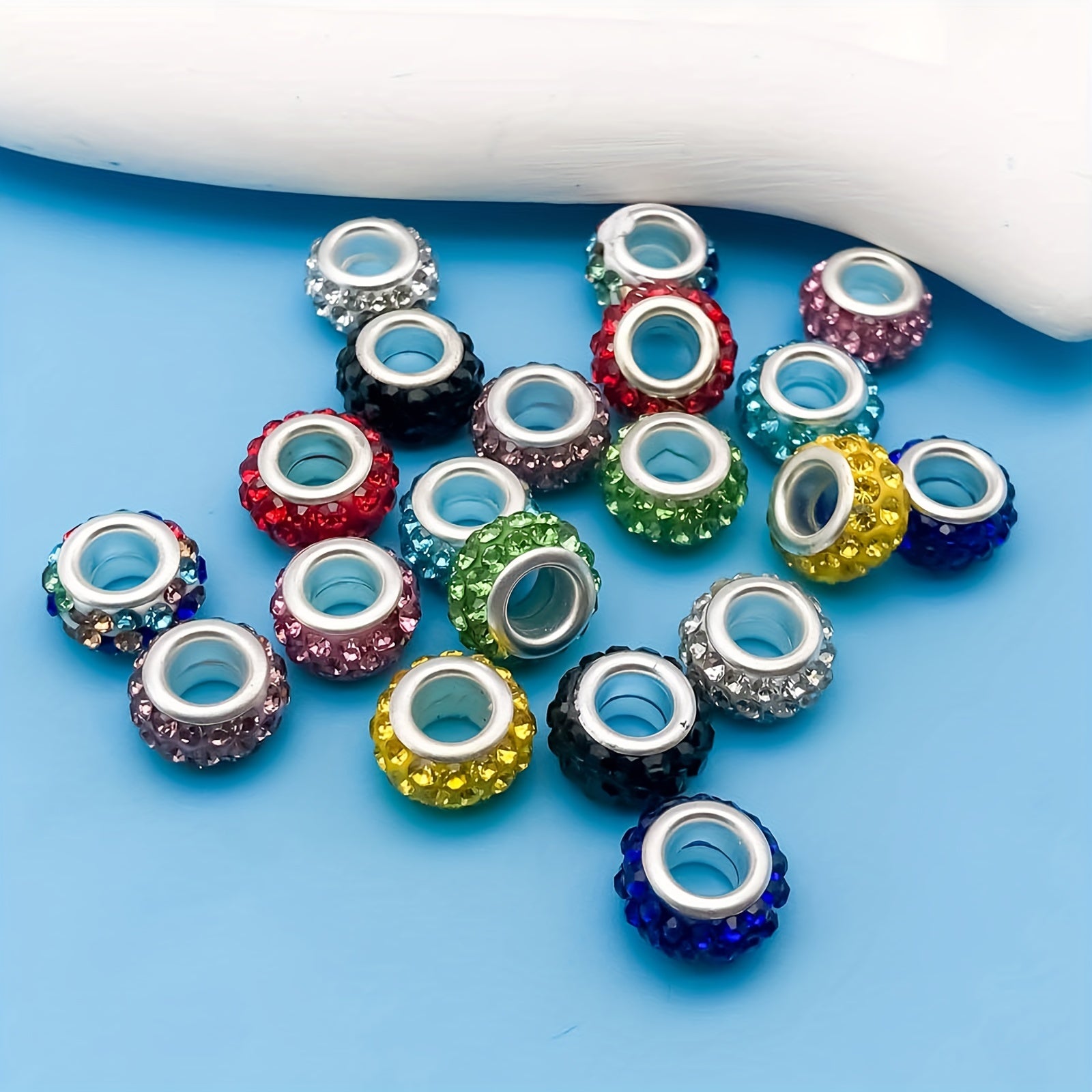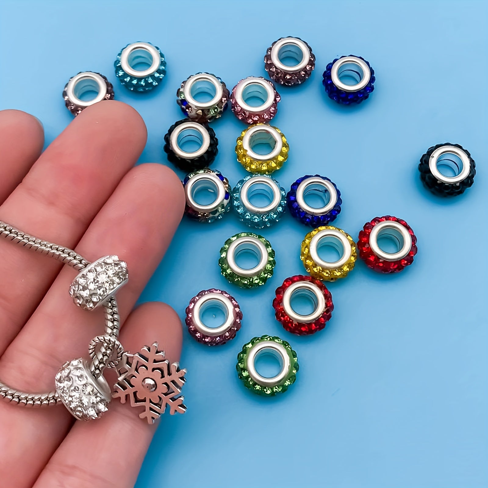 Add a touch of sparkle to your jewelry with these colorful rhinestone wheel spacer beads. These large hole beads are perfect for necklaces, bracelets, and earrings.