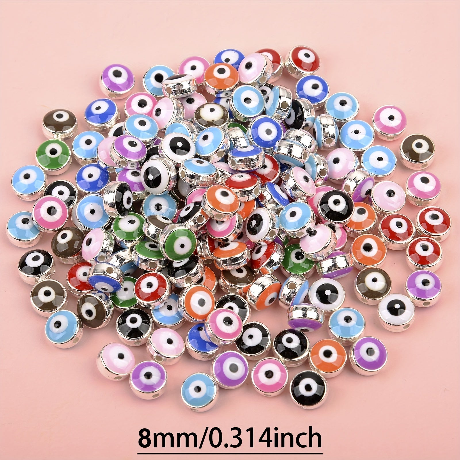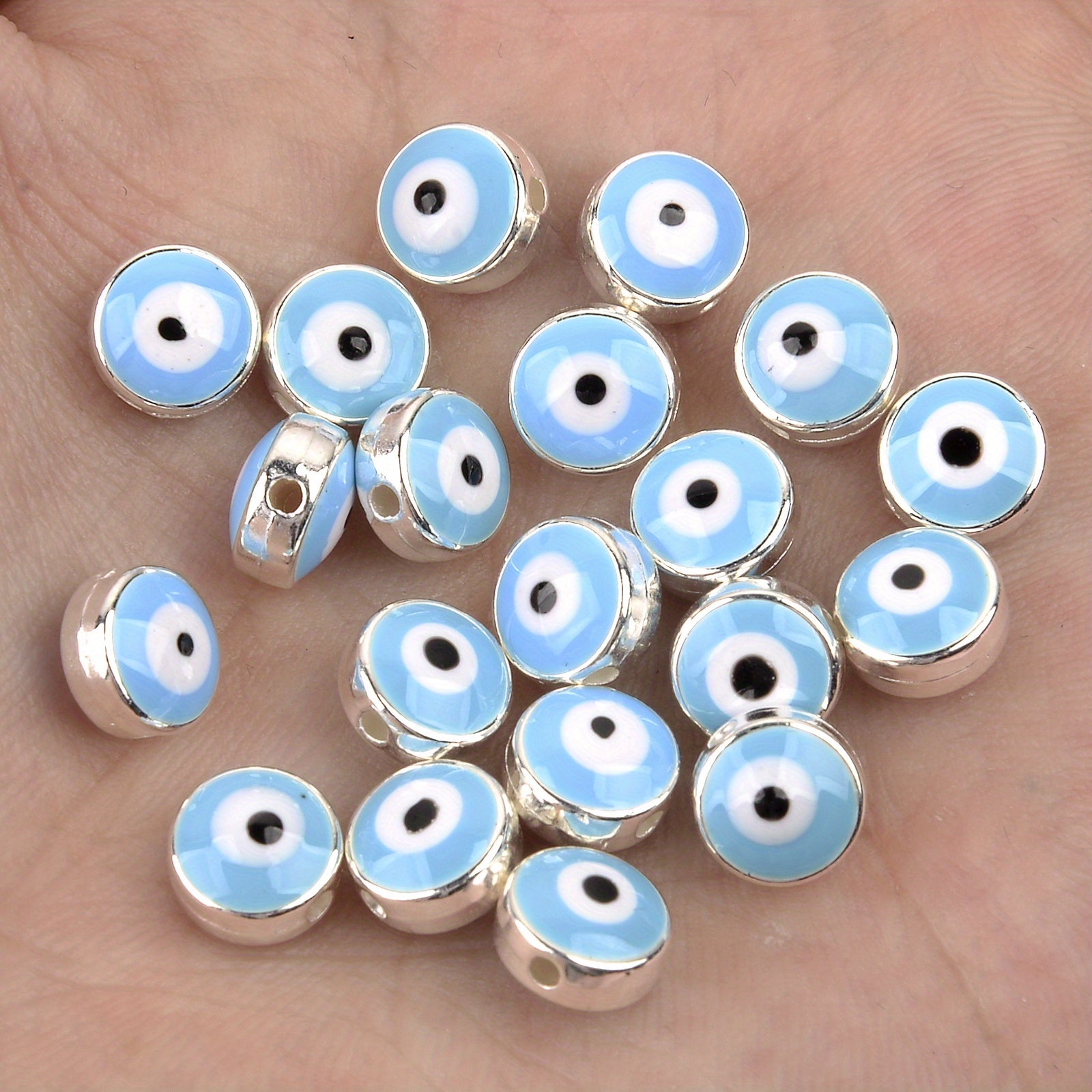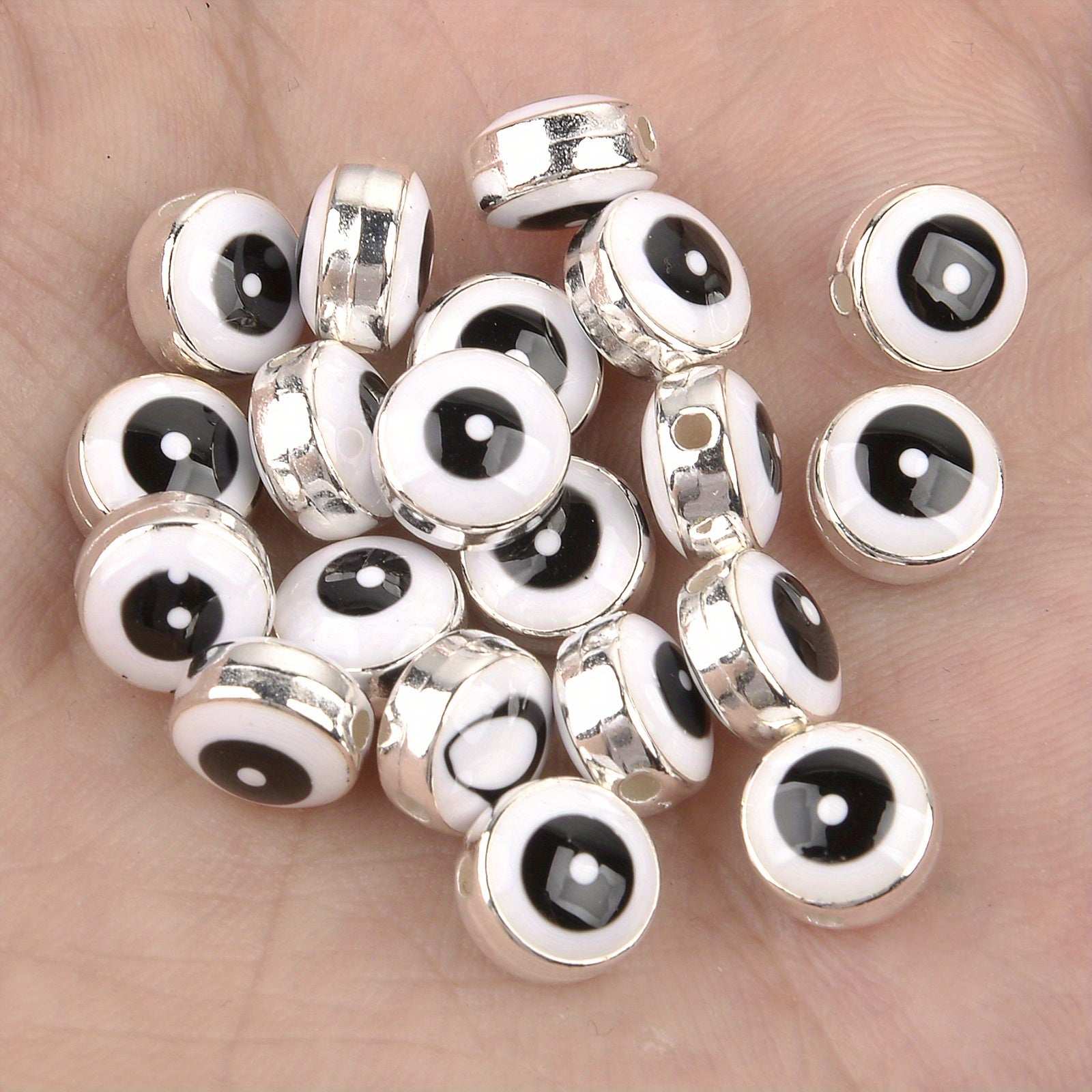Enhance your jewelry making projects with these 8mm evil eye resin beads featuring a silvery trim. Perfect for creating unique and eye-catching accessories.