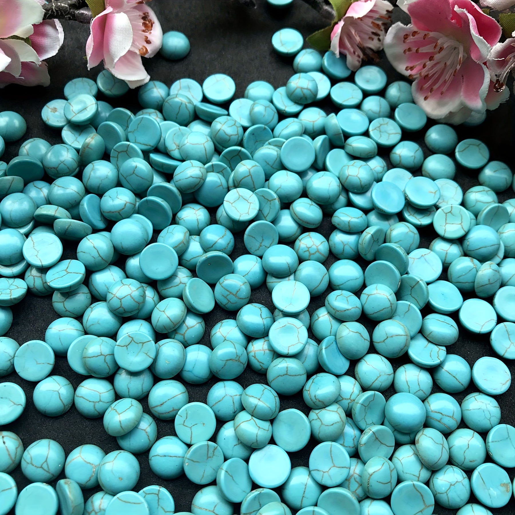 20pcs 8mm Turquoise Round Face Loose Stone Inlaid Ring Necklace