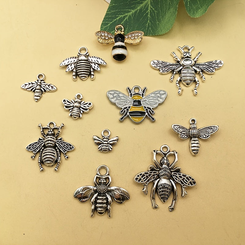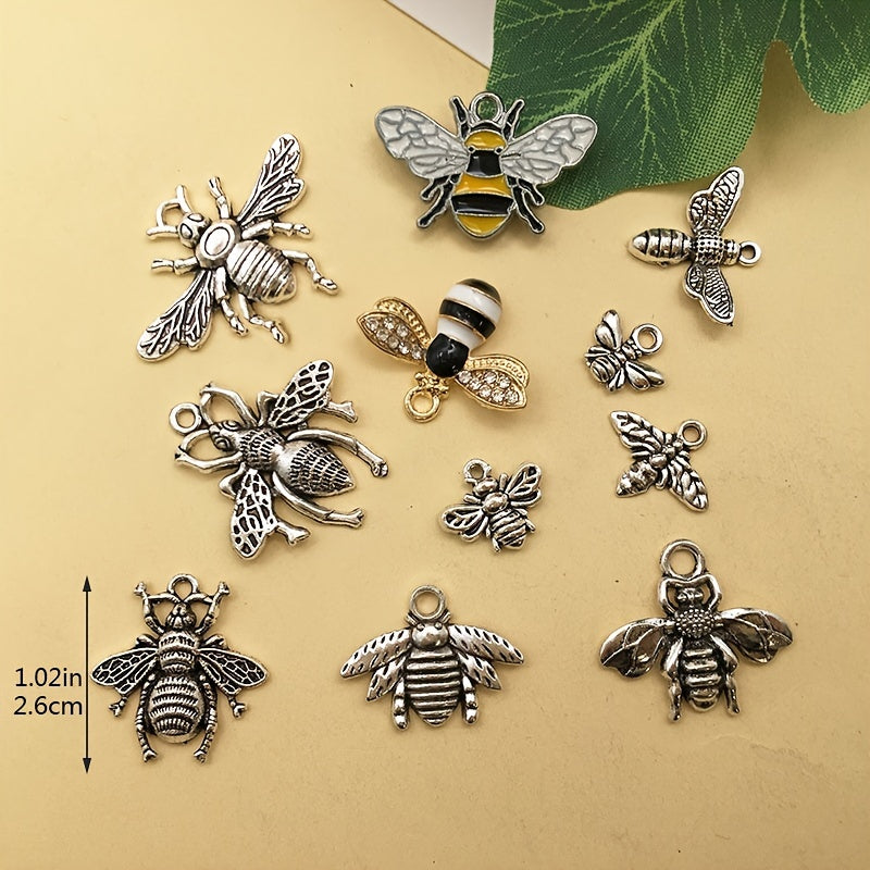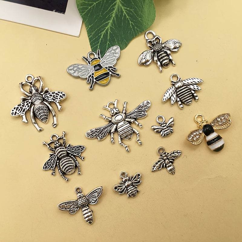 This set includes 20pcs of antique silver bee shape charms pendants, perfect for DIY necklace, bracelets, and other jewelry making projects. Made of zinc alloy, these charms are durable and stylish accessories.