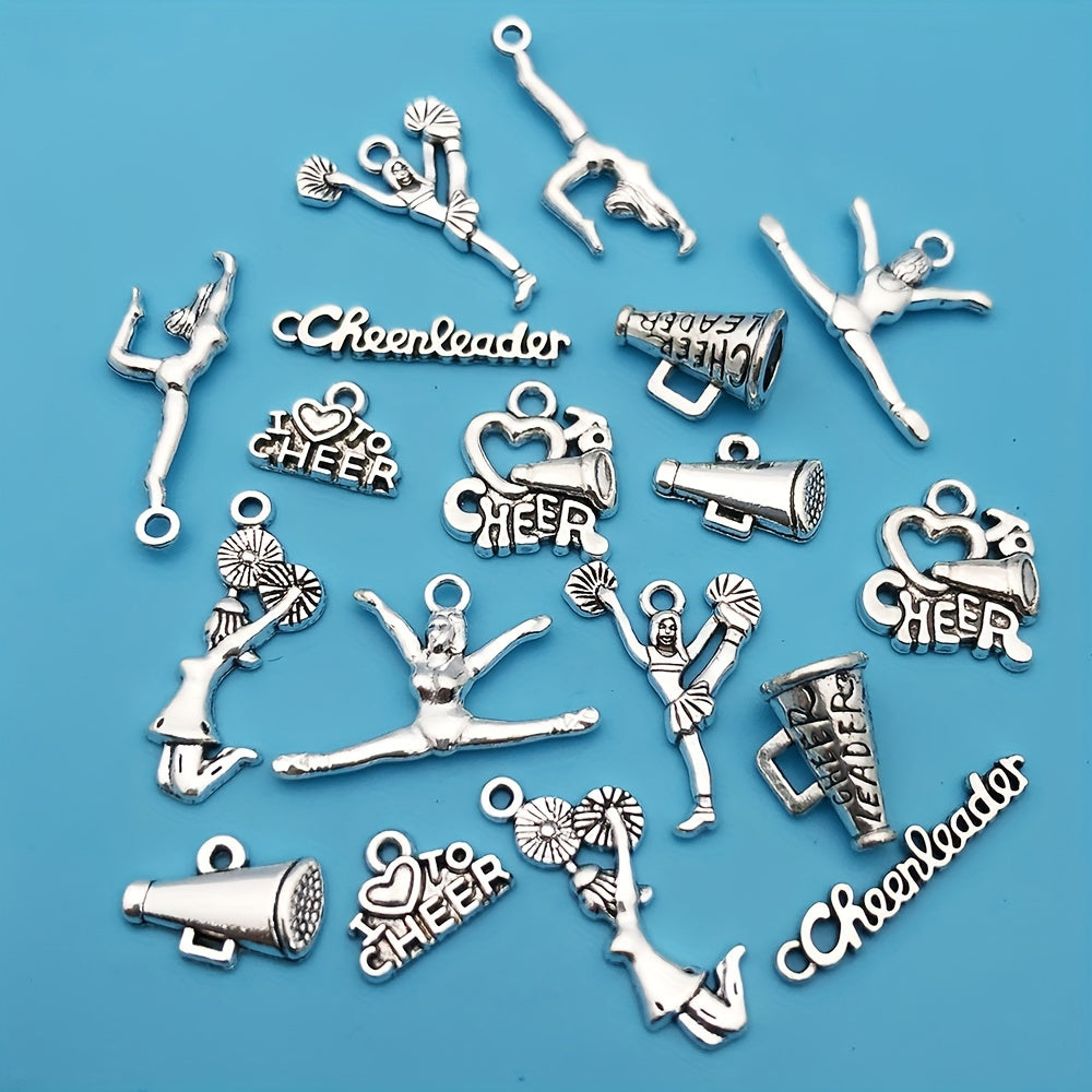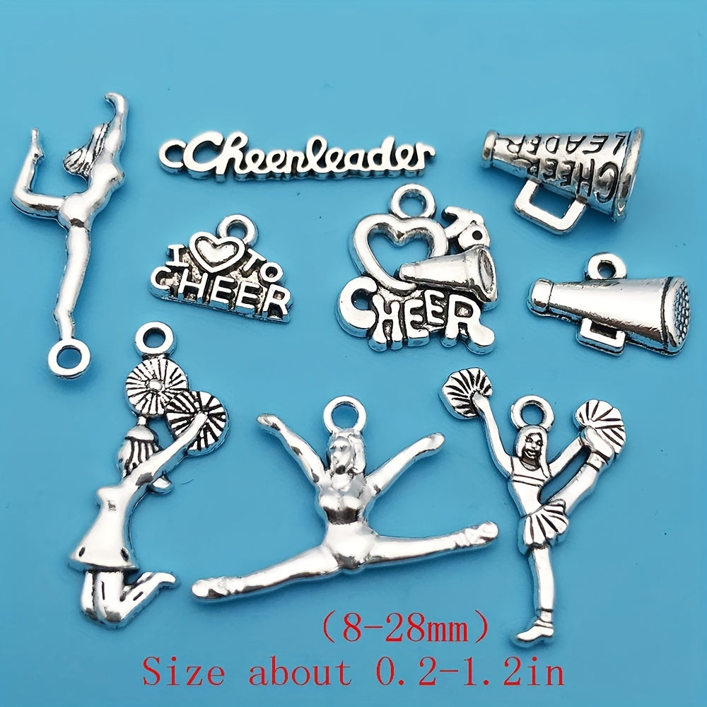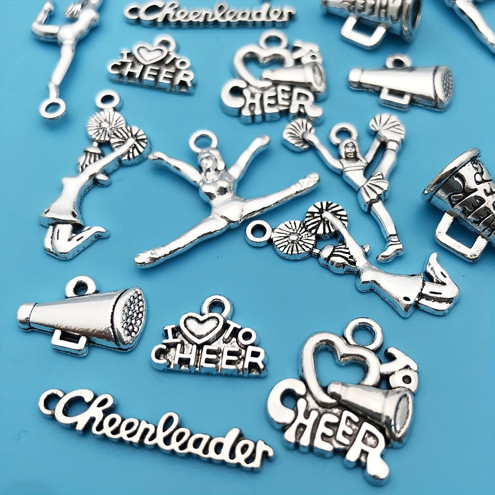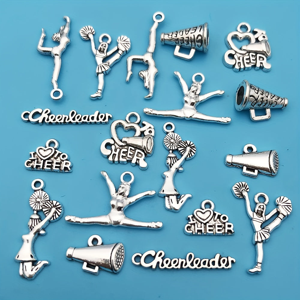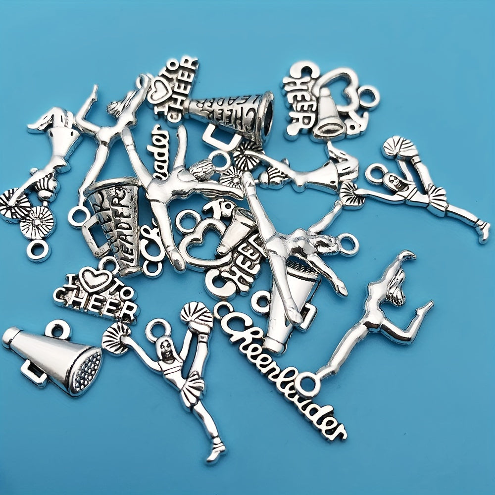 These antique silver cheerleader sports charms pendants are perfect for jewelry making, findings, and crafting accessories. Create your own unique necklaces and bracelets with these charms.