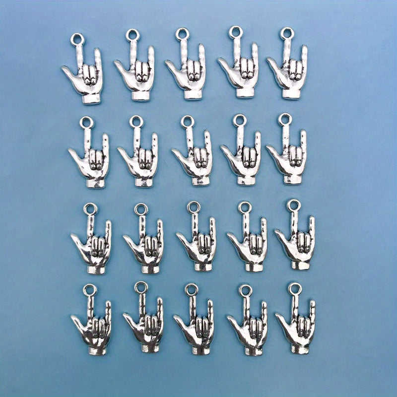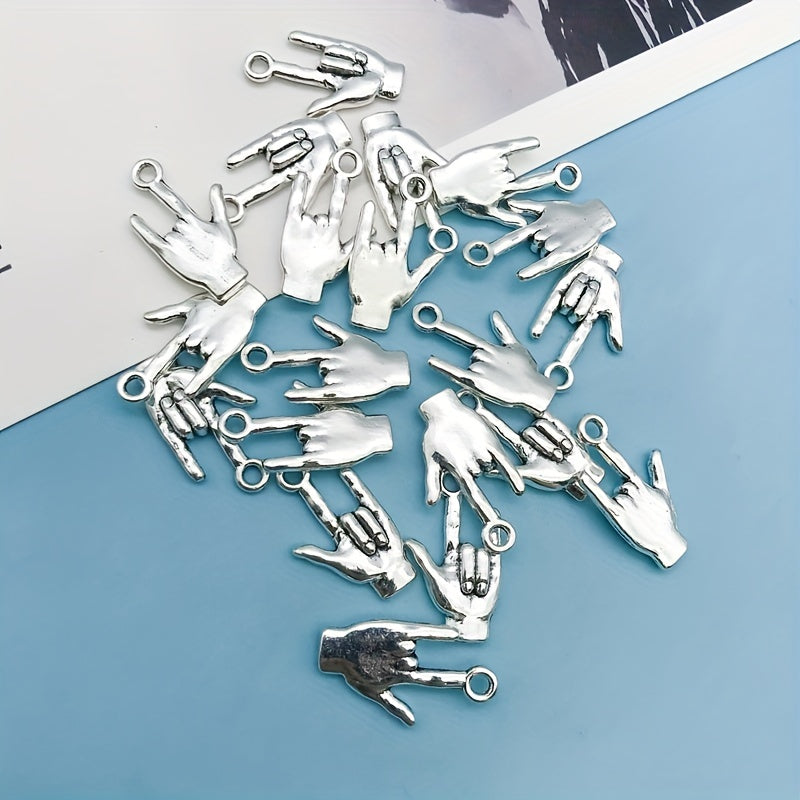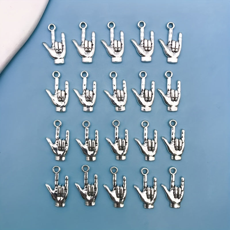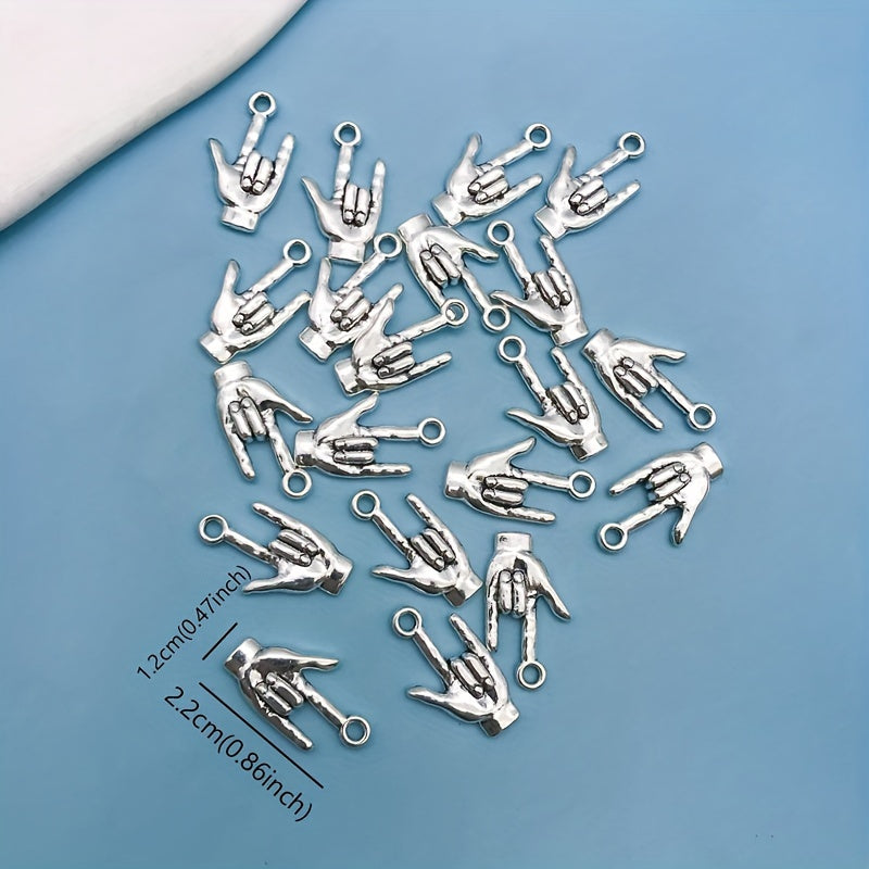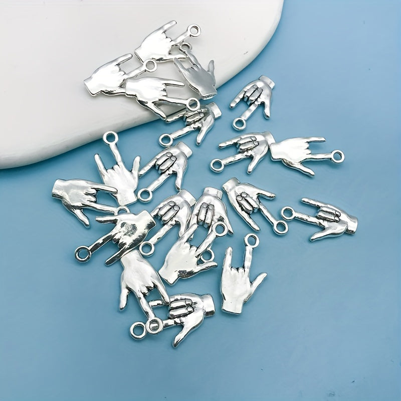 20pcs Antique Silver Gesture Hand Shape Charms Pendant 22x12mm