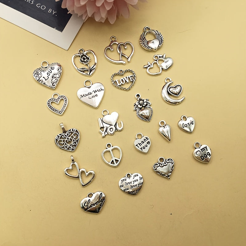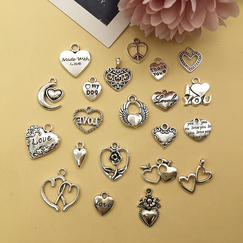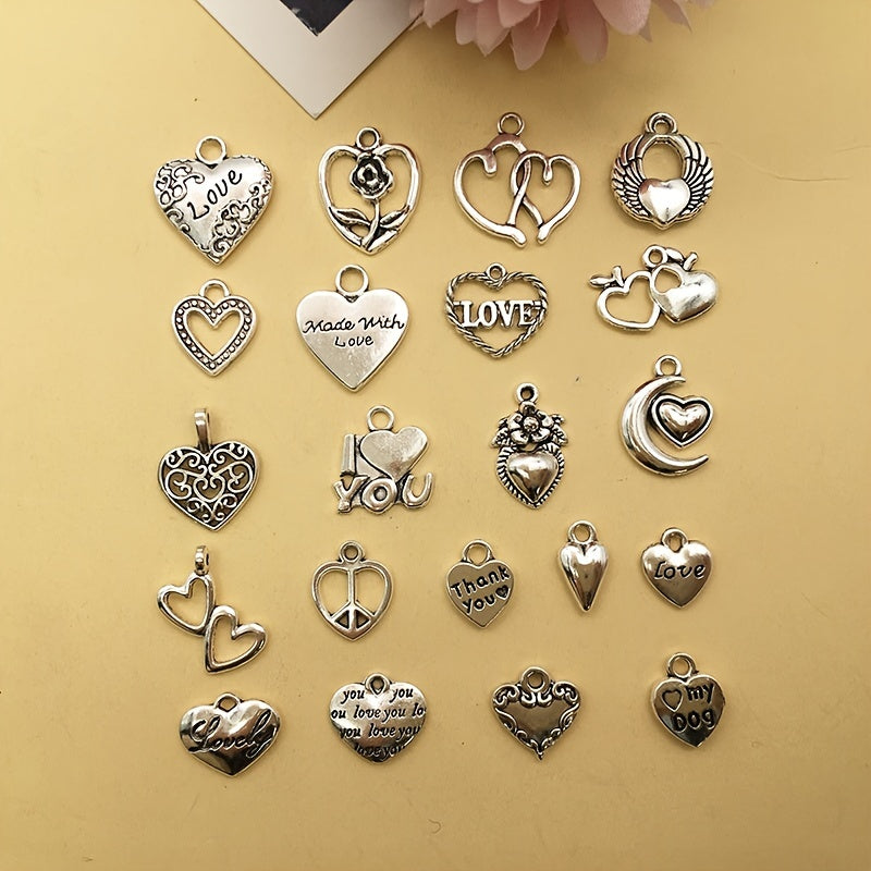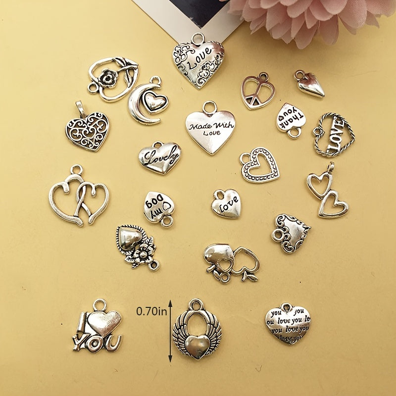 Enhance your jewelry creations with this set of 20 heart-shaped charms in antique silver finish. Perfect for necklaces, bracelets, and other accessories.