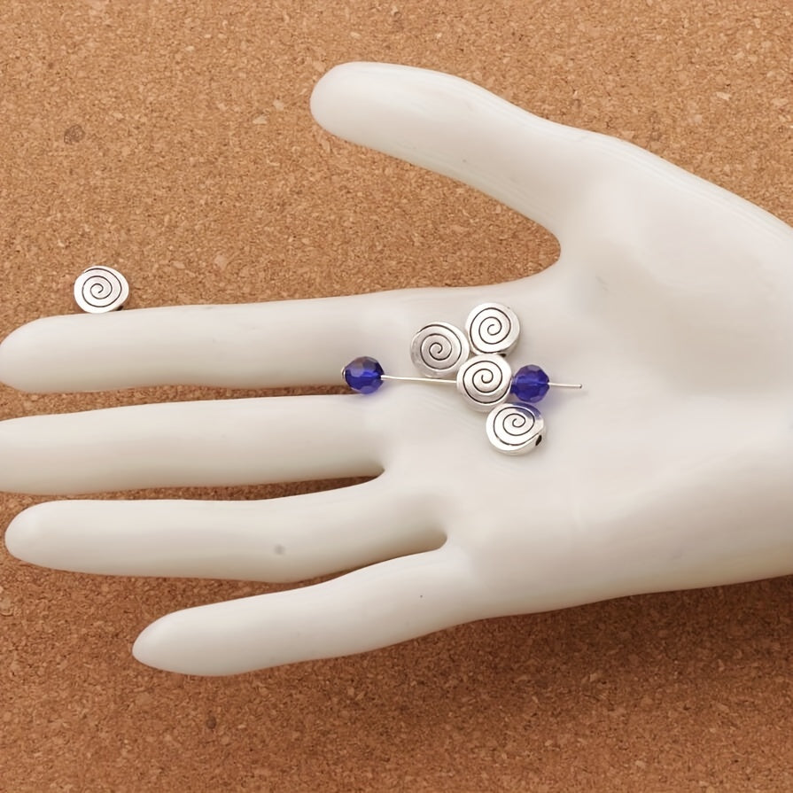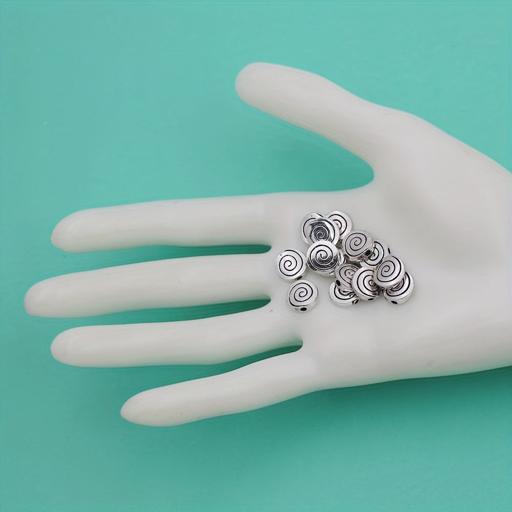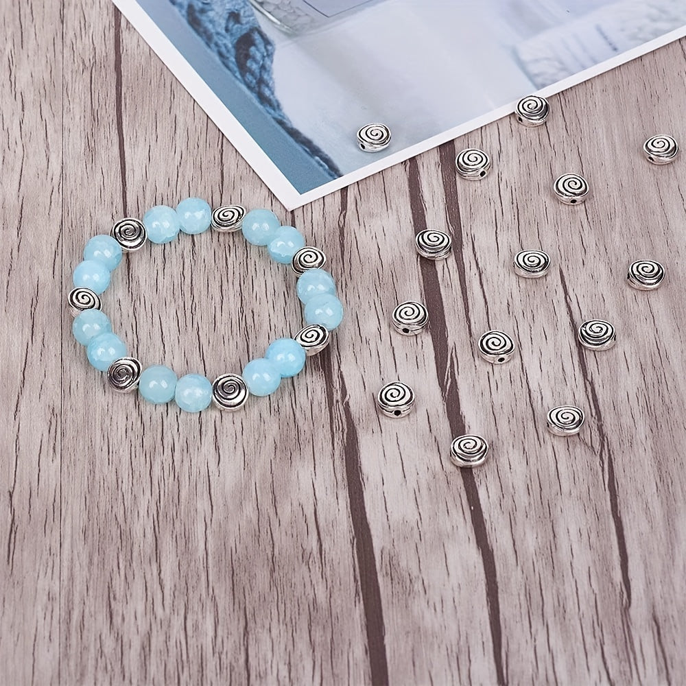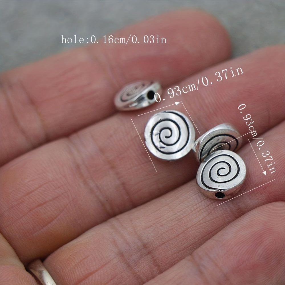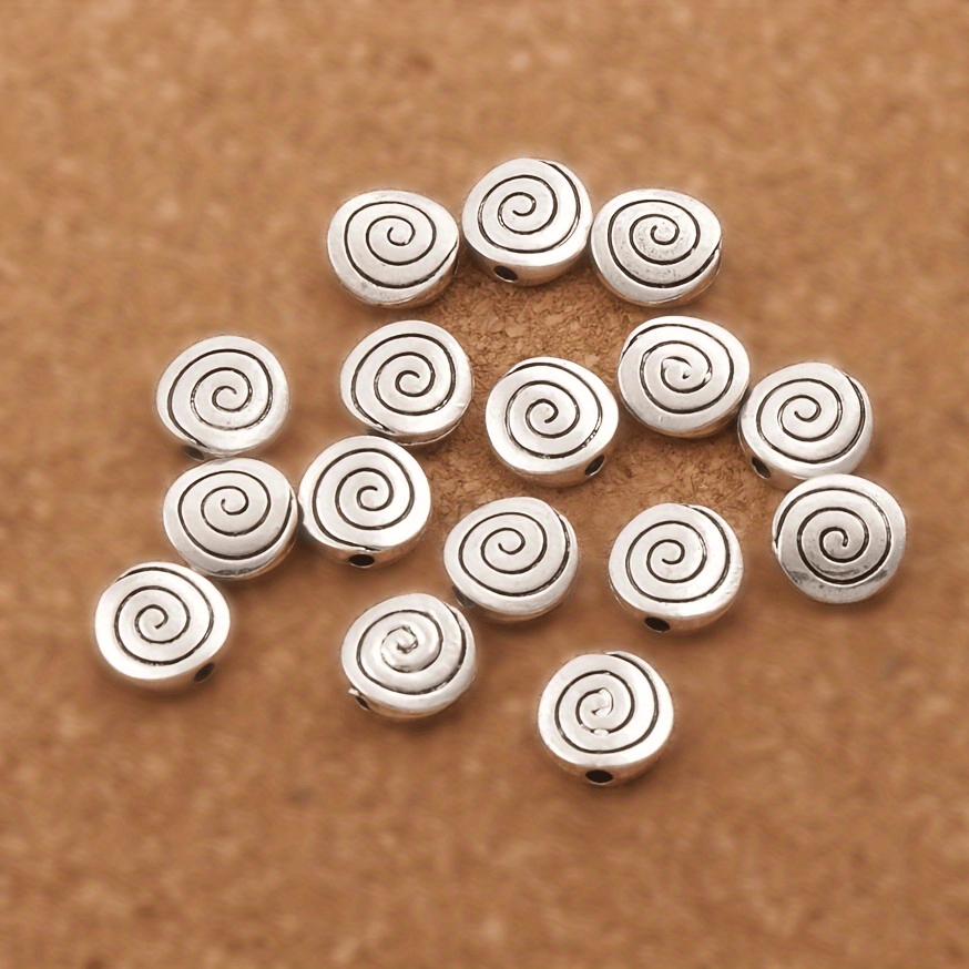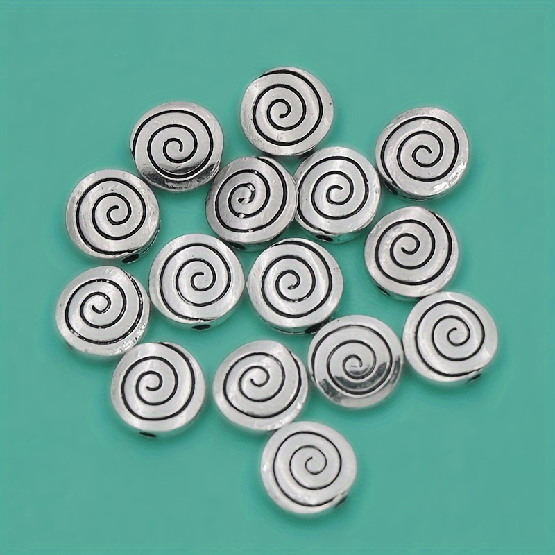 Add a touch of elegance to your DIY jewelry creations with these antique silver flat round spiral beads. Ideal for bracelets and necklaces.