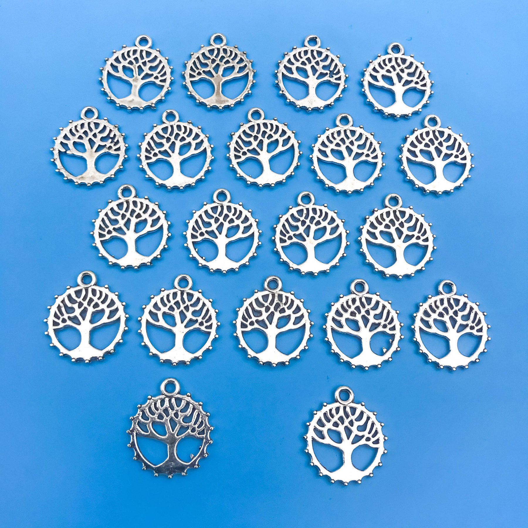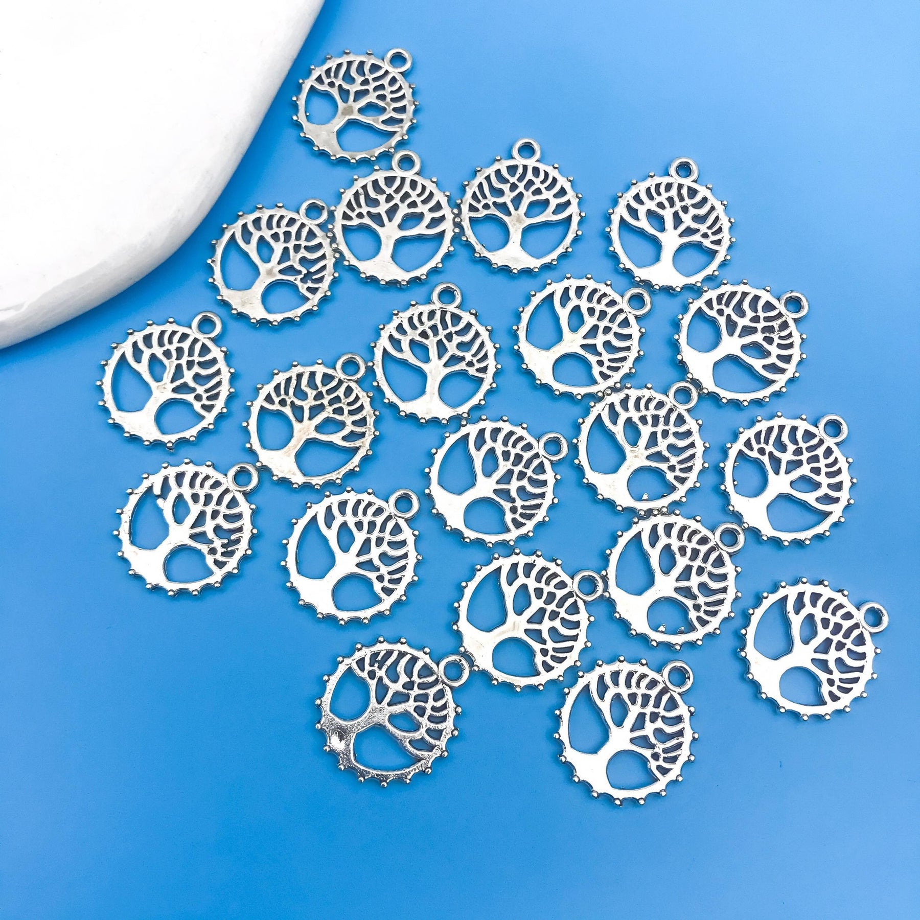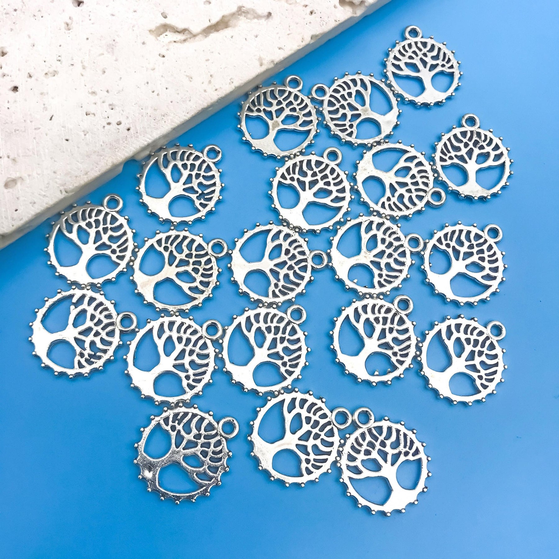 Add a touch of nature-inspired beauty to your jewelry creations with these zinc alloy hollow tree of life charms. Perfect for necklaces, bracelets, and earrings.