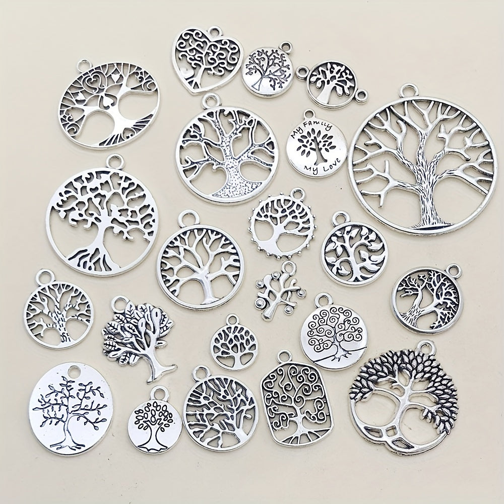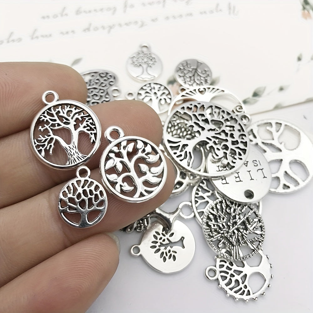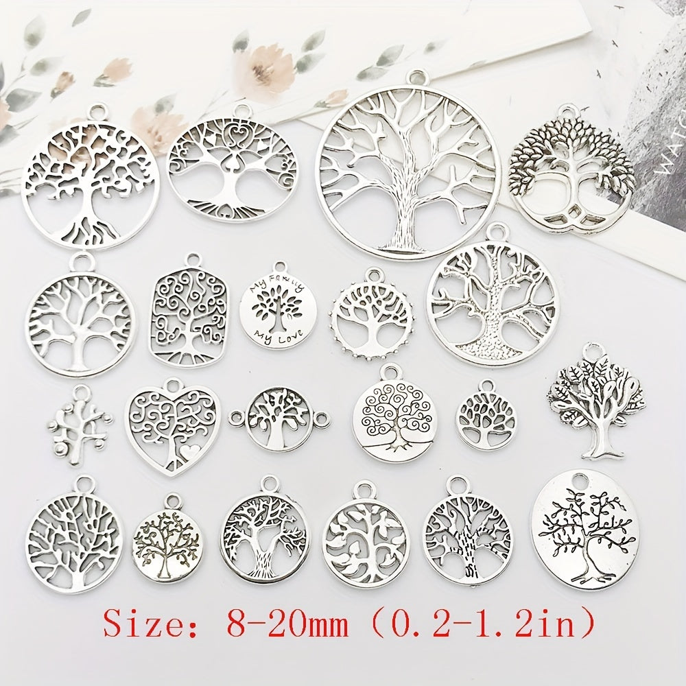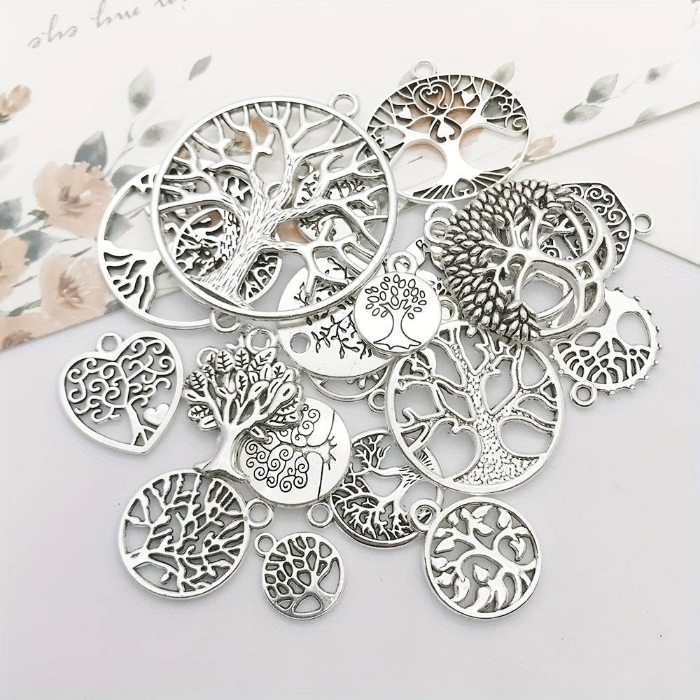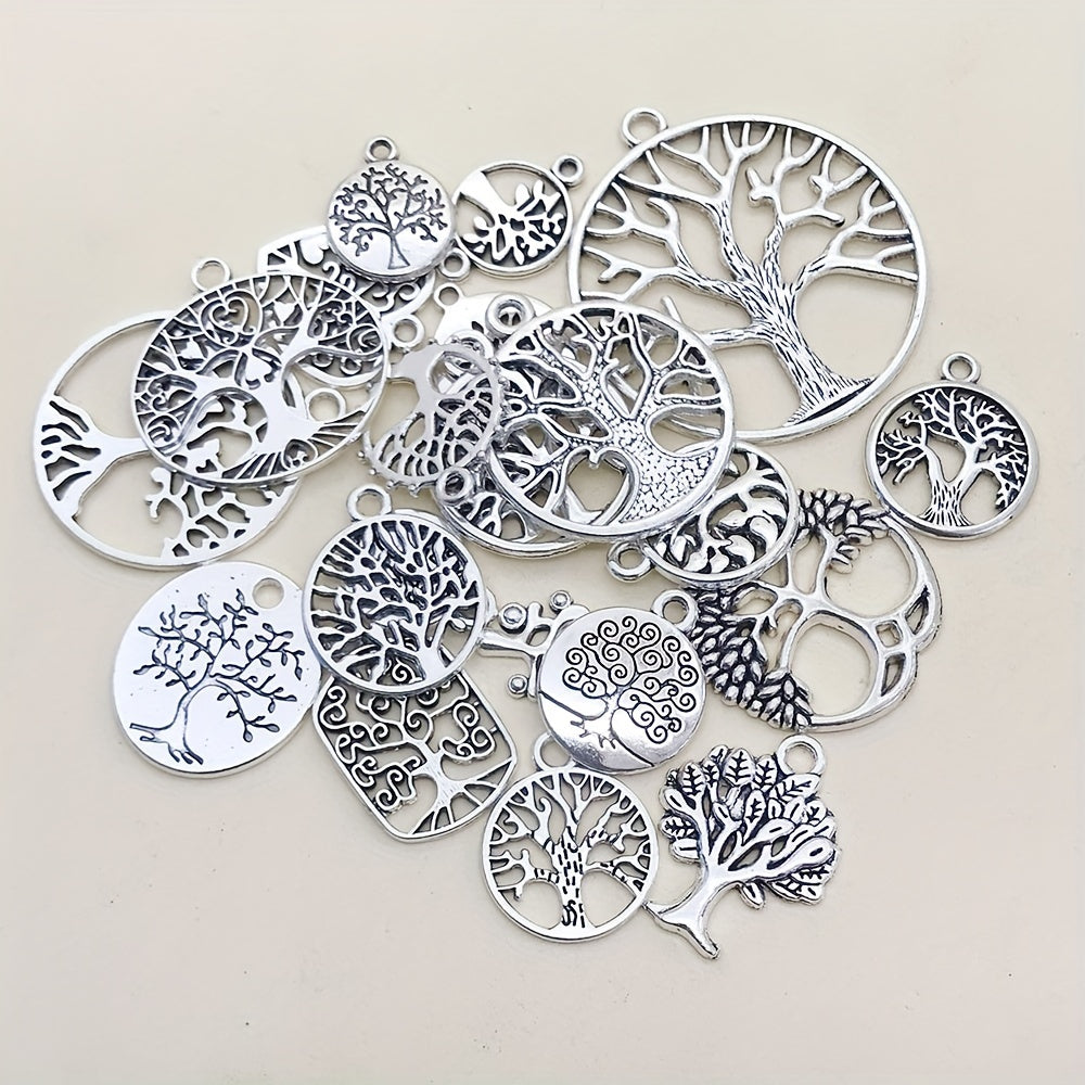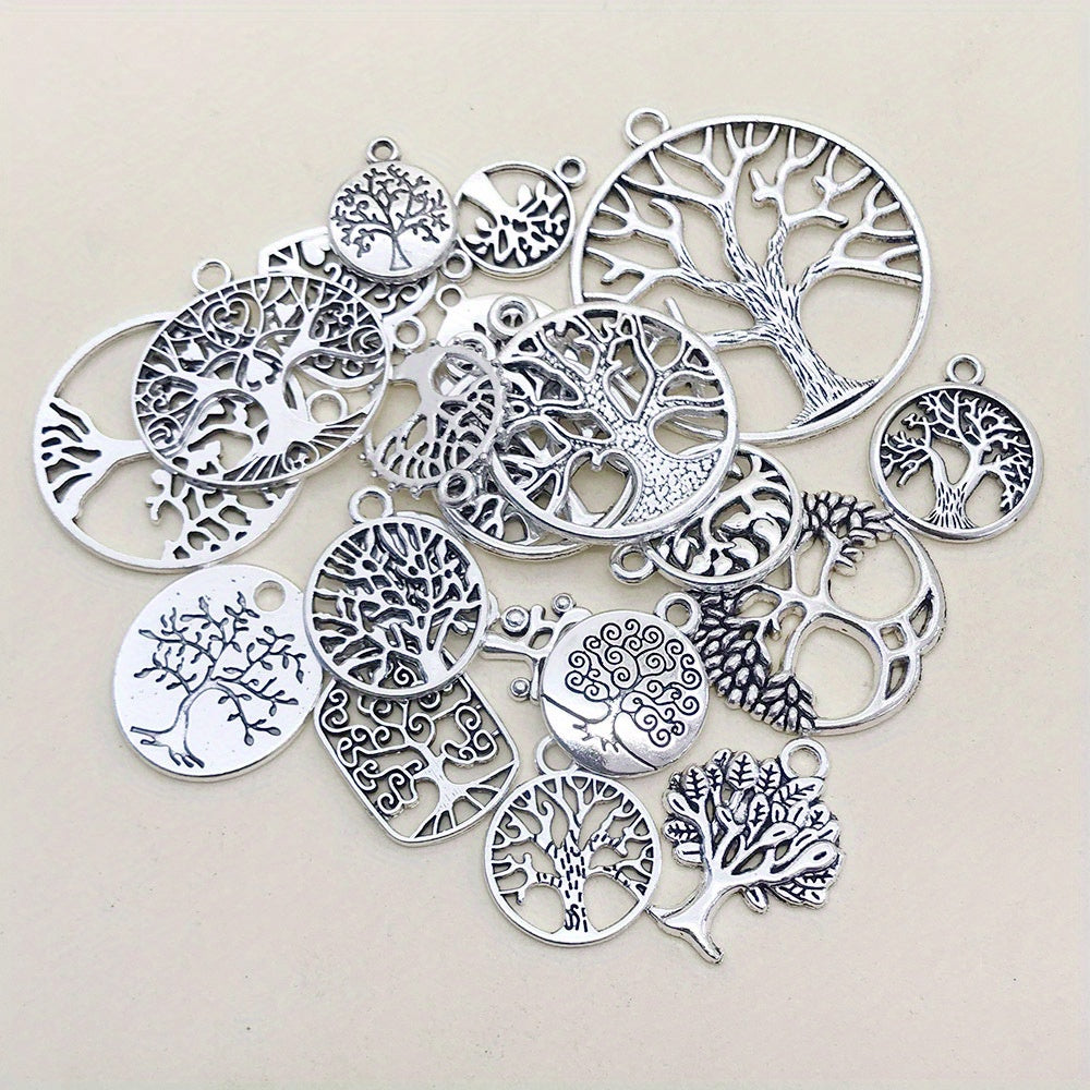 Enhance your jewelry making with these antique silver tree of life charms. Perfect for crafting necklaces and bracelets, these pendants will add a touch of charm to your DIY projects.