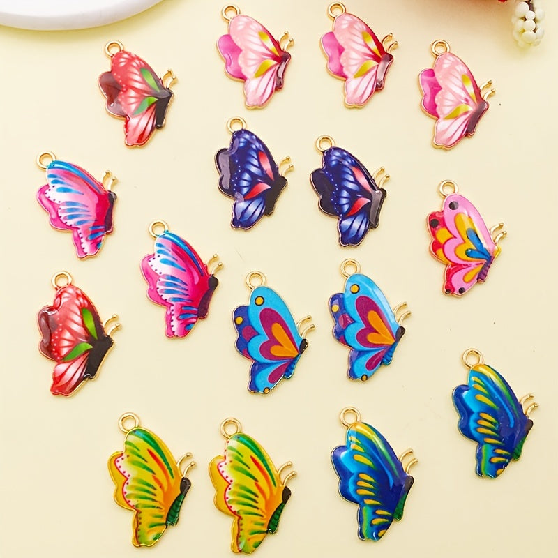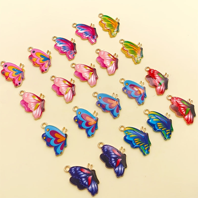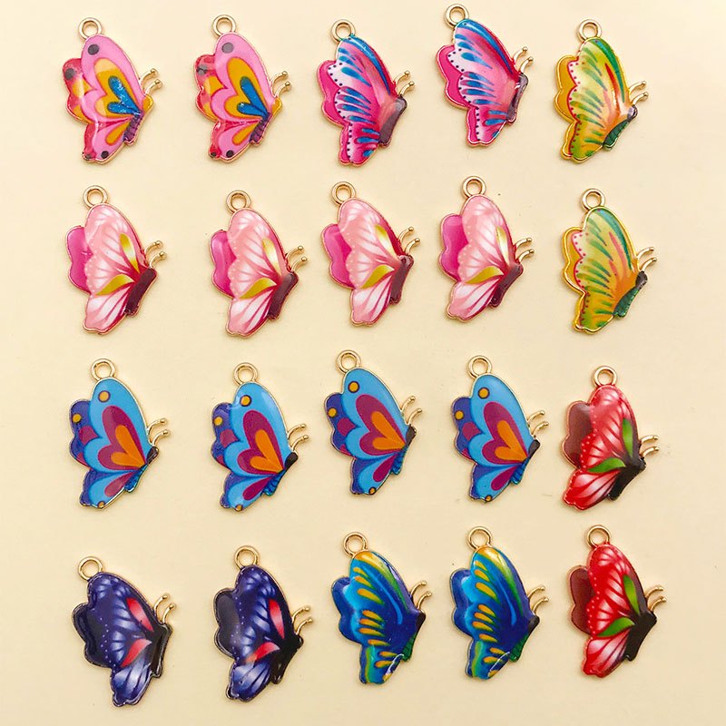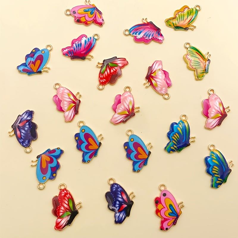 20pcs Enamel Butterfly Charms for DIY Jewelry Making