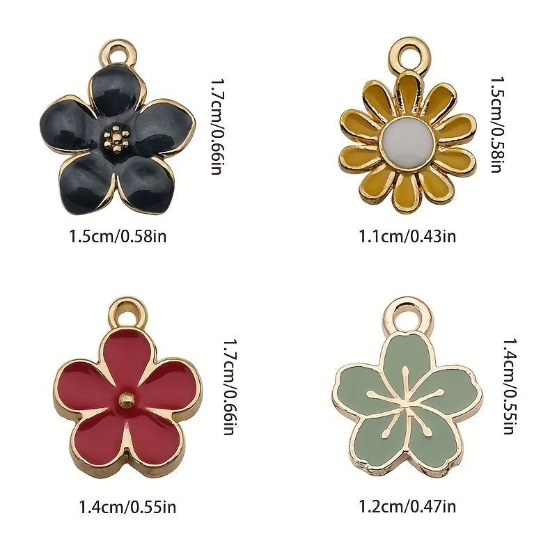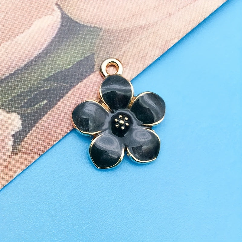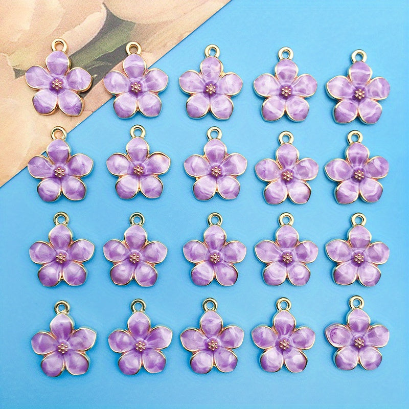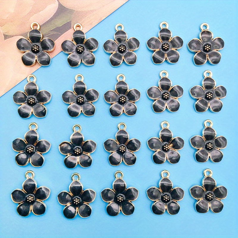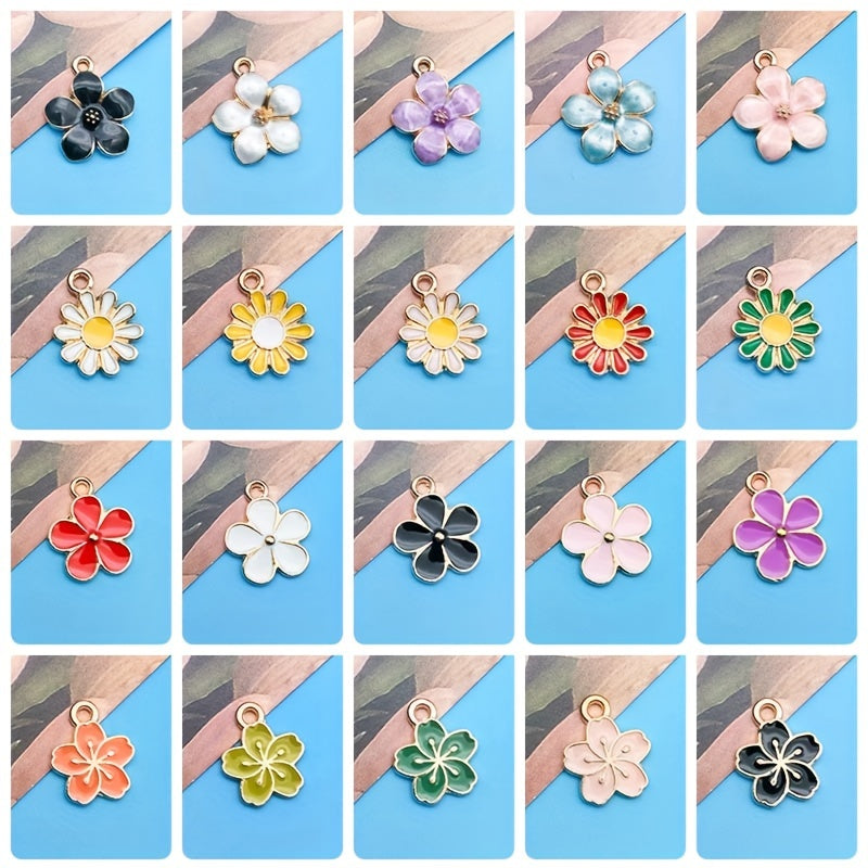 Enhance your DIY jewelry projects with this set of 20 charming enamel oil flower shaped charms pendants. Perfect for necklaces, bracelets, and earrings.