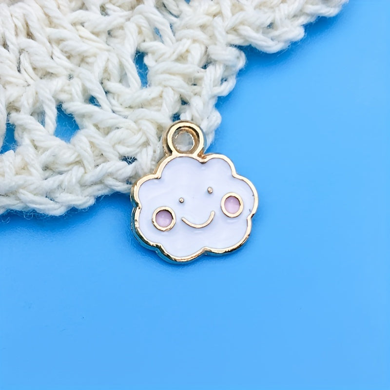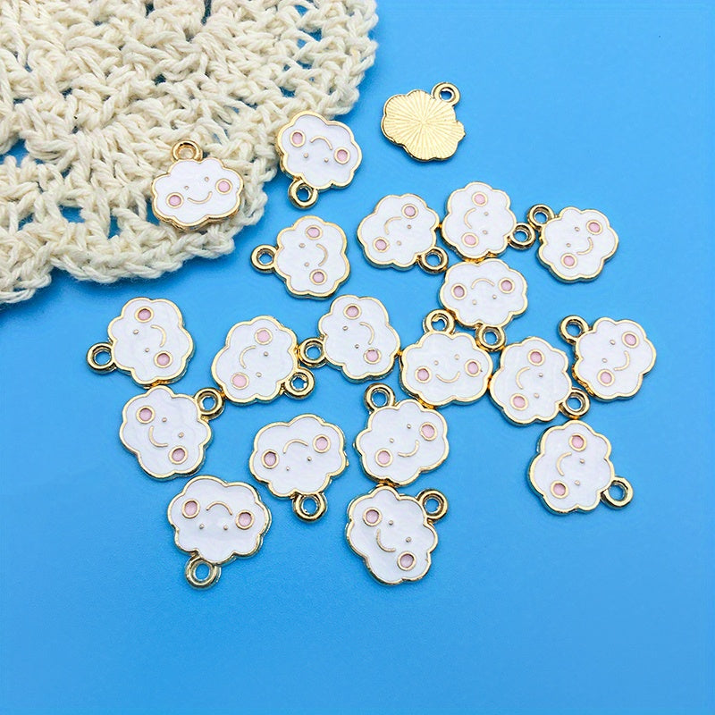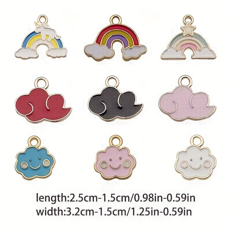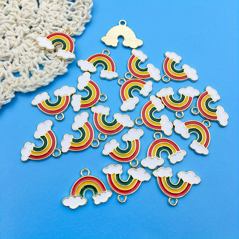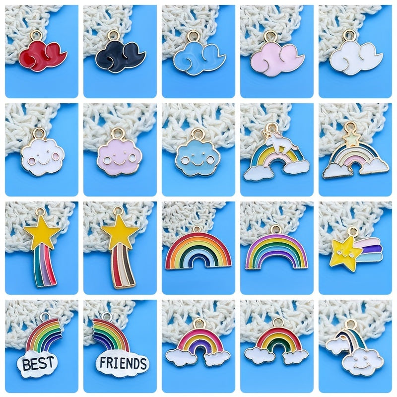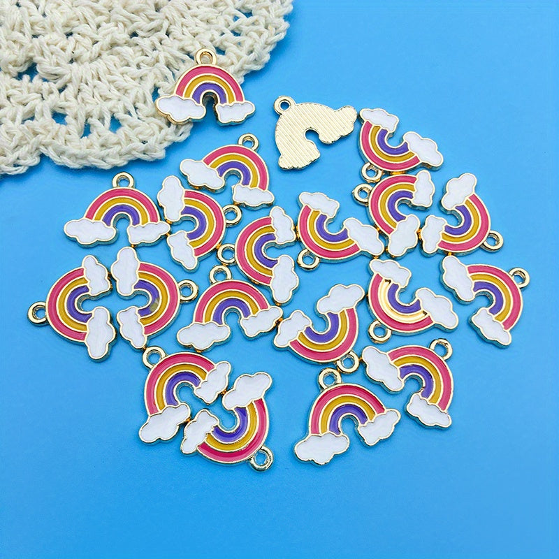 Add a touch of whimsy to your DIY jewelry projects with this set of 20 enamel rainbow cloud charms. Perfect for earrings, bracelets, necklaces, and more!