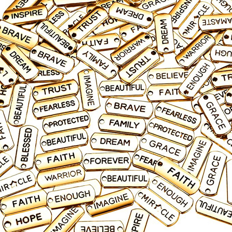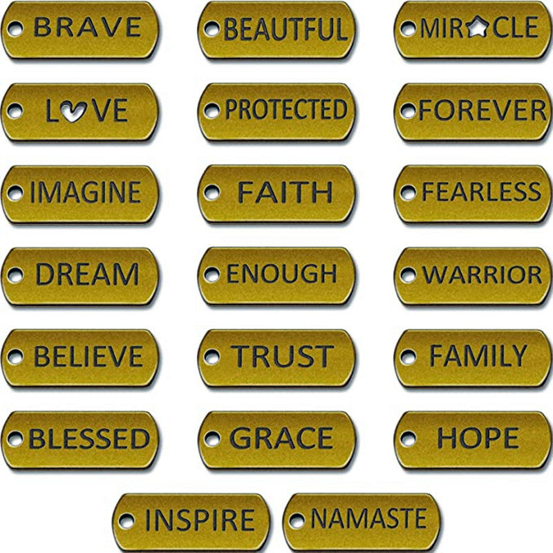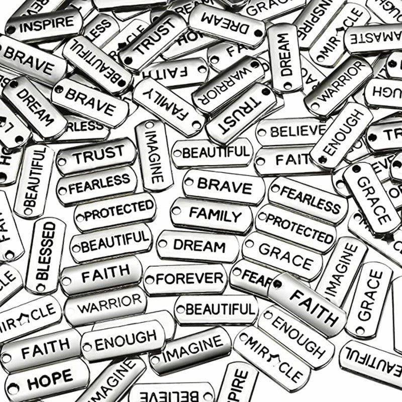 Elevate your jewelry designs with these 20pcs engraved word charms pendants, perfect for necklaces, bracelets, and bangles.