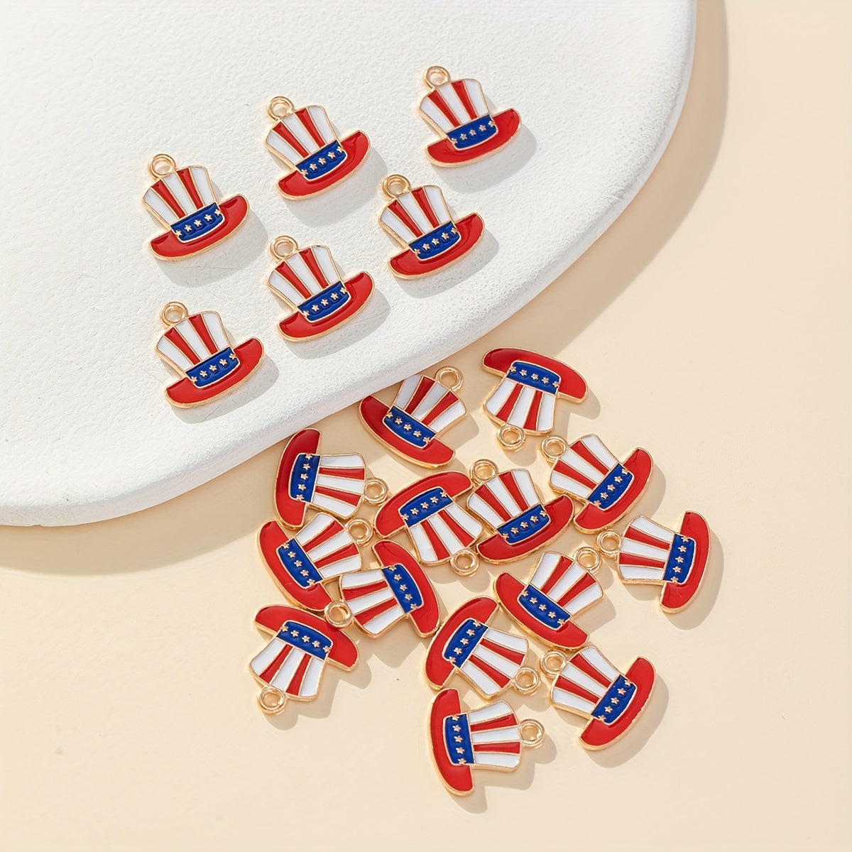 Enhance your jewelry projects with these 20pcs flag element hat pendants made of zinc alloy. Perfect for creating patriotic-themed accessories.