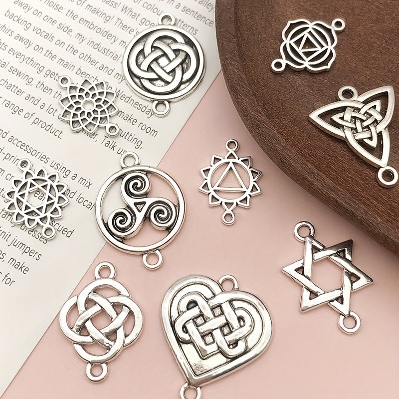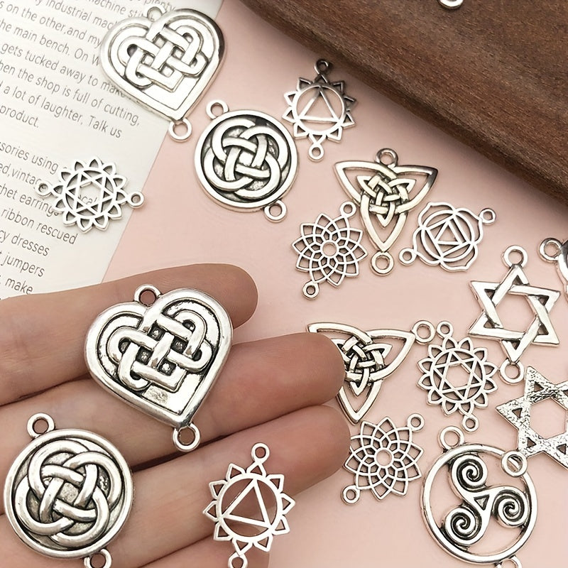 Enhance your jewelry creations with these antique silvery alloy flower connector pendants. Perfect for necklaces, bracelets, and earrings.