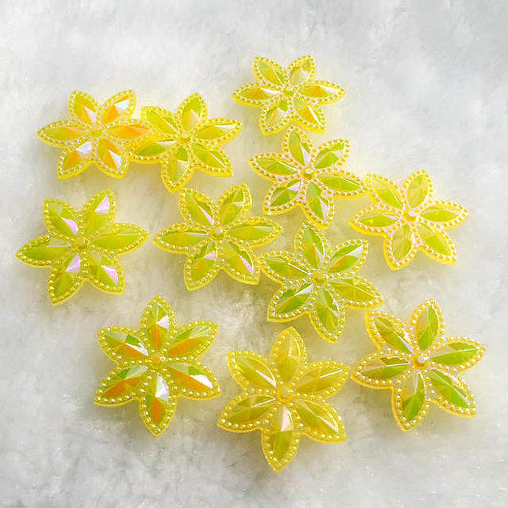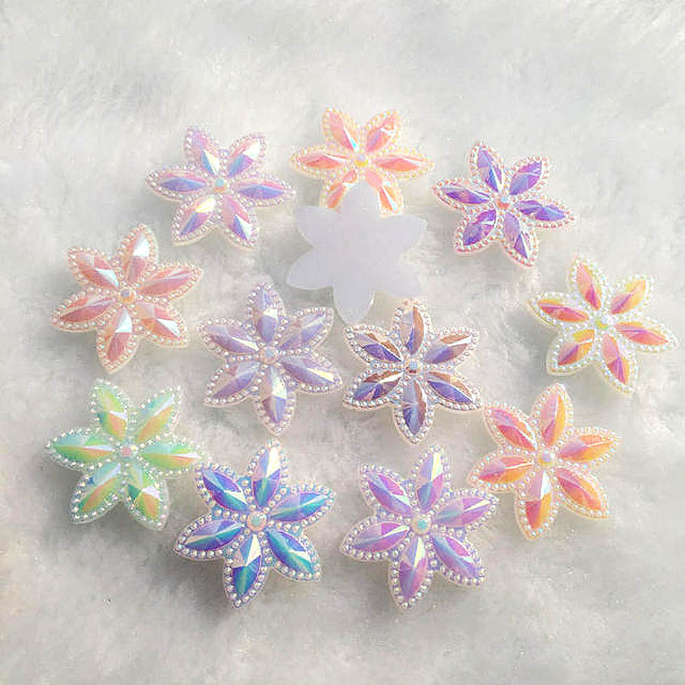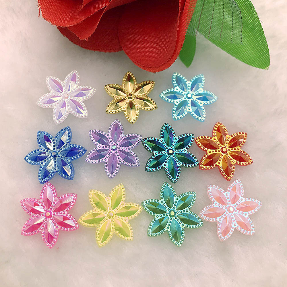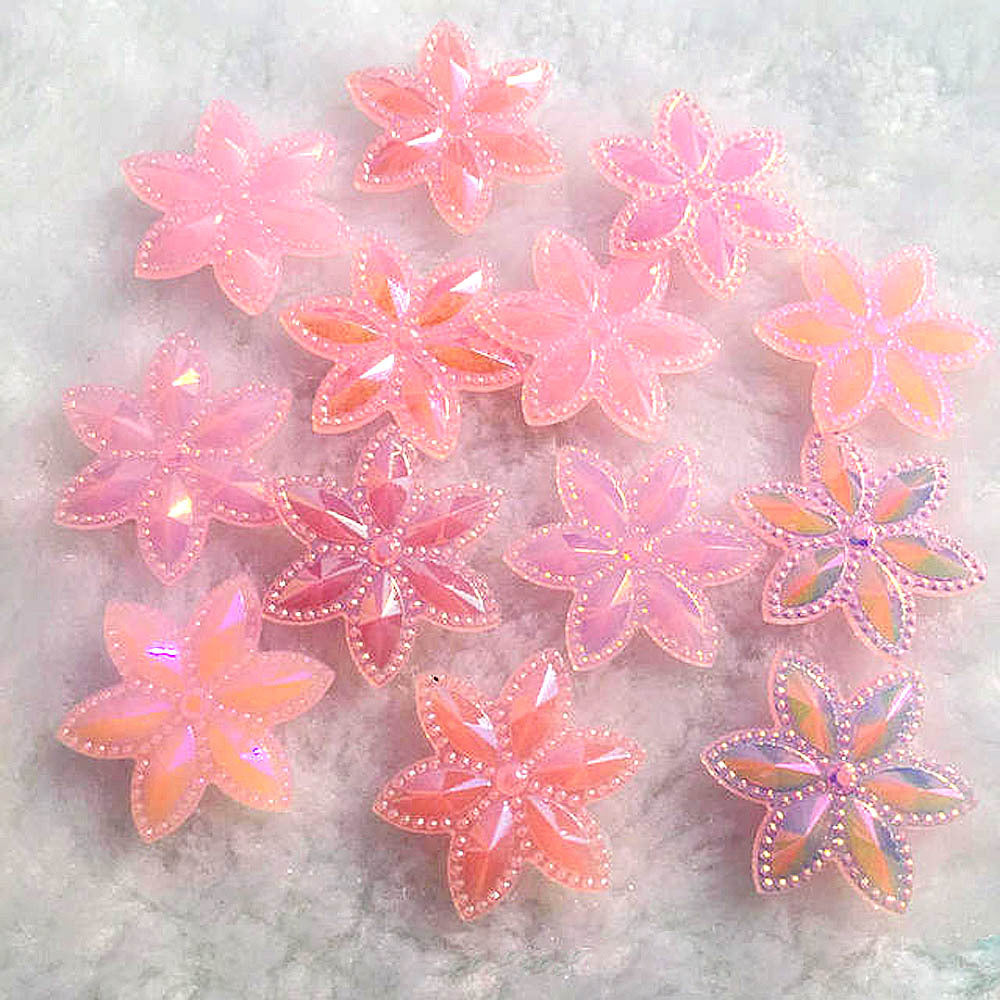 Enhance your homemade crafts with these 2.0*0.94in flower-shaped resin acrylic AB accessories. Perfect for DIY clothing projects and other creative endeavors.