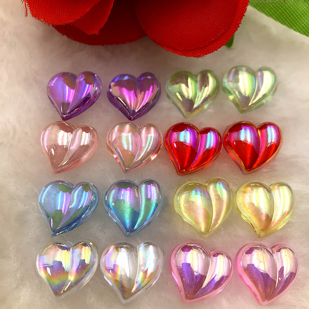 Get creative with these 20 pieces of AB glitter peach heart resin accessories for your DIY projects like earrings, hairpins, pendants, and phone cases.
