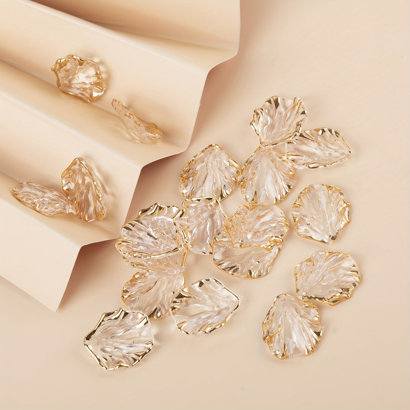 Add a touch of elegance to your jewelry creations with these golden transparent leaf-shaped acrylic beads. Perfect for necklaces, bracelets, and charms.
