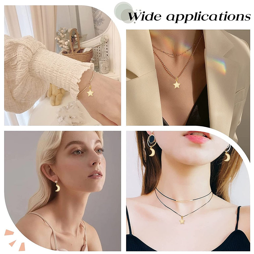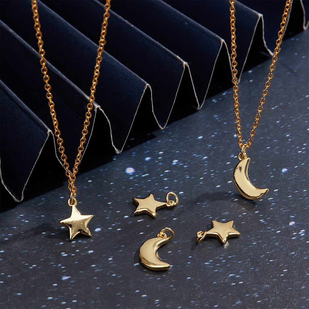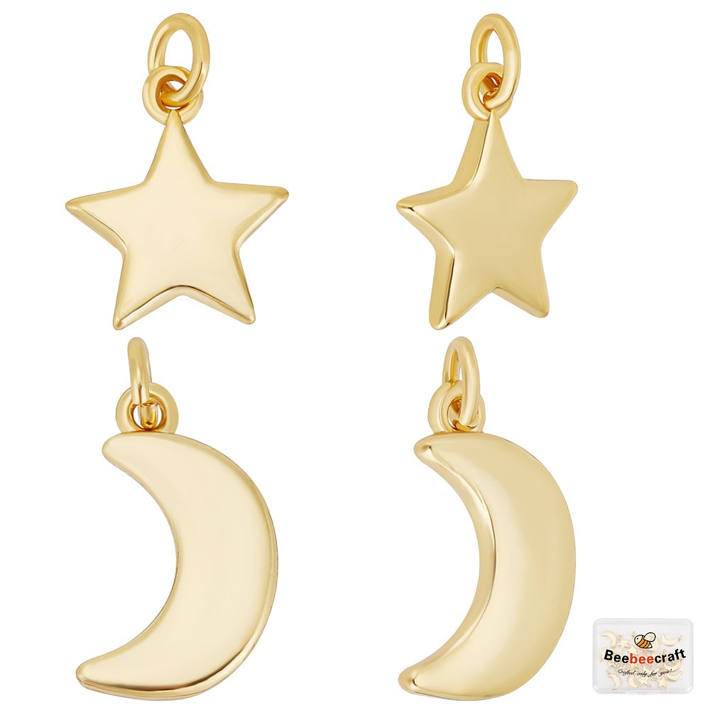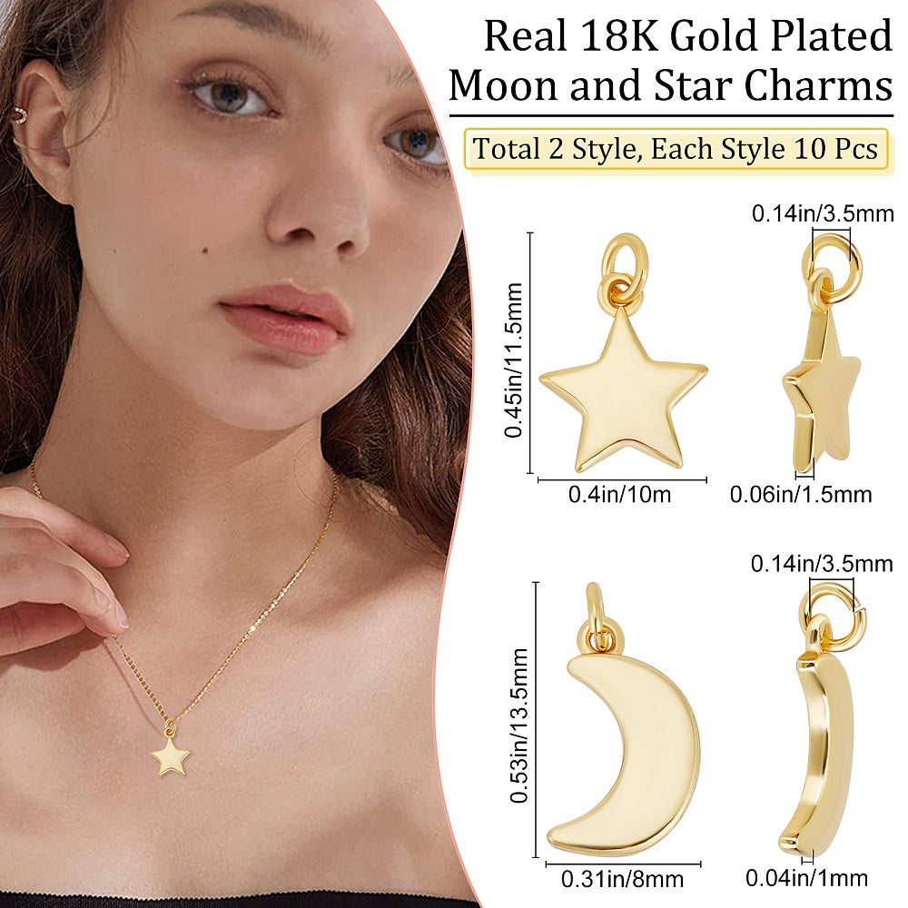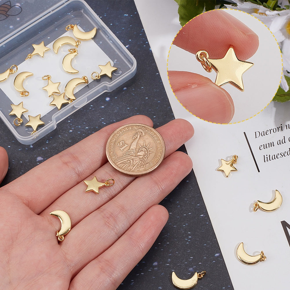 Get creative with these 18K golden plated star and crescent moon dangle pendants. Perfect for crafting your own necklaces, bracelets, and more.