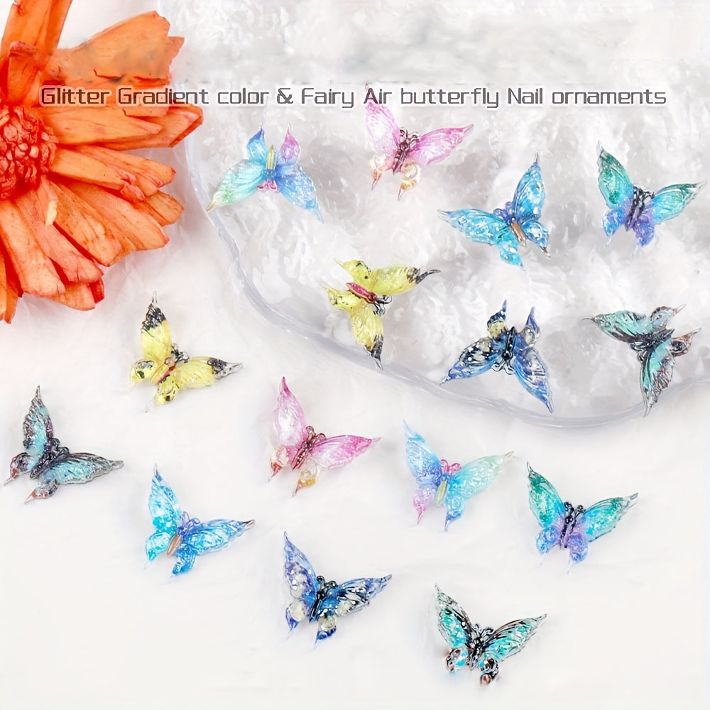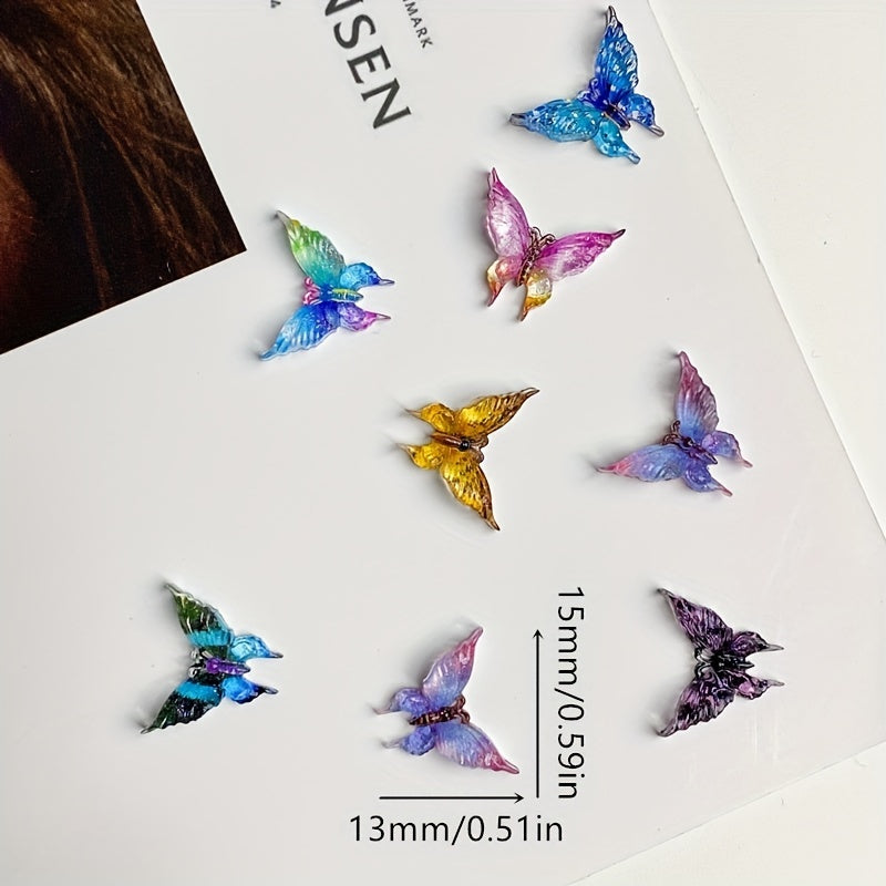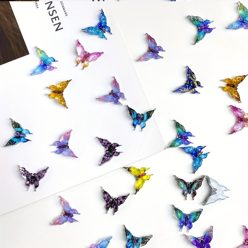 Get creative with these colorful gradient butterfly nail decorations that can be used on nails, phone cases, refrigerator, stickers, head ropes, and more!