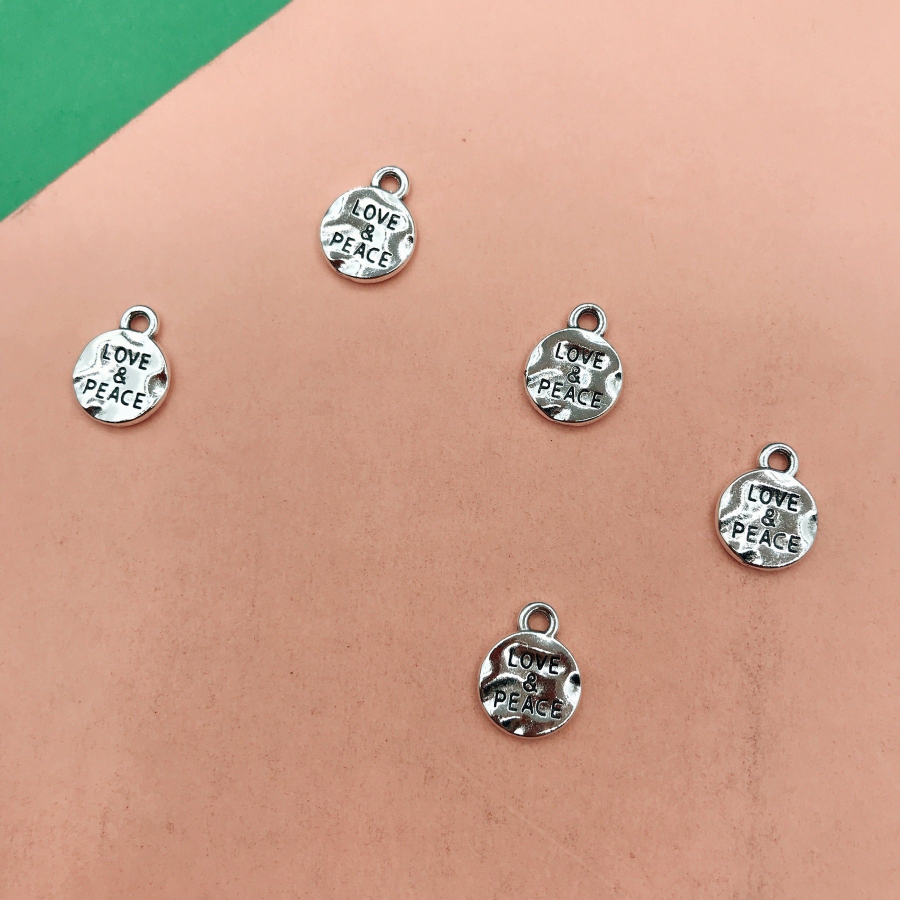 Enhance your bracelets, necklaces, earrings, and other jewelry with these 20pcs Love & Peace round pendants. Perfect for creating unique accessories.