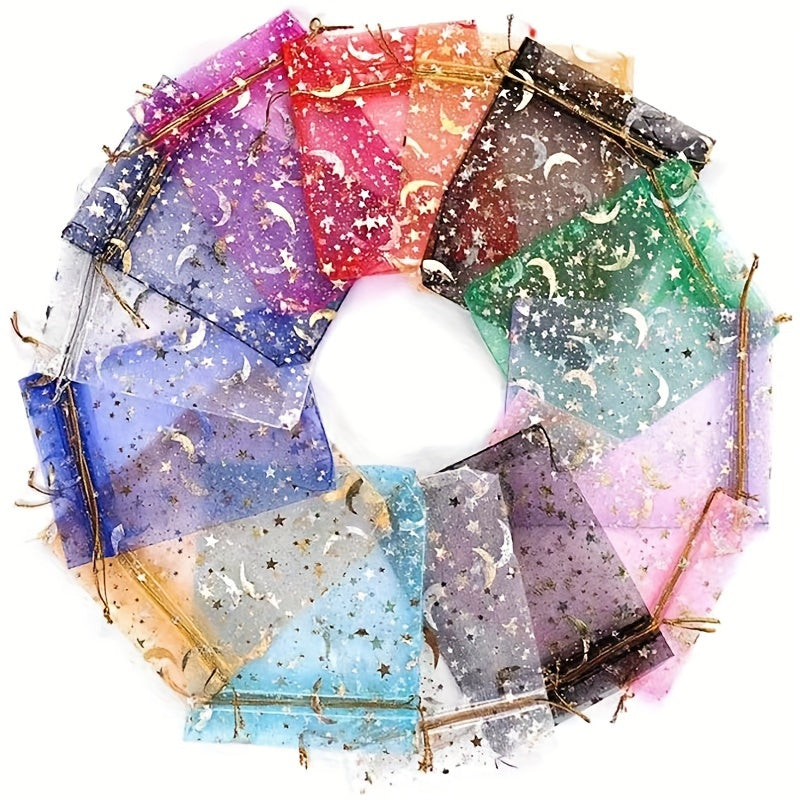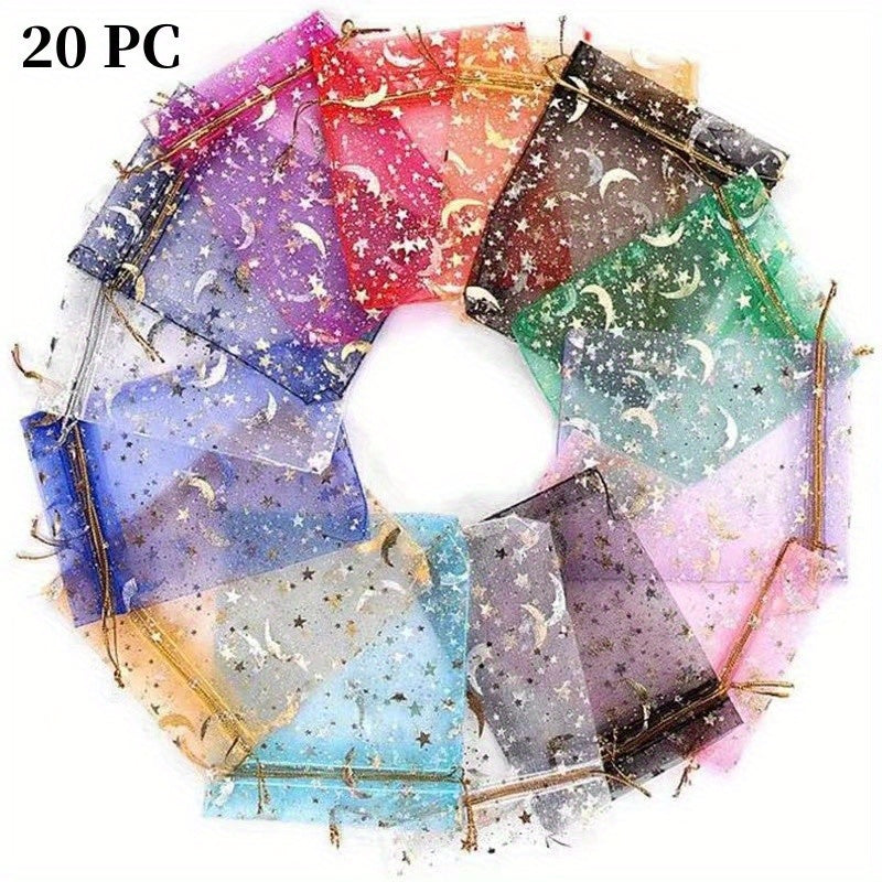 20pcs Moon Star Drawstring Organza Jewelry Gift Bags for Christmas Wedding Party