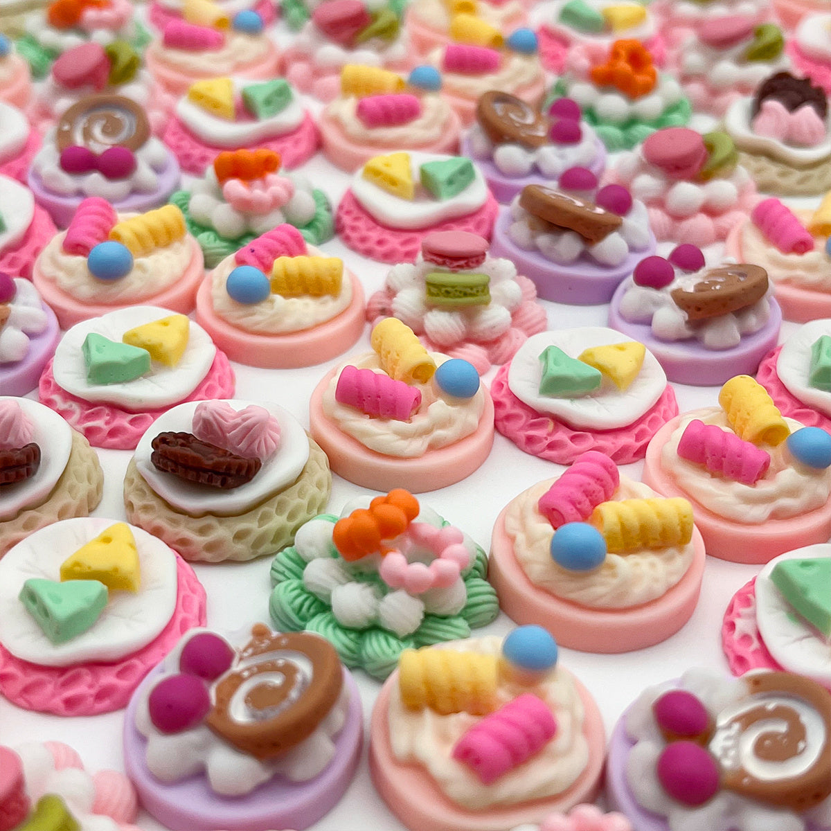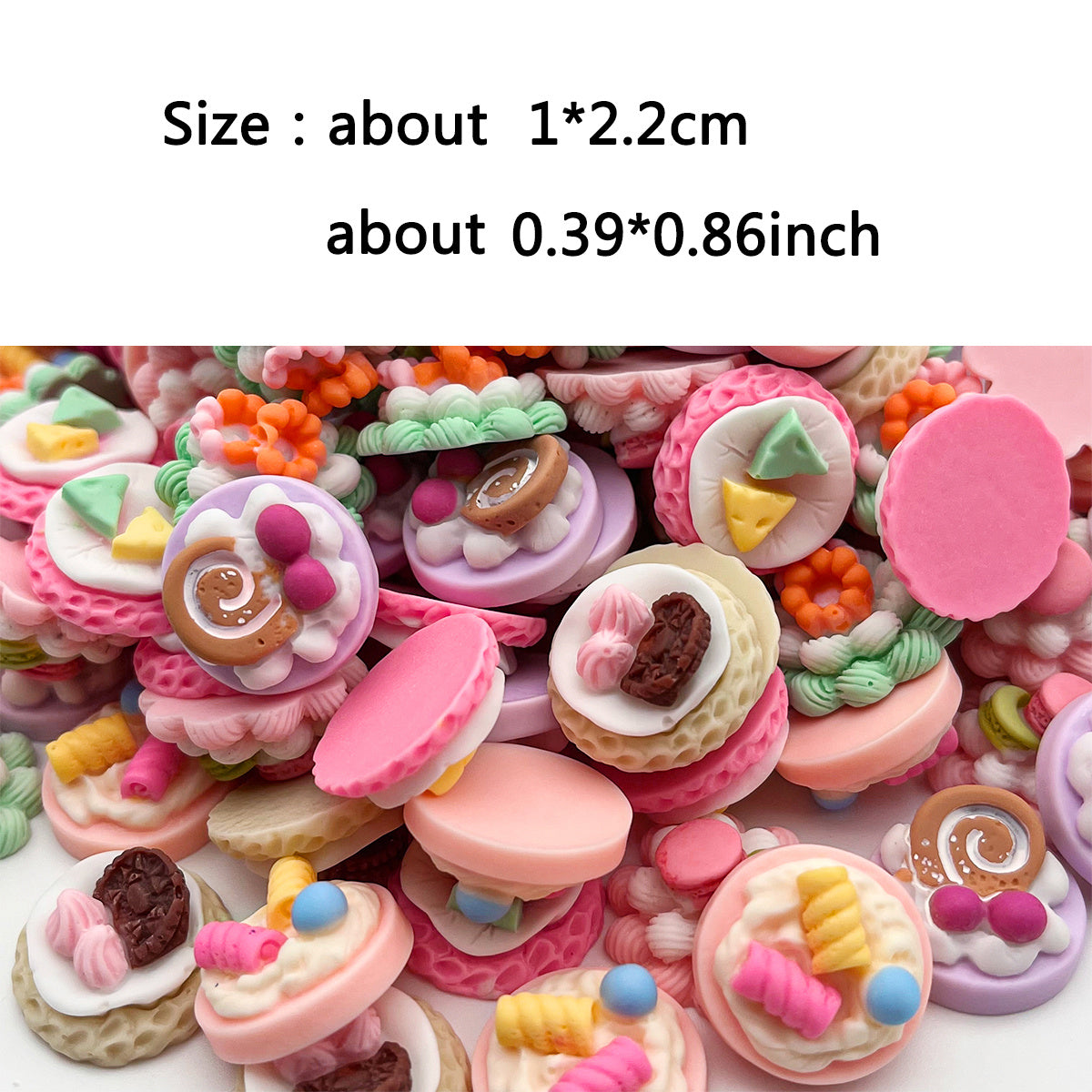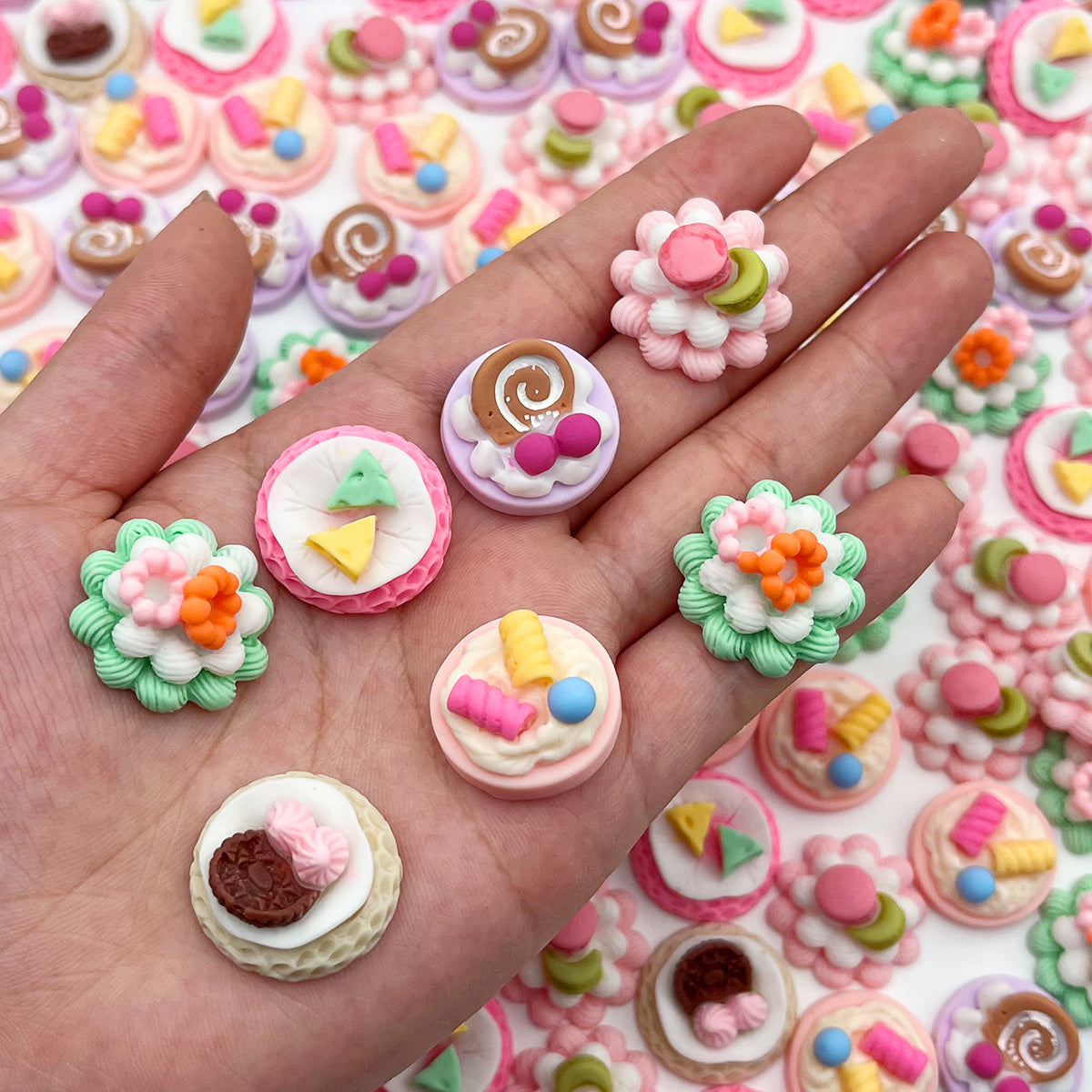 Enhance your crafting projects with this set of 20 resin cake decor pieces. Perfect for hair band making and other DIY projects.