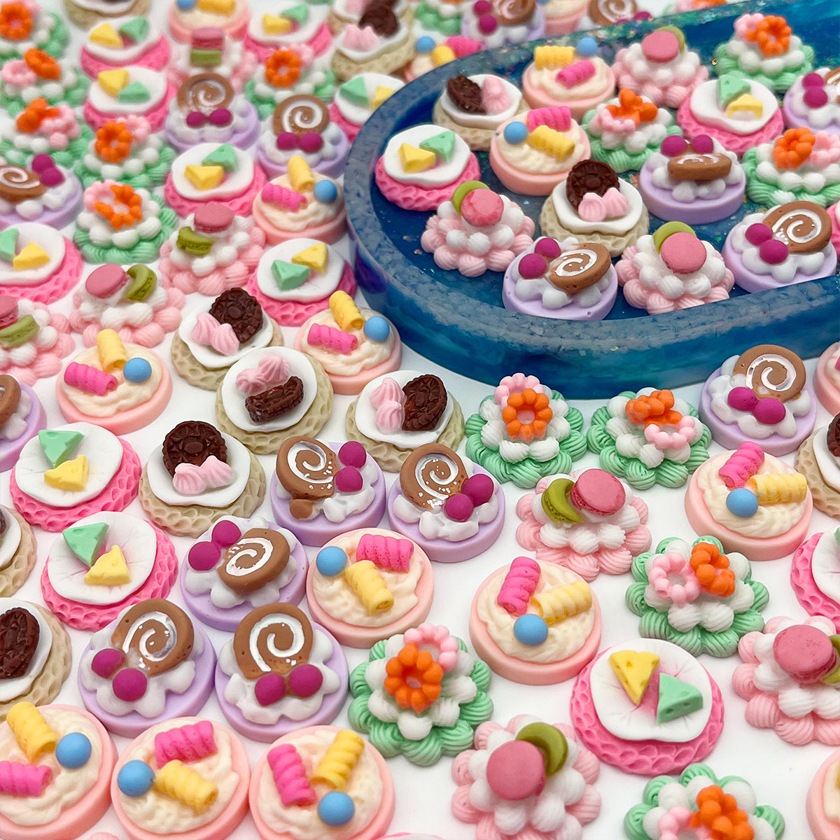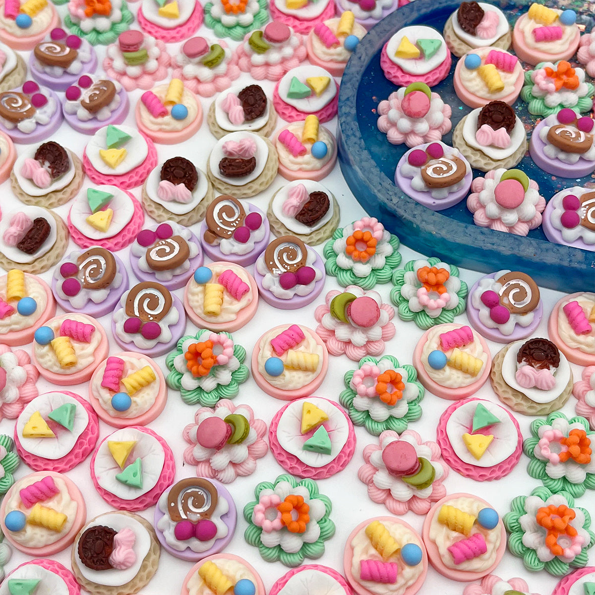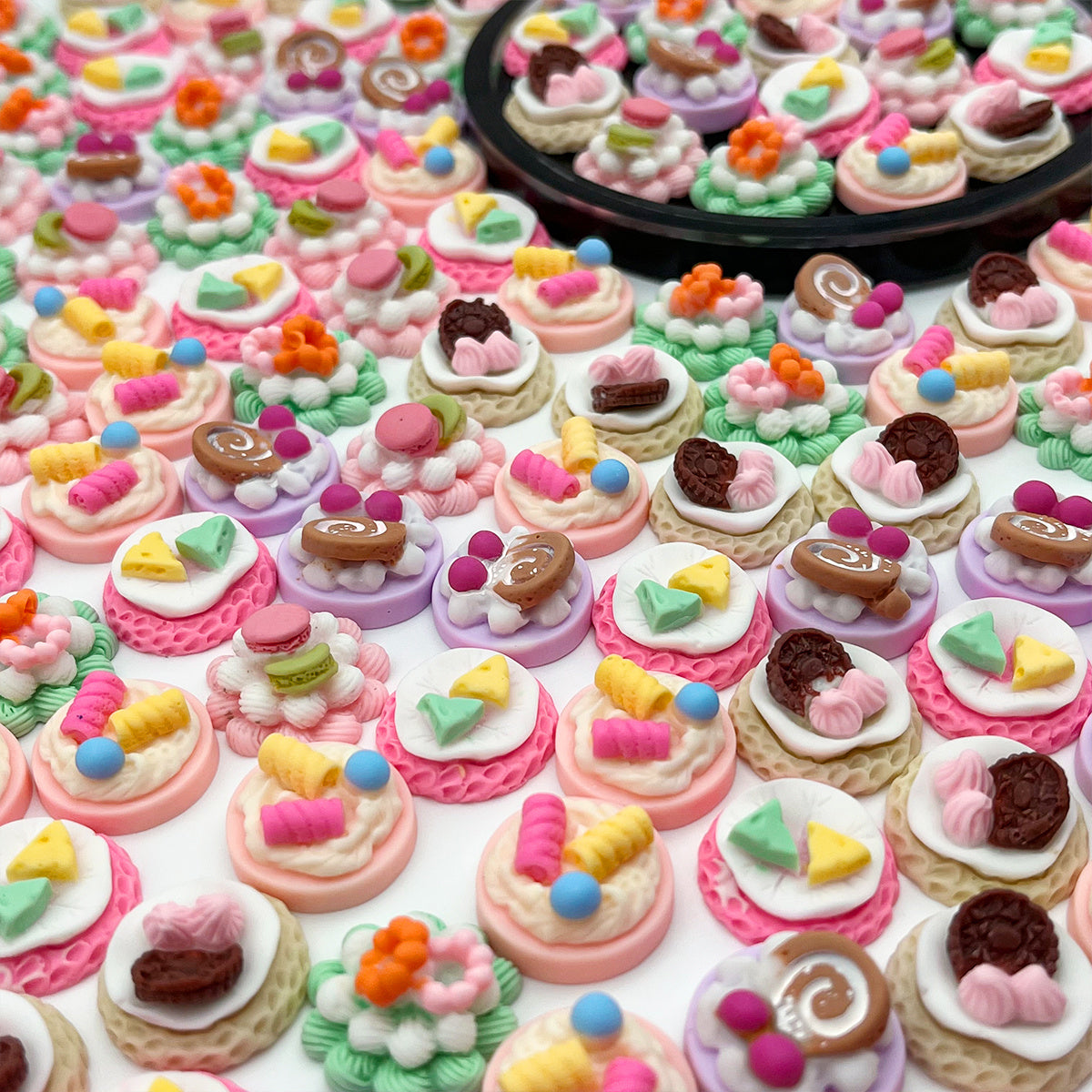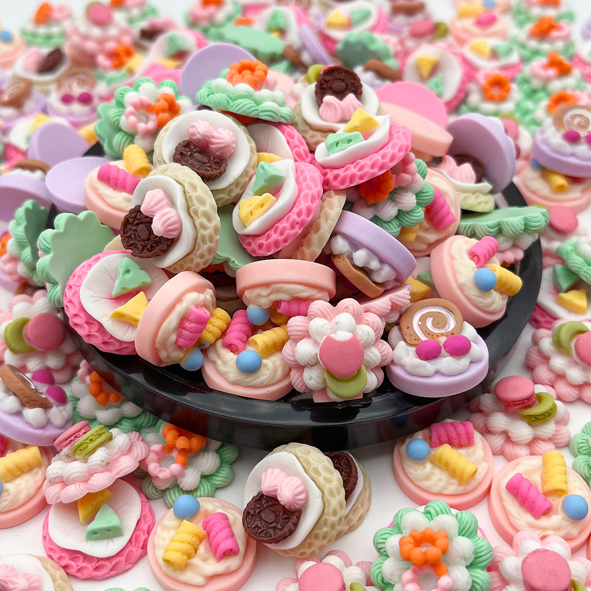 Enhance your crafting projects with this set of 20 resin cake decor pieces. Perfect for hair band making and other DIY projects.