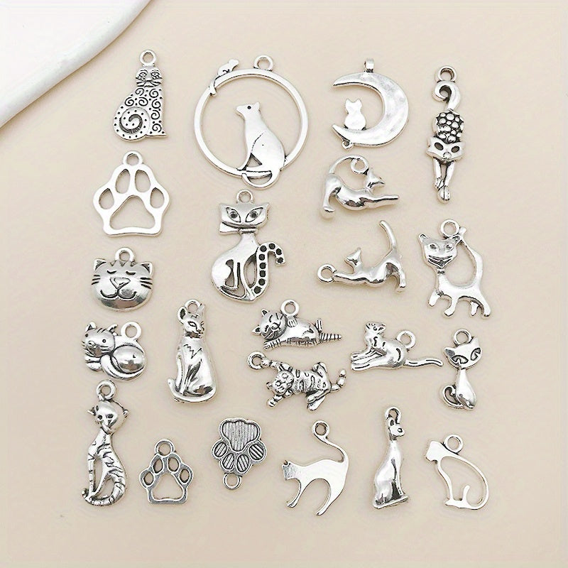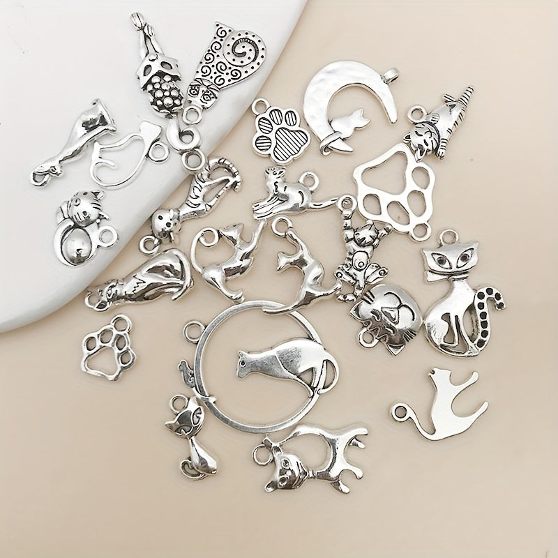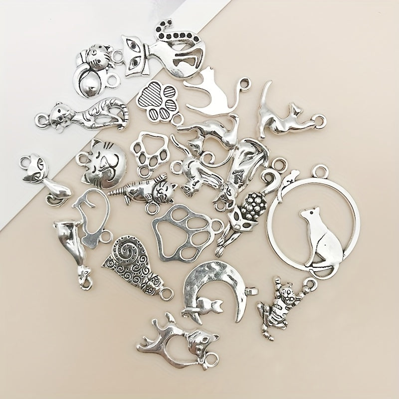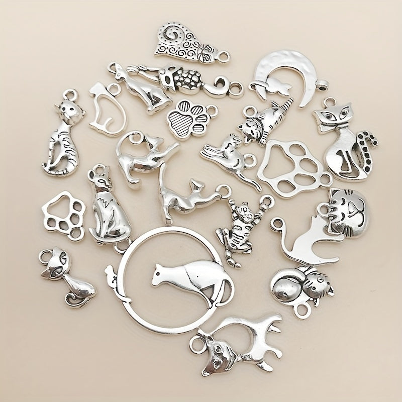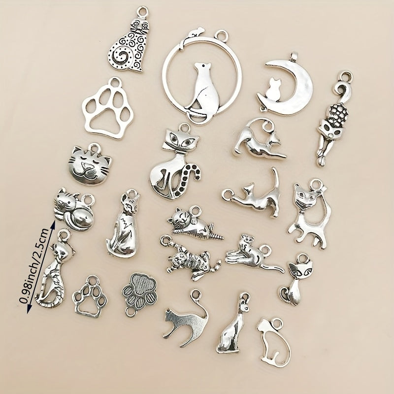 20pcs Silver Cat Charms Pendants for DIY Necklace Bracelets