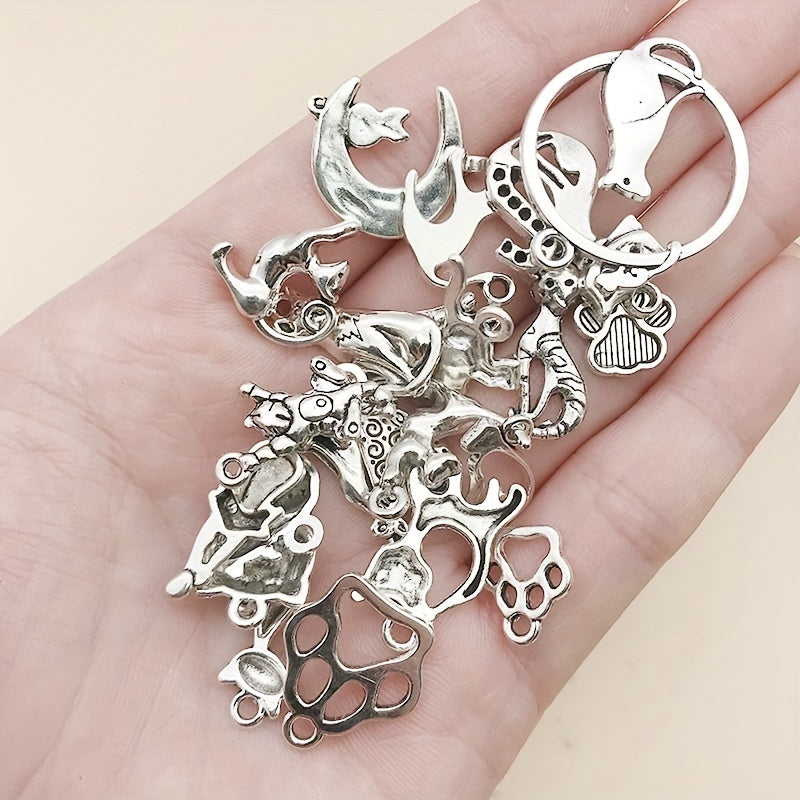 Add a touch of feline charm to your jewelry creations with these antique silver cat charms. Perfect for necklaces, bracelets, and other DIY projects.